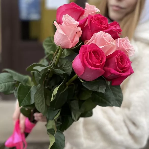 9 роз Би Свит и Пинк Флойд 60 см