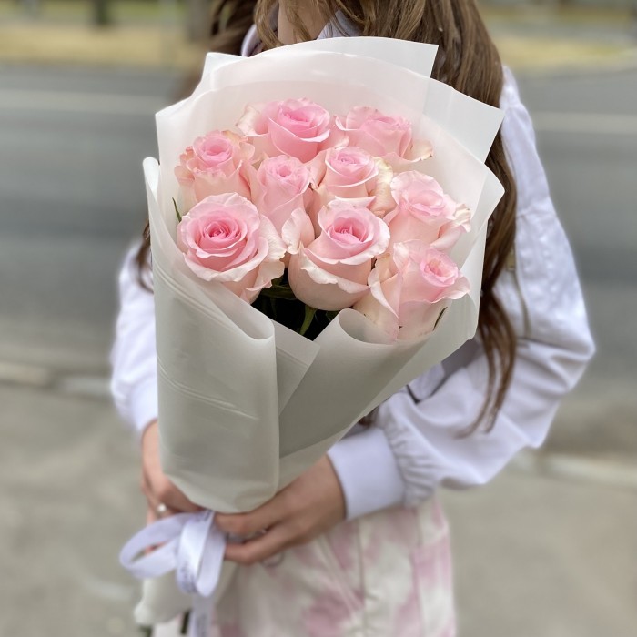 Розовые розы символизируют нежность, восхищение, благодарность и дружбу, что делает этот букет прекрасным подарком для различных случаев, будь то день рождения, юбилей или просто знак внимания.
