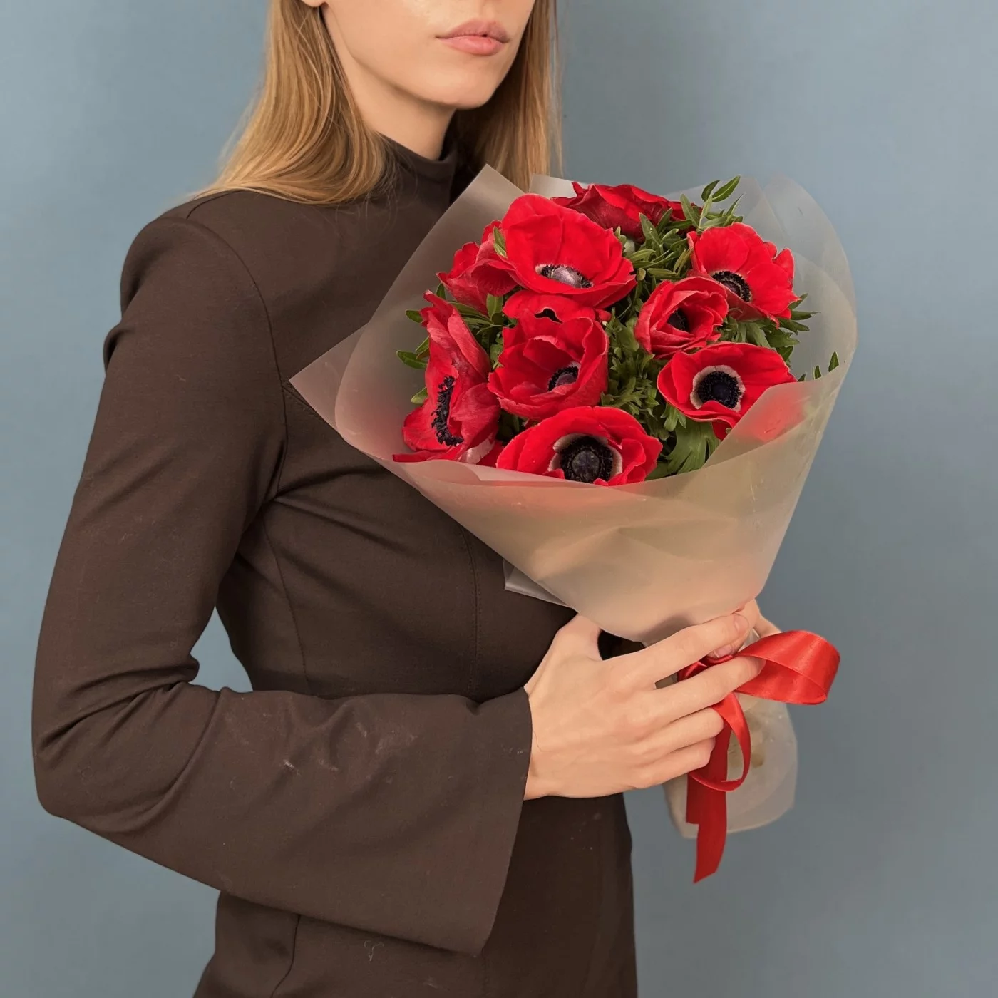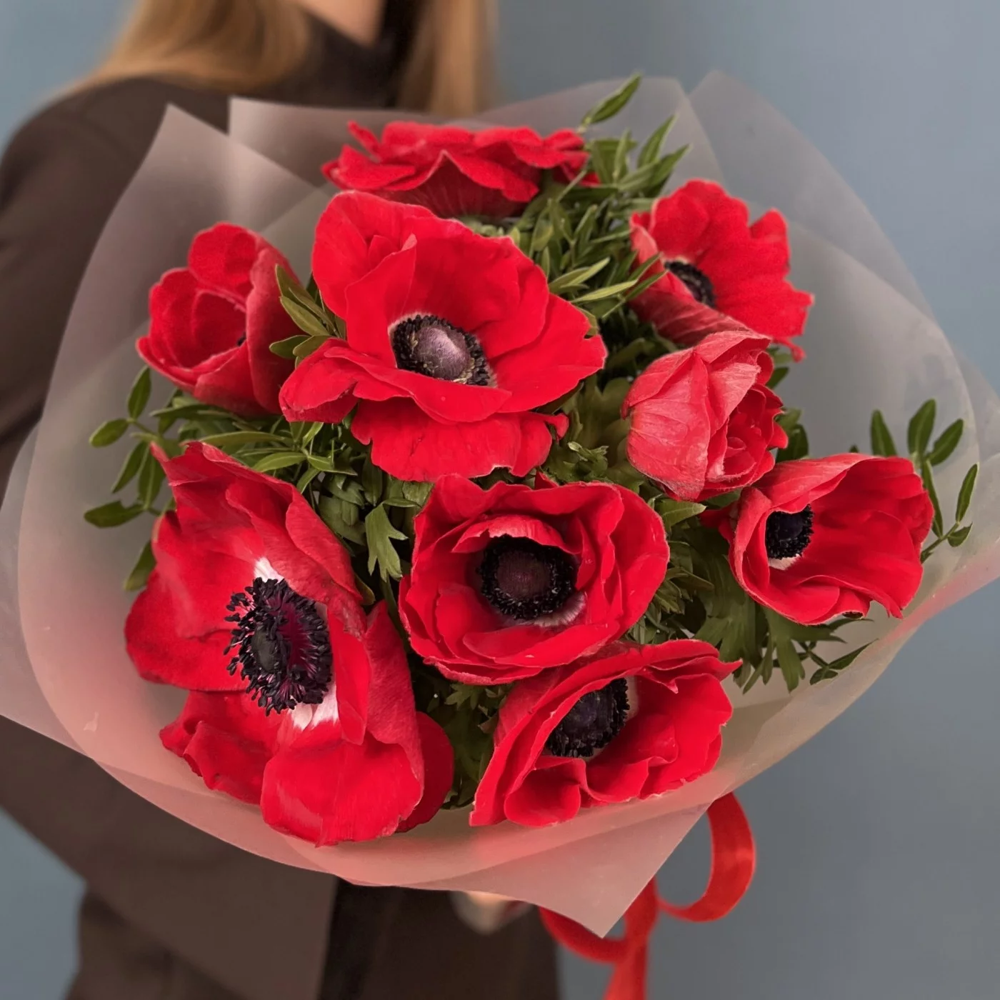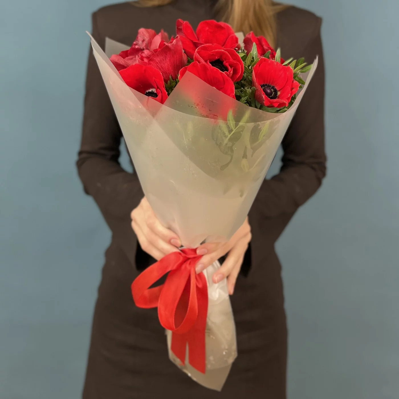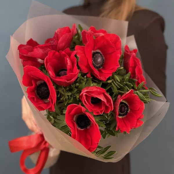 Букет из 9 ярких красных анемонов — это не просто цветы, а искреннее выражение чувств и эмоций. Он привнесет радость и индивидуальность в любое событие, позволяя выразить свои чувства и отношения. Подарите этот букет, чтобы добавить ярких красок в жизнь тех, кто вам дорог!
