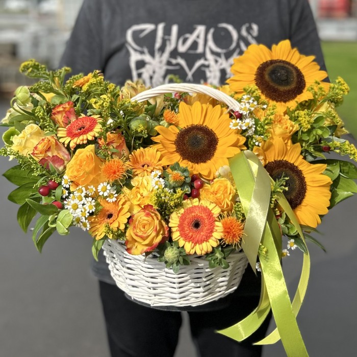 Авторская осенняя корзина — это изысканная композиция, воплощающая тепло и богатство золотой поры года.