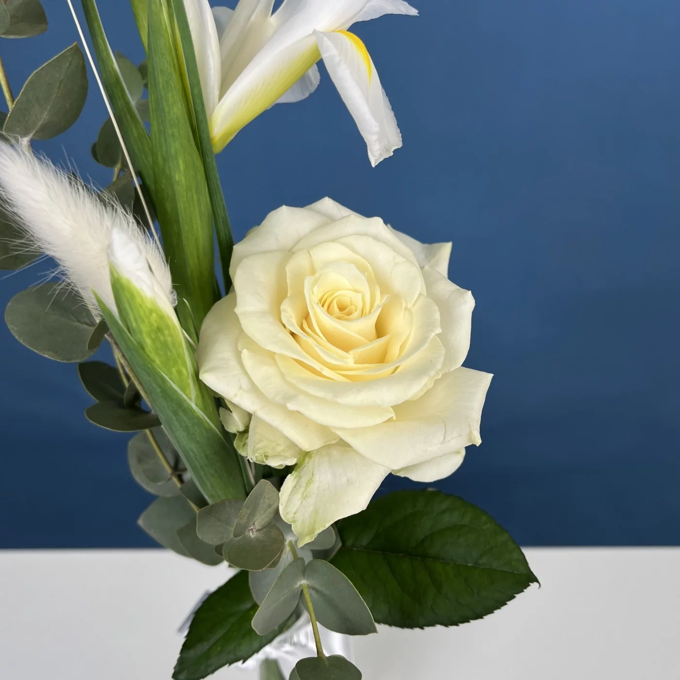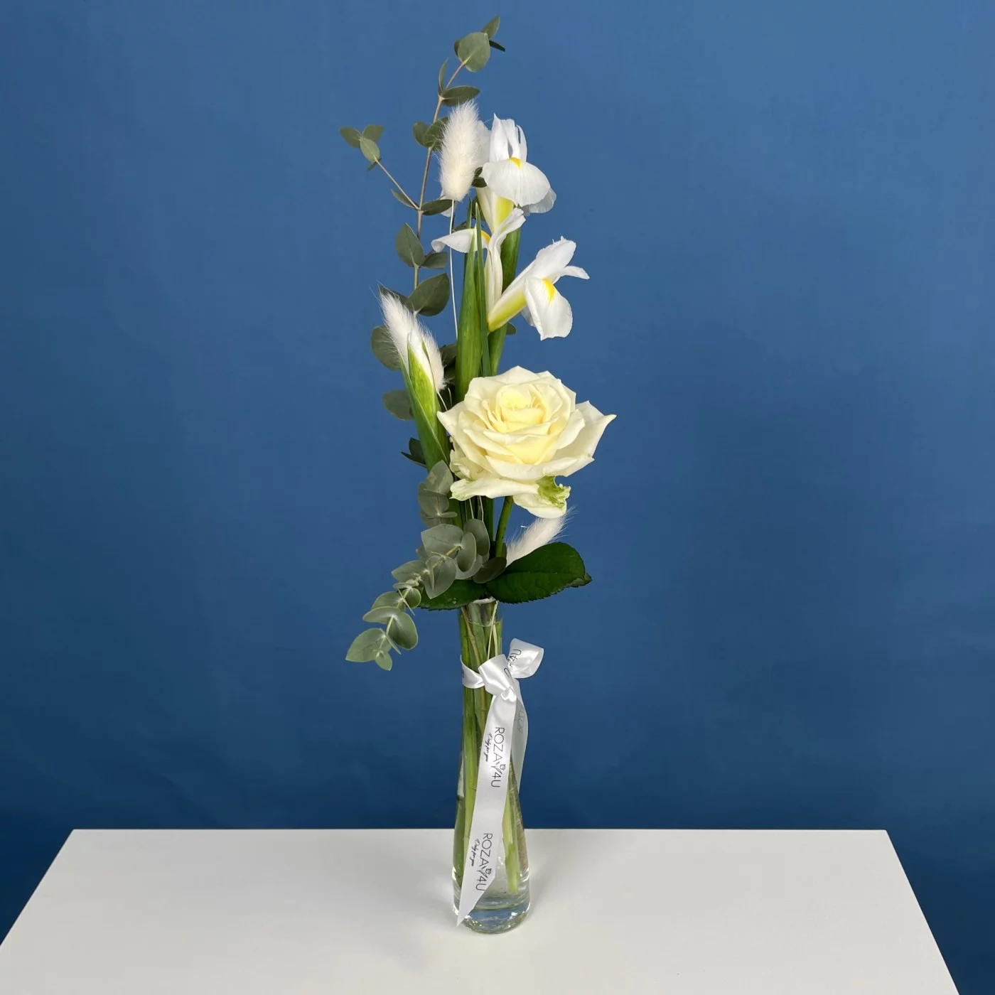 Интерьерный букет в белом цвете станет отличным дополнением для вашего дома, офиса или может быть подарком для близких. Он идеально подойдет для свадеб, юбилеев или любых других мероприятий, создавая атмосферу легкости и свежести.