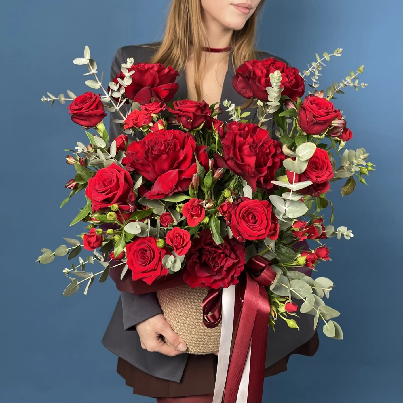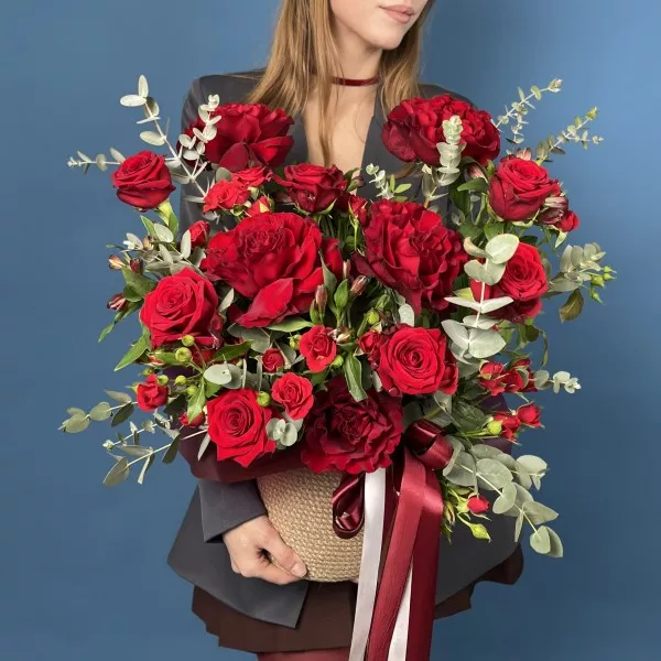 Композиция в кашпо Красное очарование — это захватывающее цветочное оформление, полное страсти и романтики. В центре композиции расположены роскошные красные розы, символизирующие глубокие чувства, любовь и восхищение. Их насыщенный цвет и бархатистые лепестки создают эффектный акцент, притягивающий взгляды и наполняющий пространство энергией.
