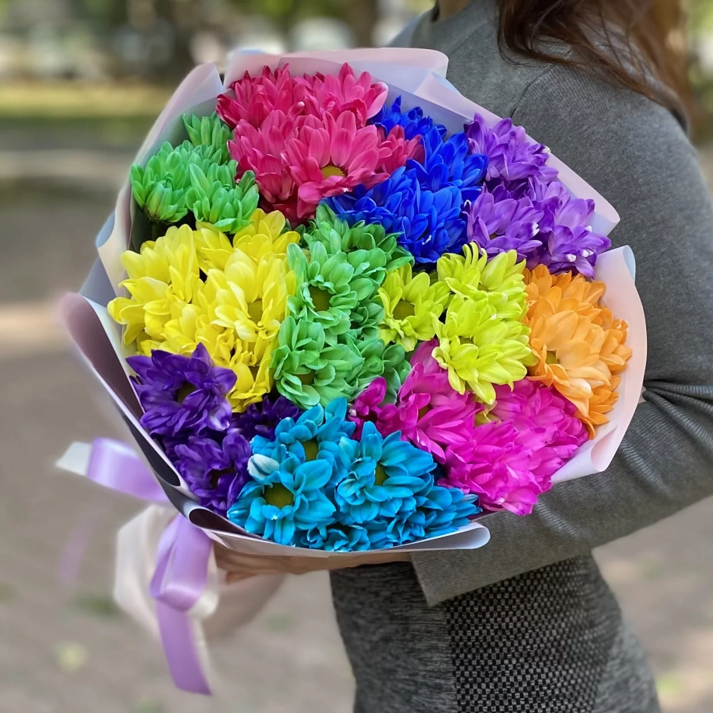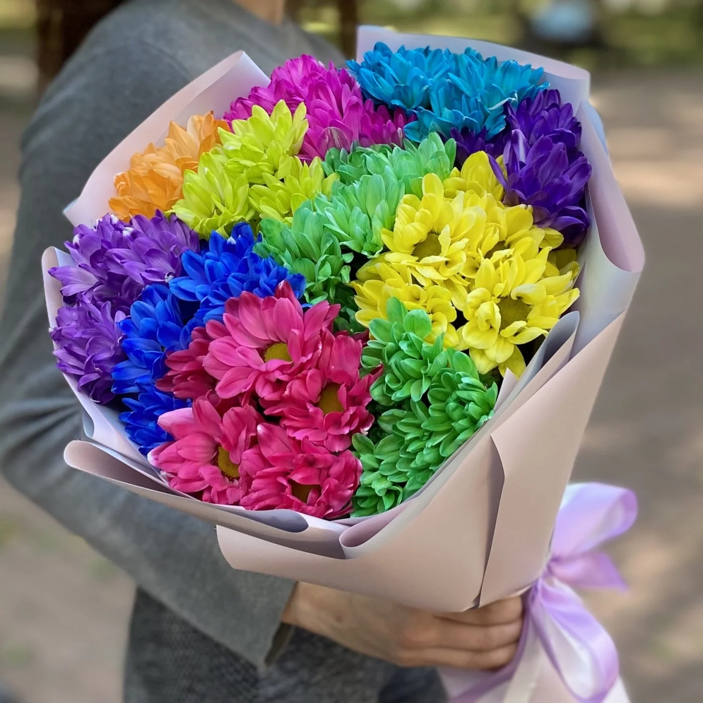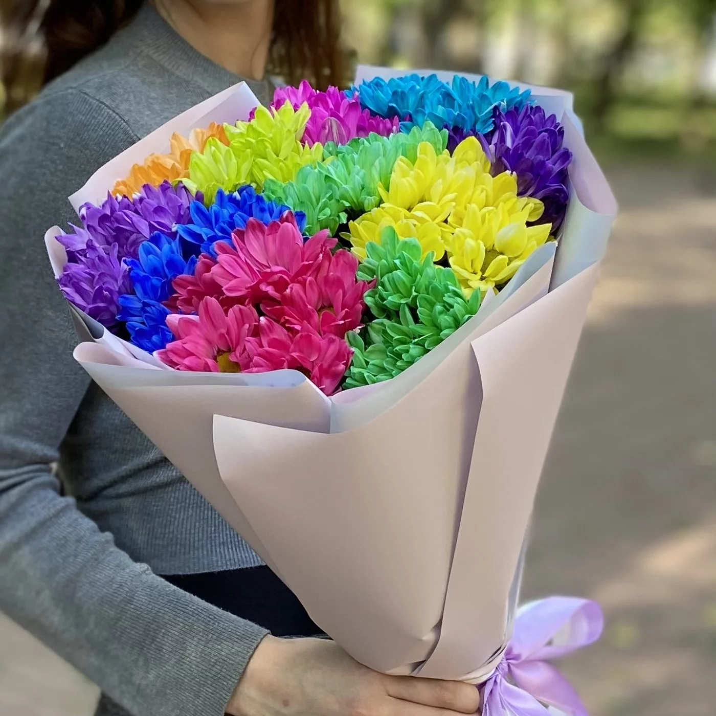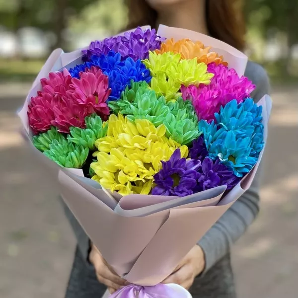 Радужный букет из хризантем