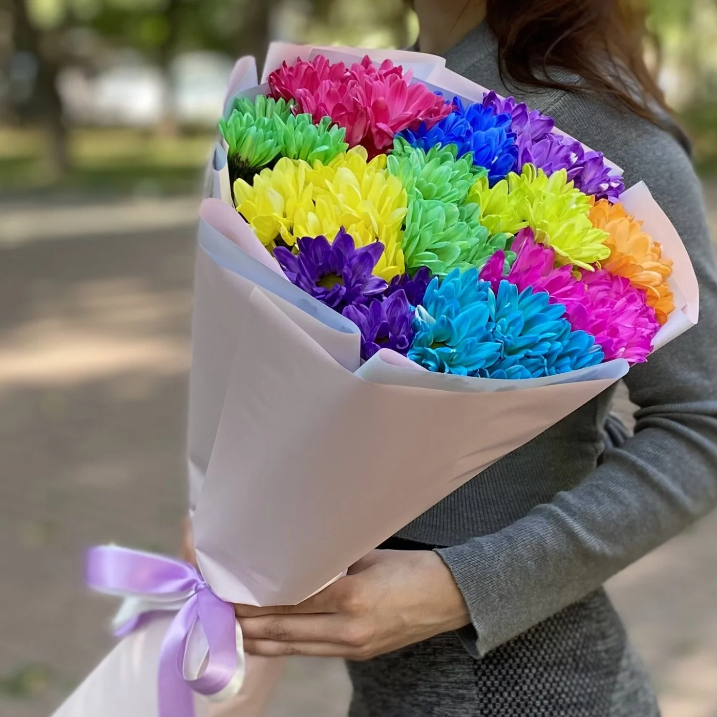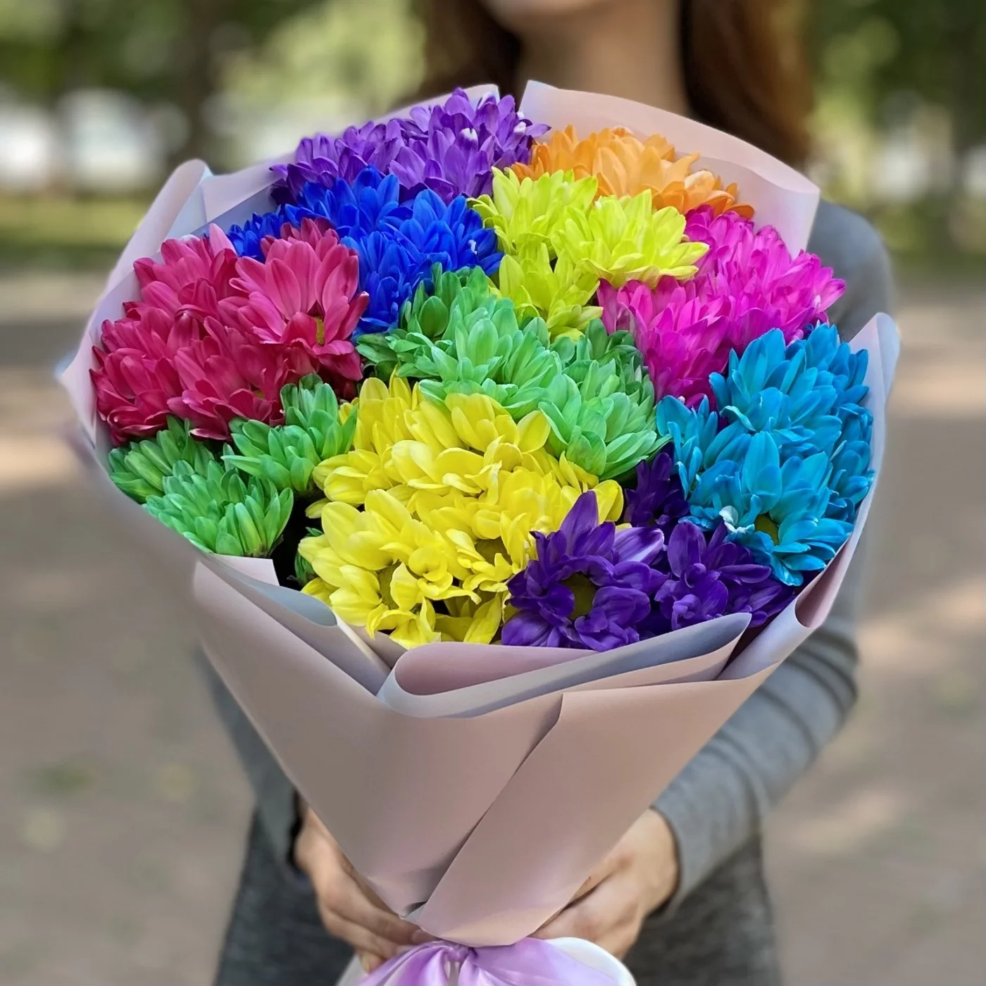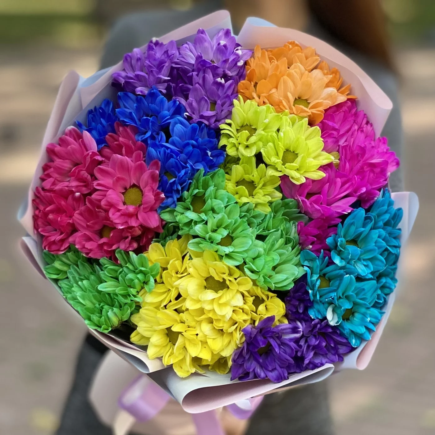 Радужный букет из хризантем