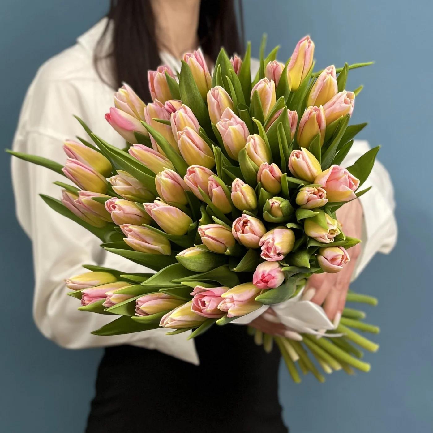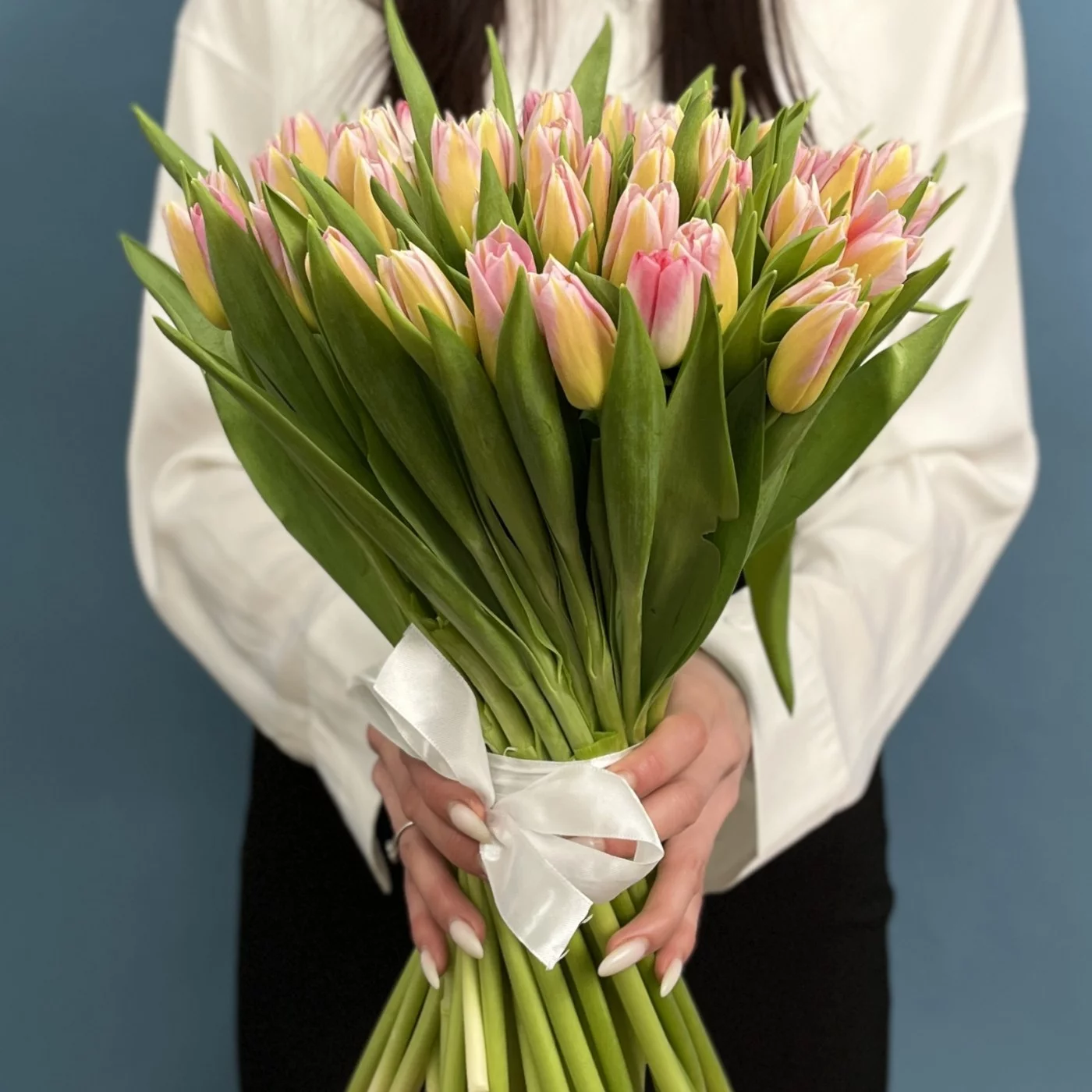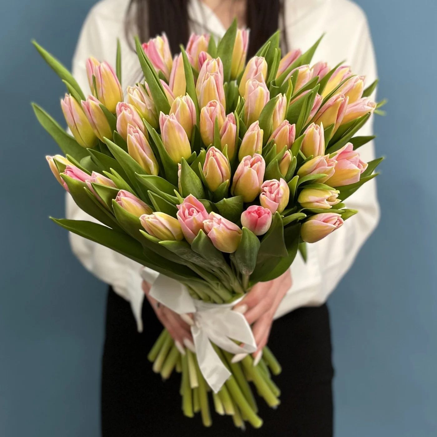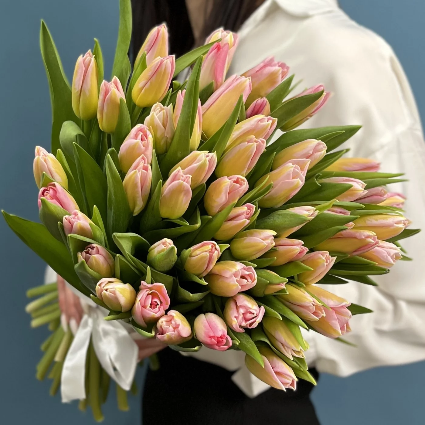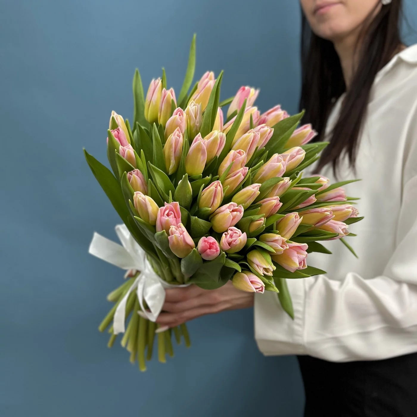 На фото букет из 51 шт. Цена указана за 1 тюльпан.