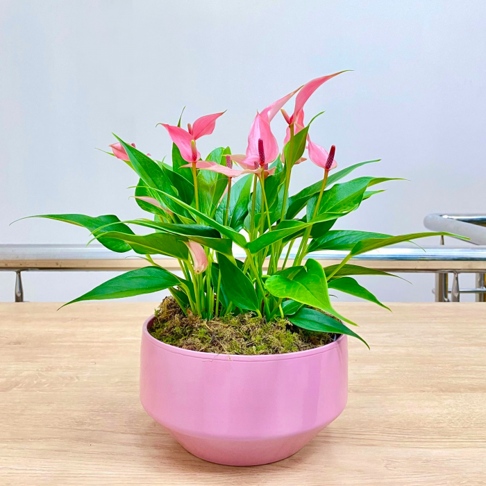 Антуриум Лилли, это миниатюрное растение, можно сказать карликовый сорт, высота взрослого куста 35-50 см. Это маленькое растение является эксклюзивным. Количество маленьких розовых цветов ослепляет.