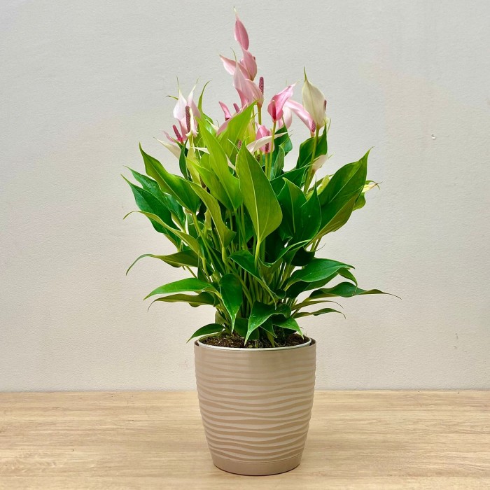 Антуриум Лилли, это миниатюрное растение, можно сказать карликовый сорт, высота взрослого куста 35-50 см. Это маленькое растение является эксклюзивным. Количество маленьких розовых цветов ослепляет.