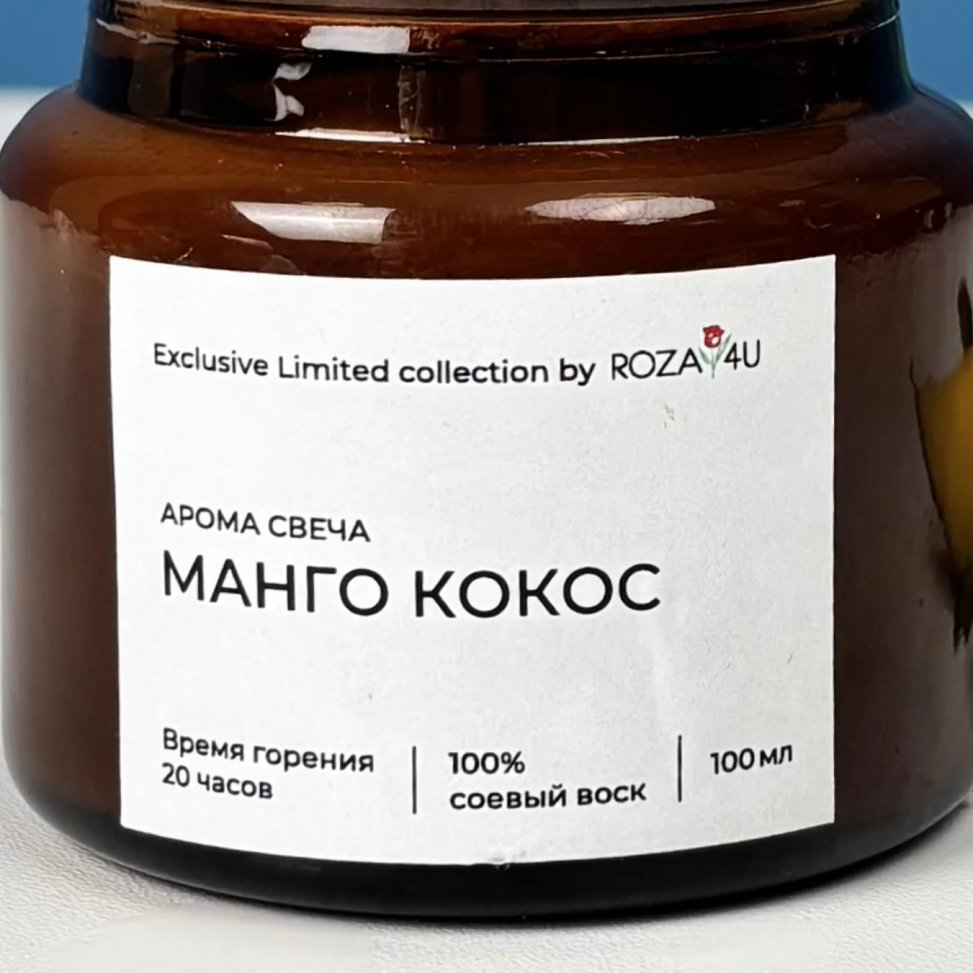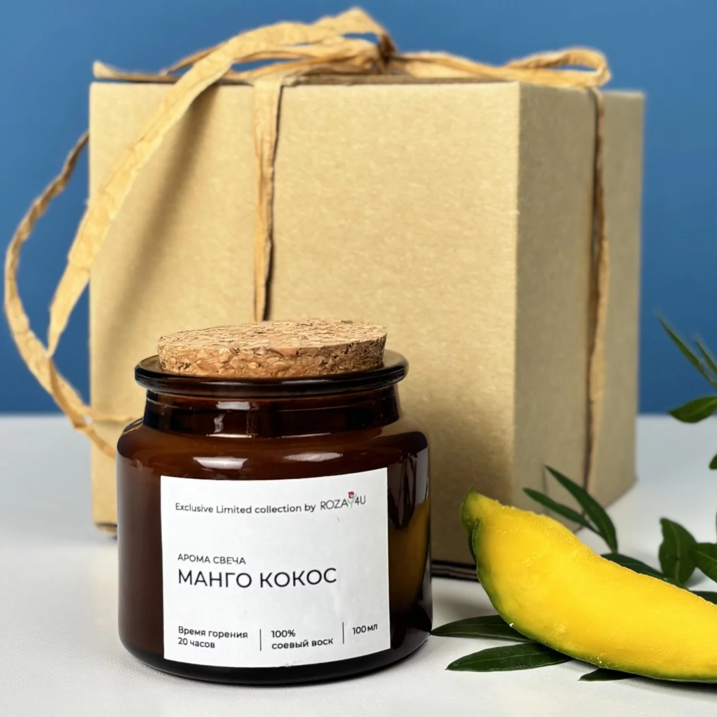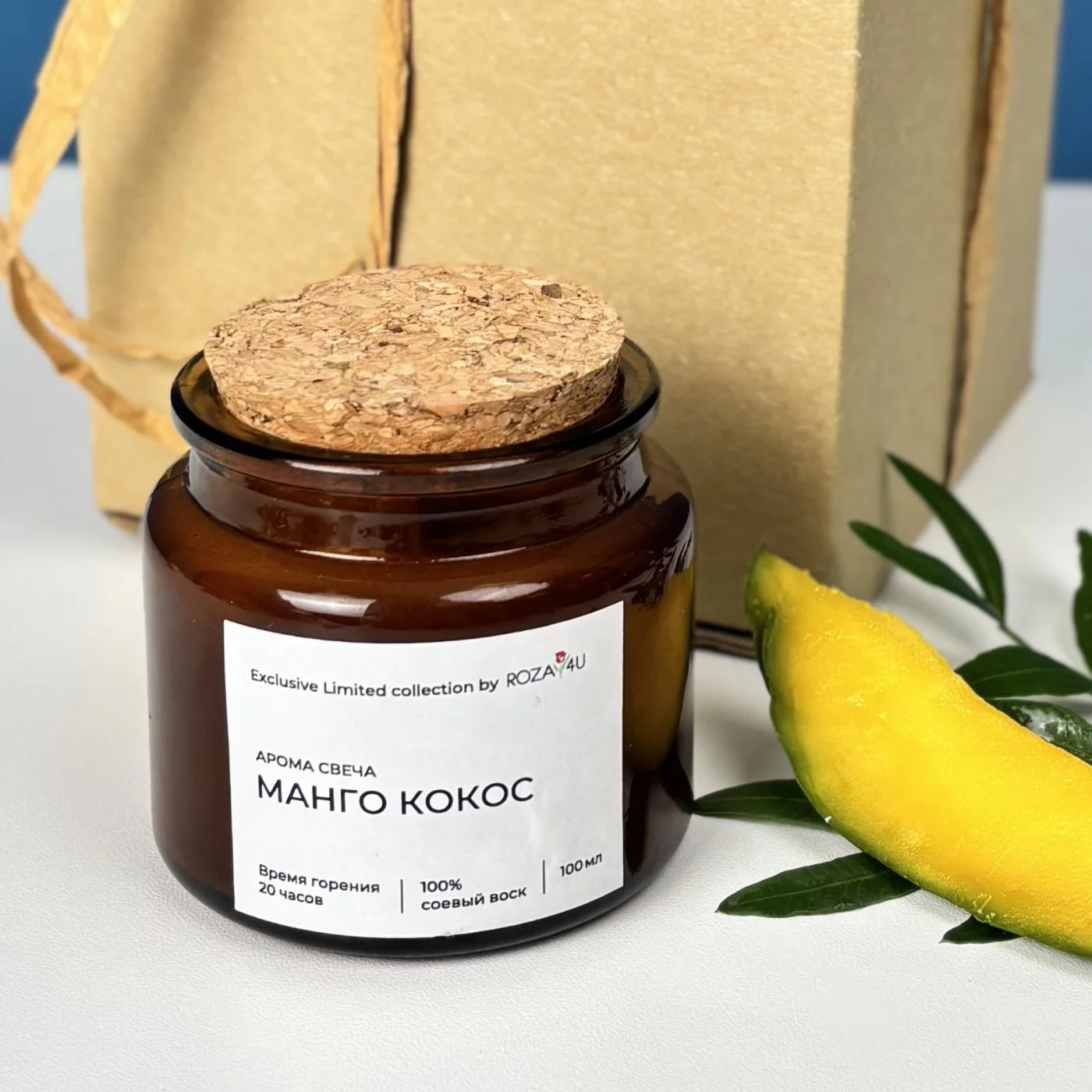 Свеча «Манго Кокос» — тропический акцент для вашего дома. Яркий, сладкий аромат манго с нежным кокосовым оттенком создаёт атмосферу уюта и радости. Идеальна для подарка и домашних вечеров с настроением отпуска.