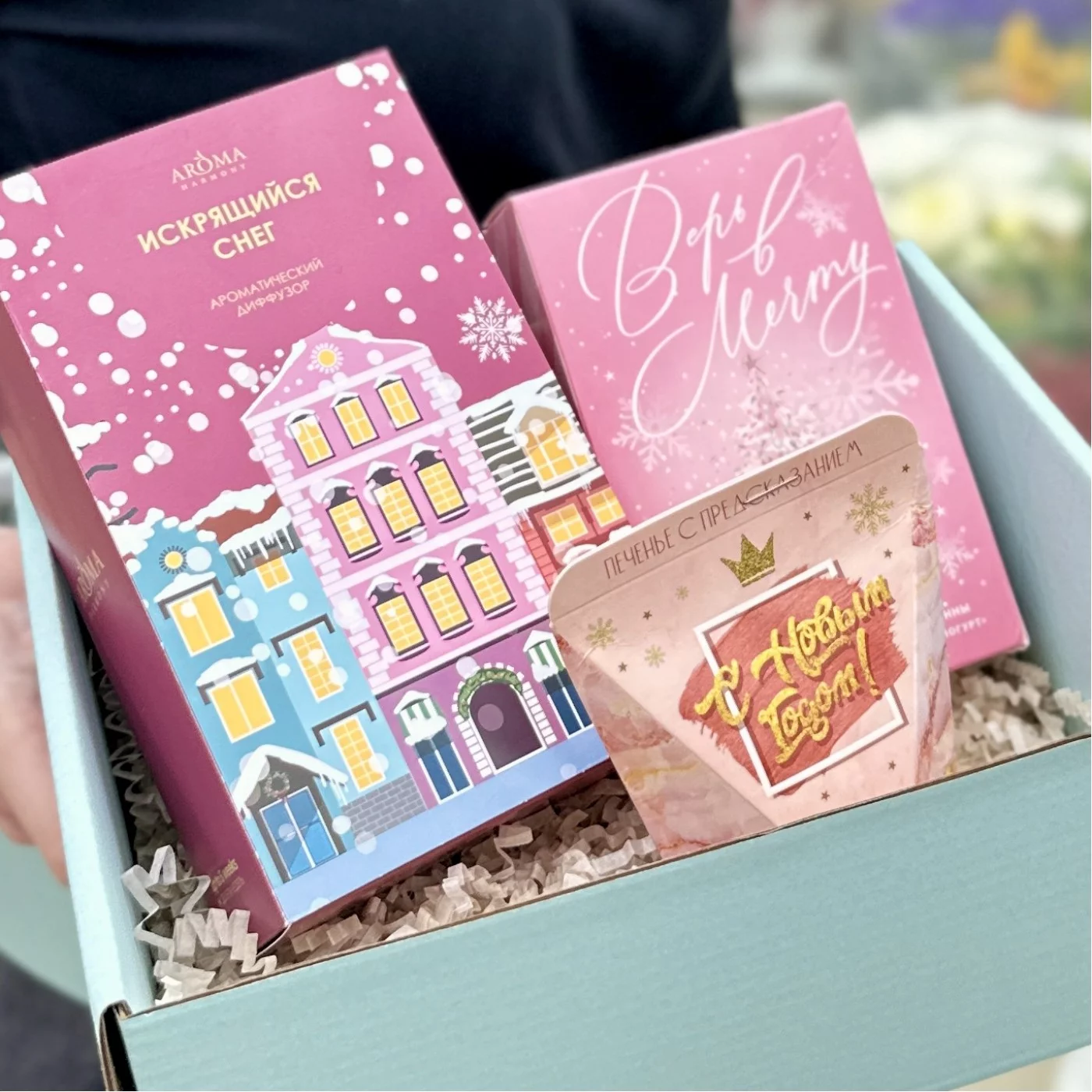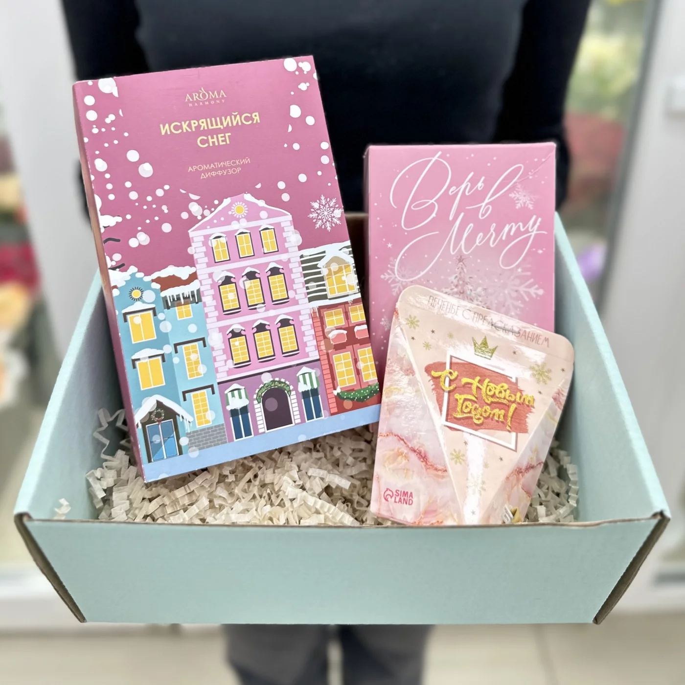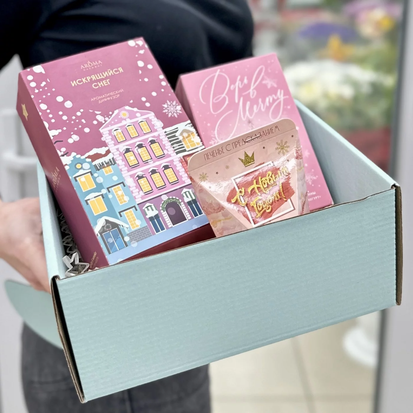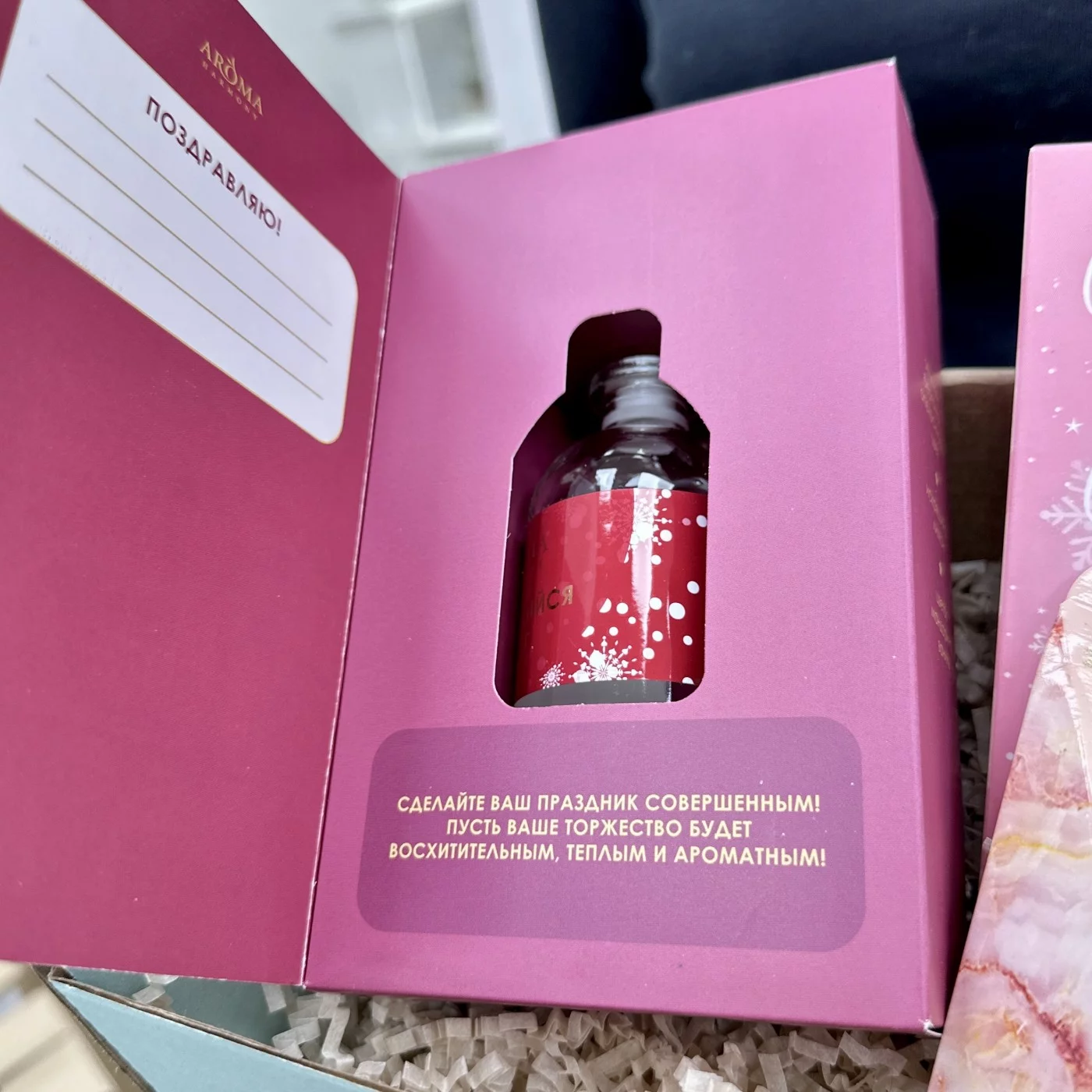 Ароматный подарочный набор с печеньем, диффузором и гелем для душа с пеной, идеально подойдет для поздравления с Новым годом родных и коллег.
