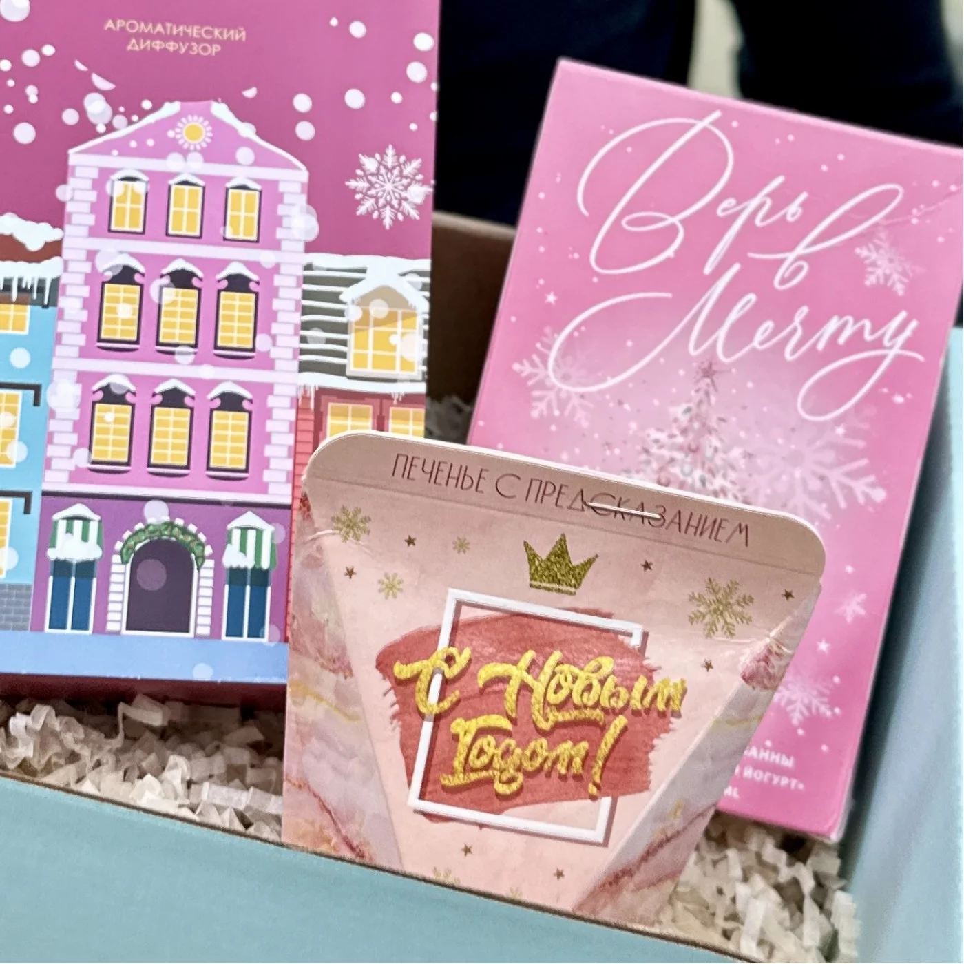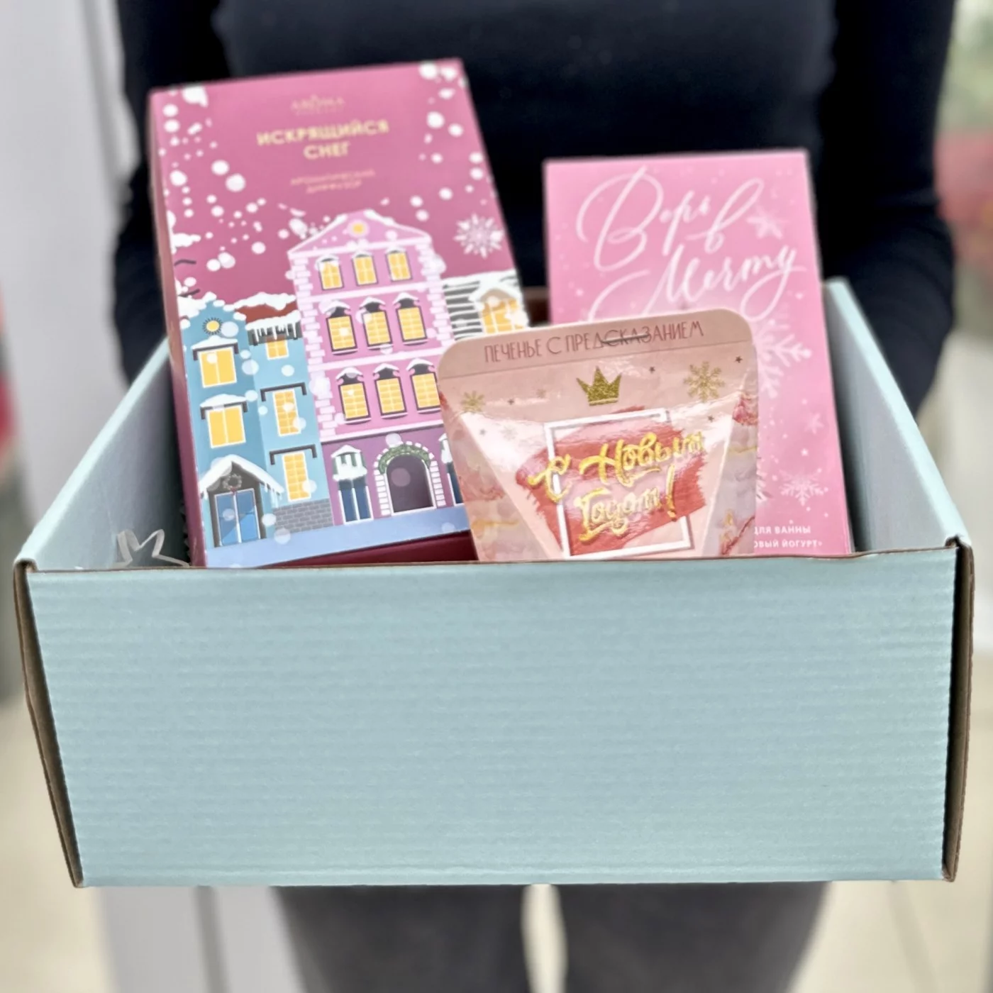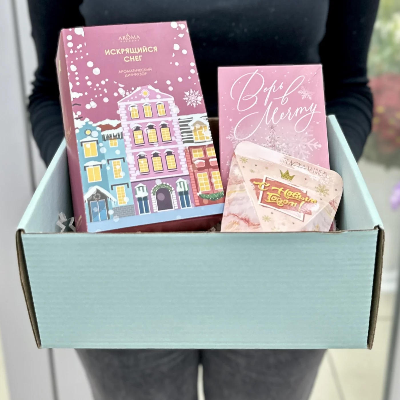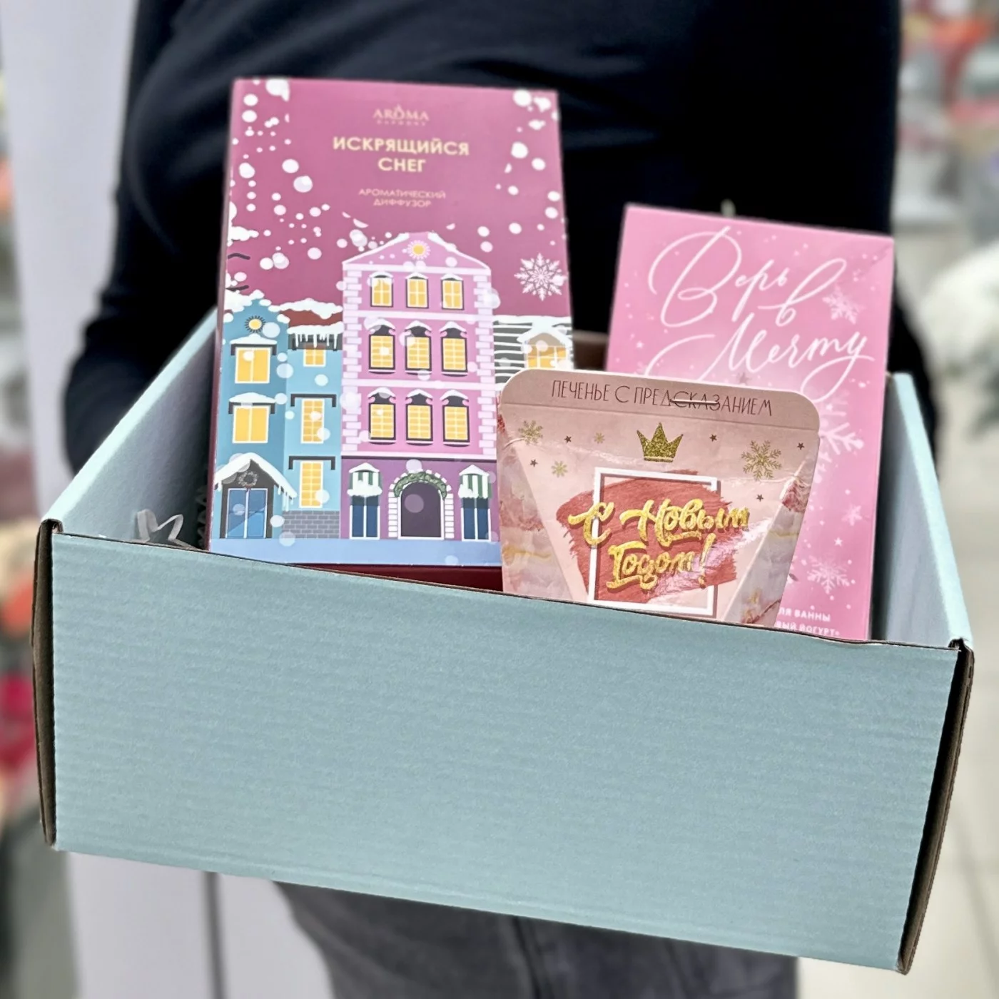 Ароматный подарочный набор с печеньем, диффузором и гелем для душа с пеной, идеально подойдет для поздравления с Новым годом родных и коллег.
