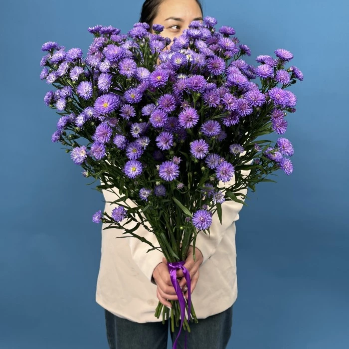 Фиолетовый астр — изящный и необычный цветок с мелкими, множественными лепестками, собранными в пушистые шарики.