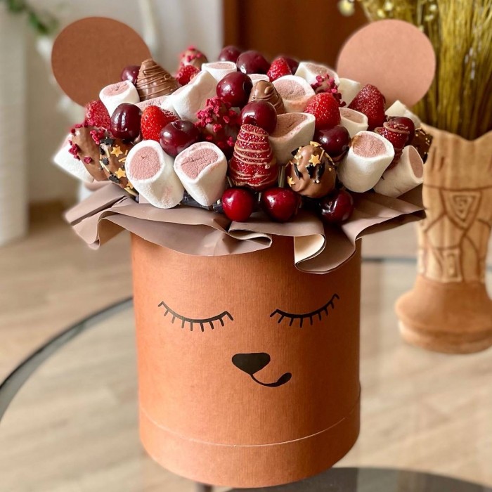 Авторская коробка Мишенька с клубникой в шоколаде и маршмеллоу. Прекрасный подарок на любой праздник.