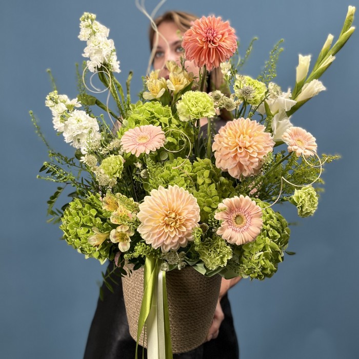 Авторская корзина Летняя Гармония — это изысканное сочетание свежести, ярких красок и природной красоты, созданное для того, чтобы наполнить ваш дом теплом и радостью летних дней.