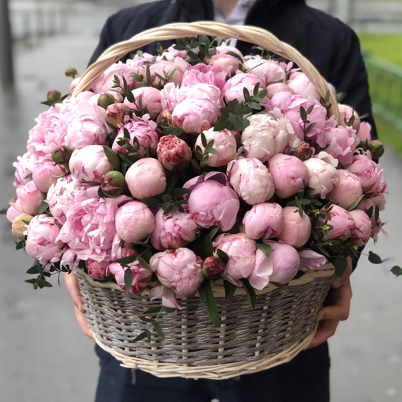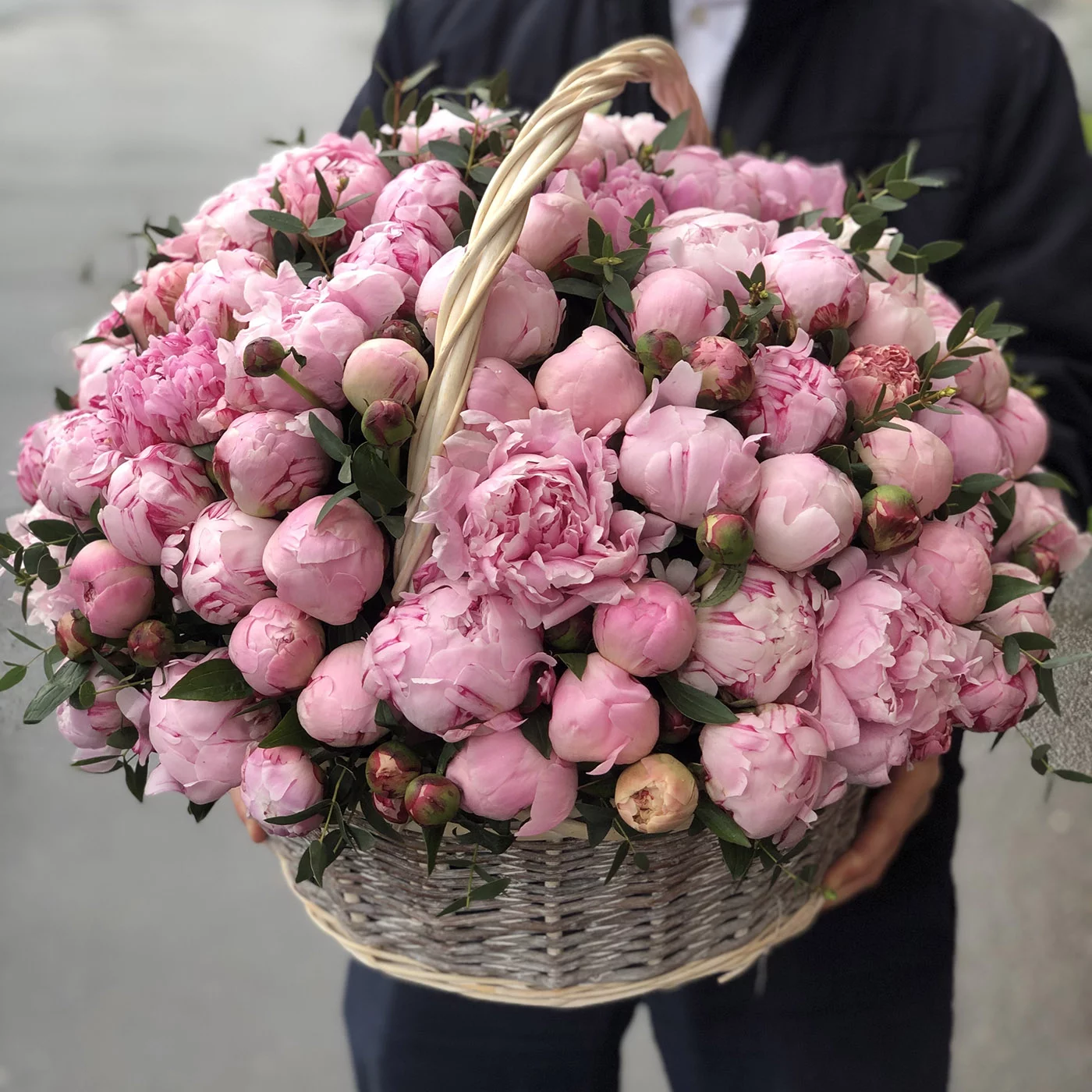101 пион в корзине