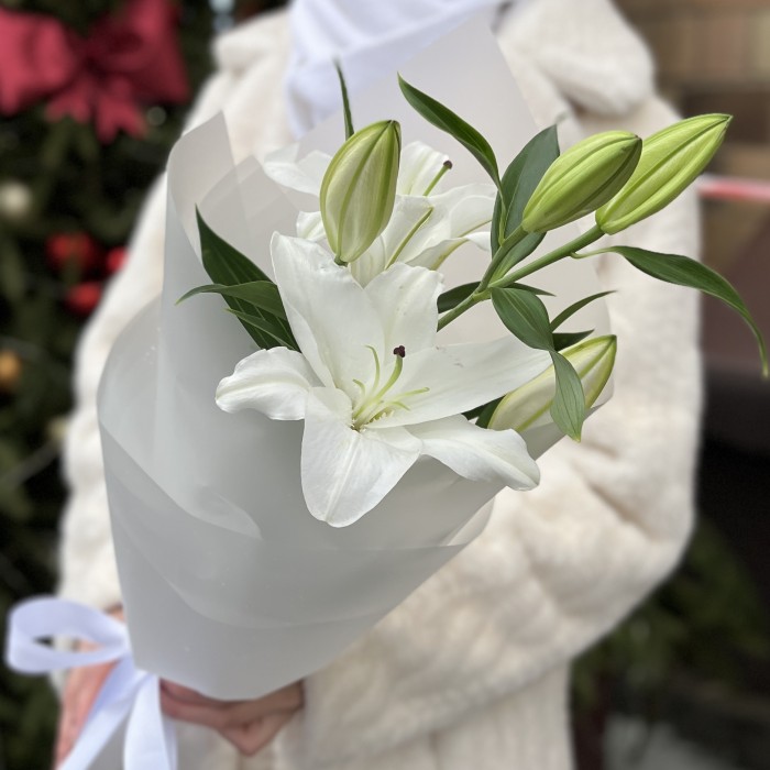 Букет из белой лилии — это не только красивое украшение, но и символ чистоты и благородства. Его нежный цвет и свежий аромат делают его универсальным выбором для любого случая, радуя глаз и создавая атмосферу гармонии.