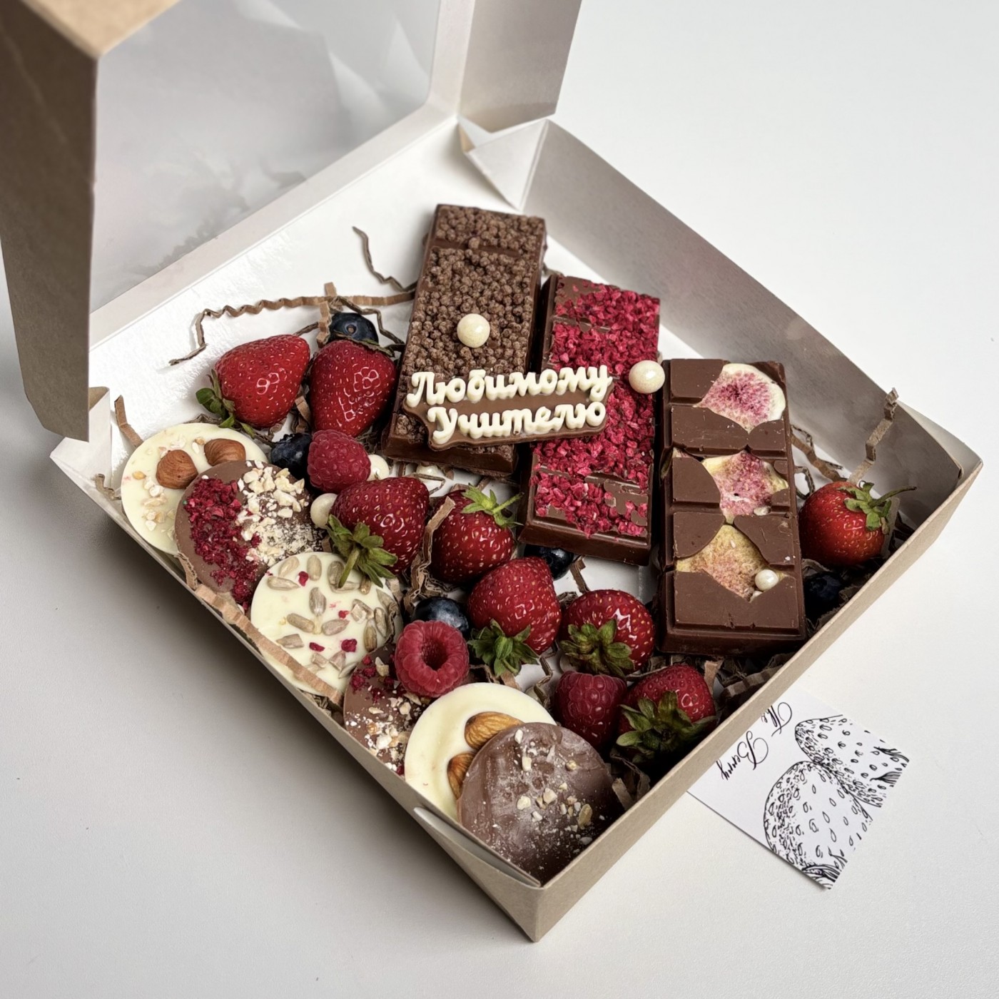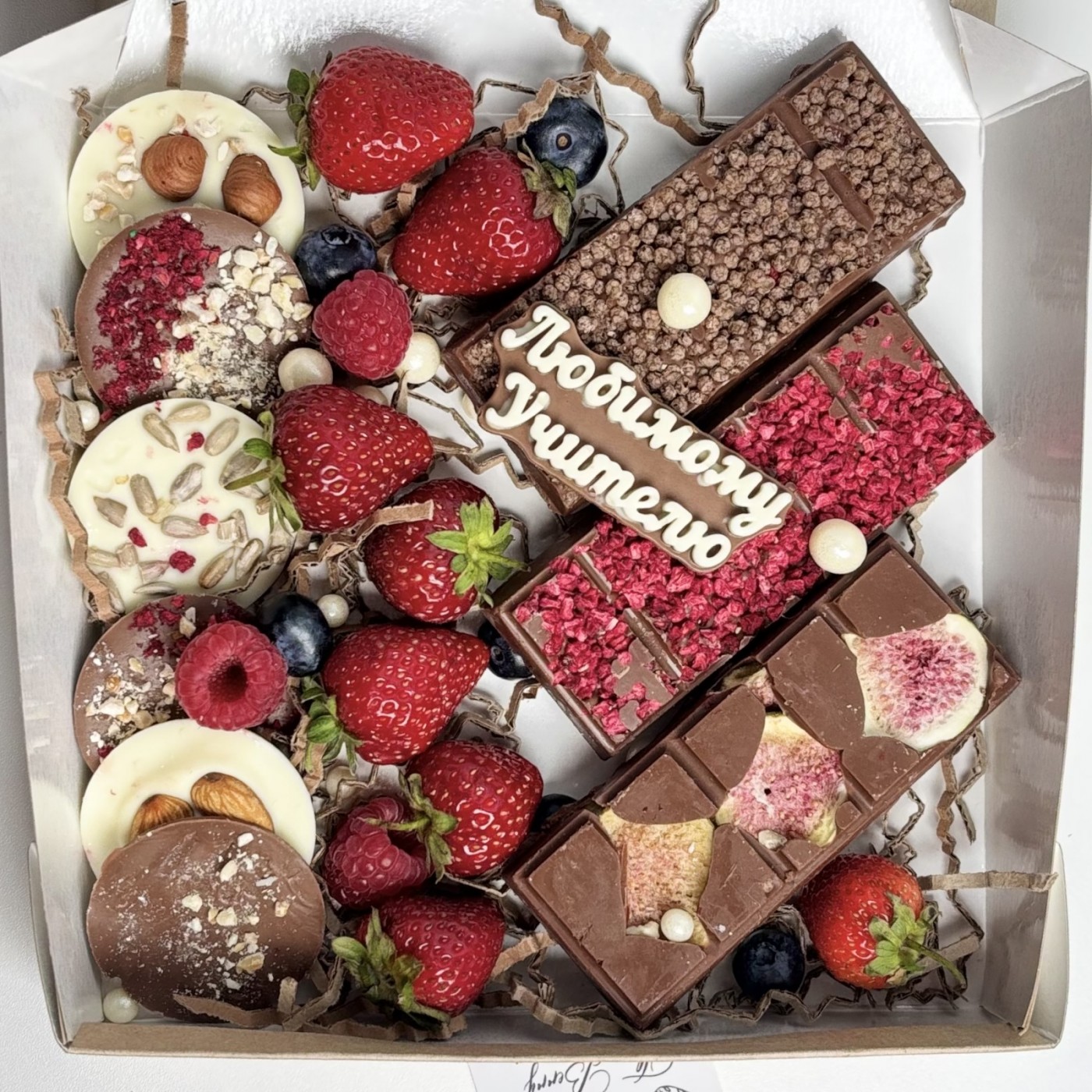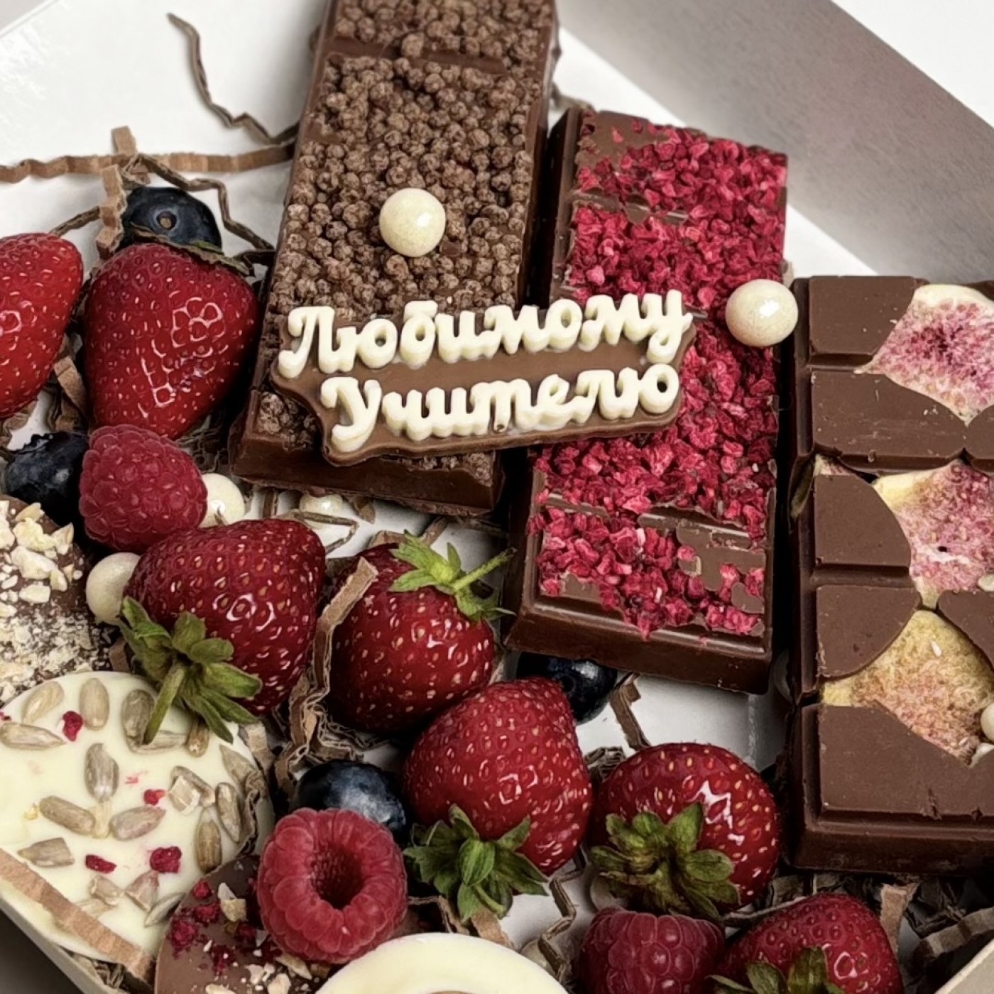 150грНабор шоколада ручной работы с ягодами для учителя. Приятный и красивый сюрприз на 1 сентября или день учителя.