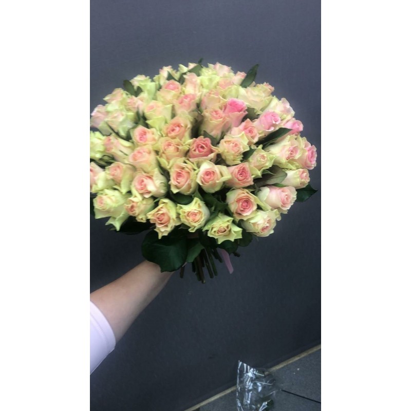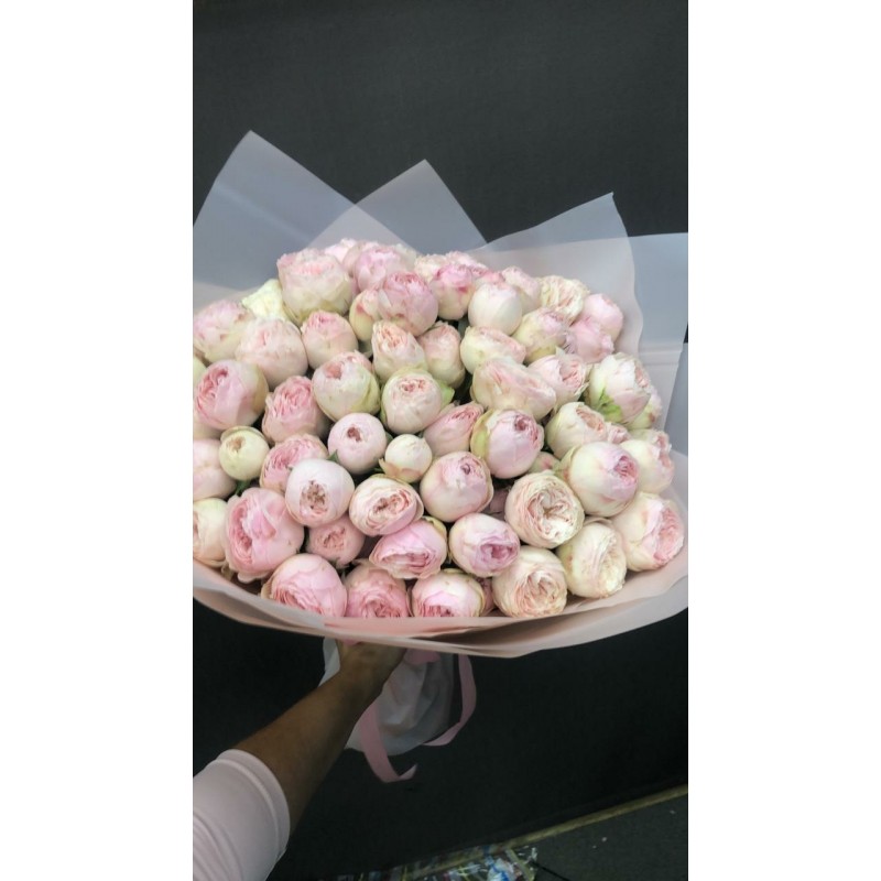 Это романтичный и трепетный флористический ансамбль из кустовых пионовидных роз Бомбастик нежно-розового цвета. Такую цветочную композицию дарят лишь неслучайному человеку — той, которая значит в жизни очень многое. Мама, бабашка, доченька, любимый человек — у каждой женщины есть право на искреннюю радость, незабываемые эмоции и настоящие улыбки. Очаровательными розовыми розами хочется любоваться снова и снова, а их аромат способствует увеличению количества гормона счастья.
