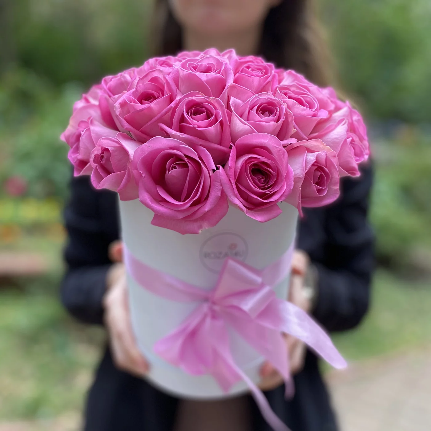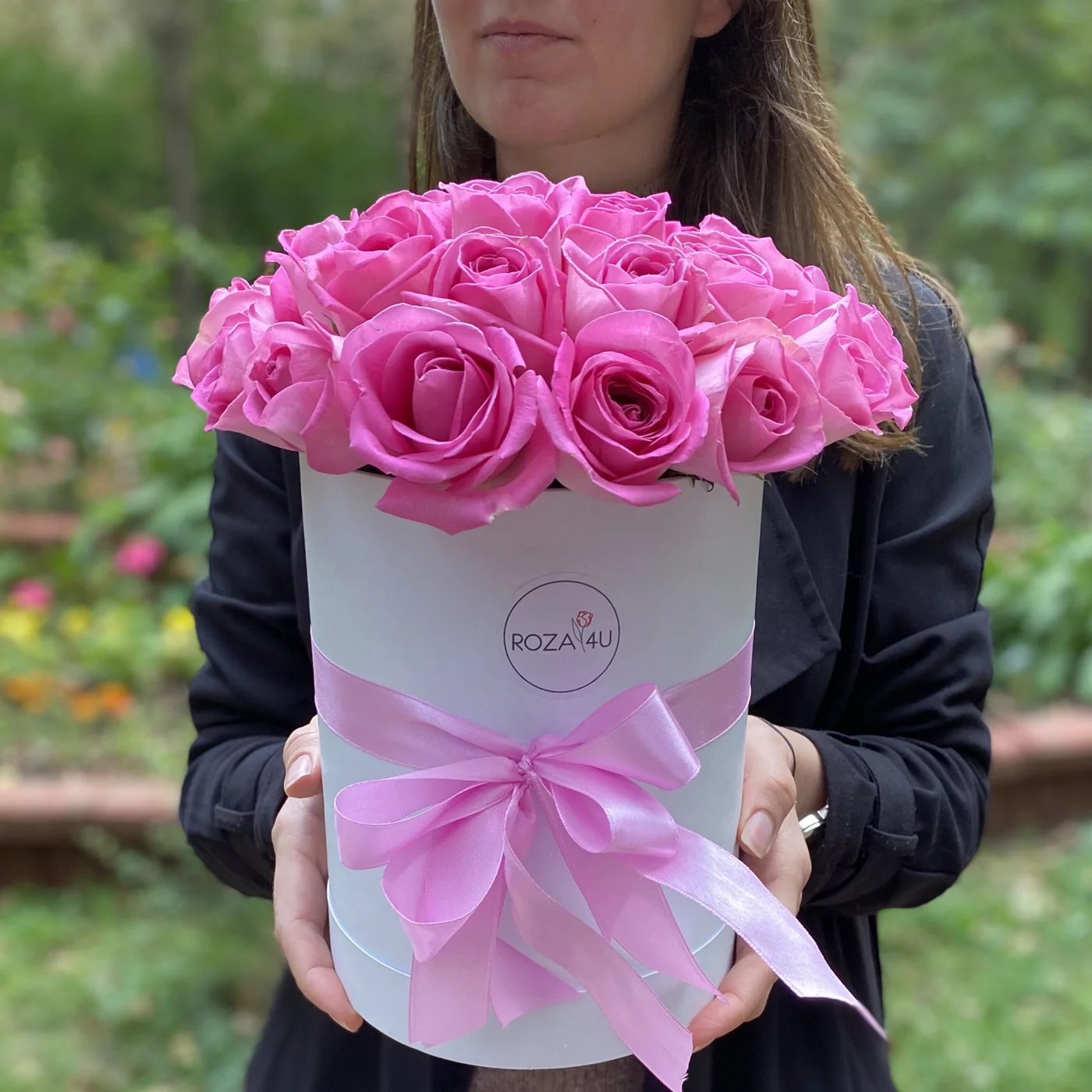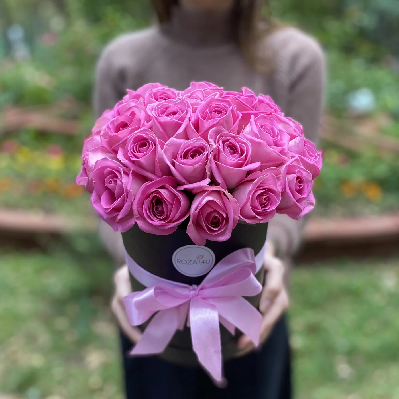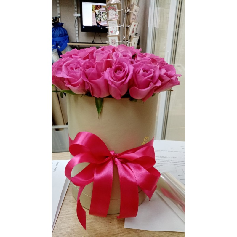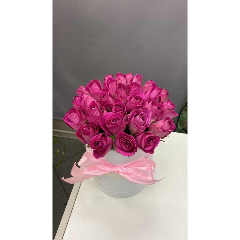 Состав букета: Розы - 29 шт, шляпная коробка для цветов.