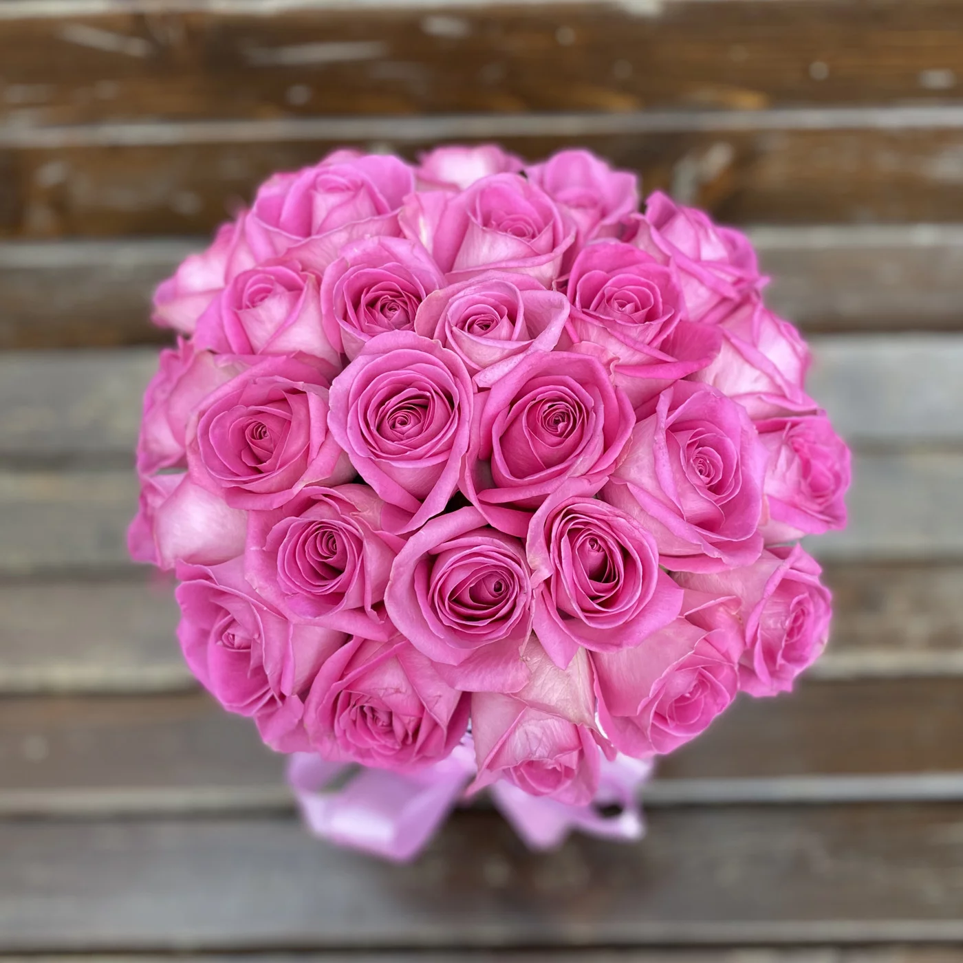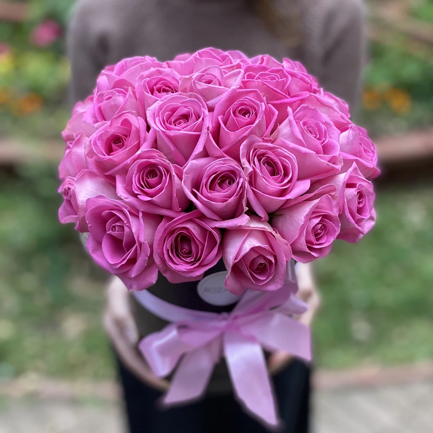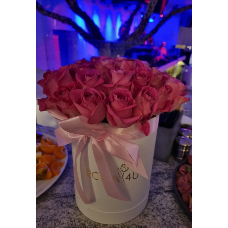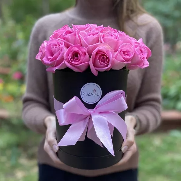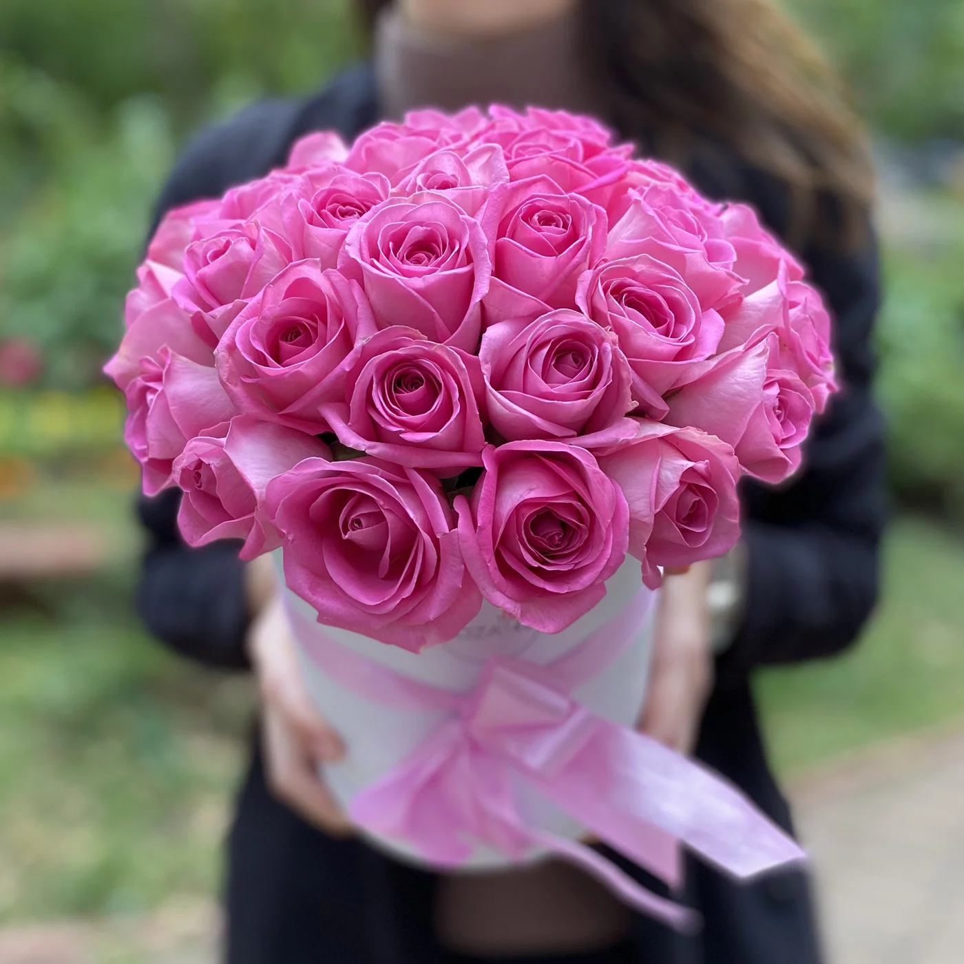 Состав букета: Розы - 29 шт, шляпная коробка для цветов.