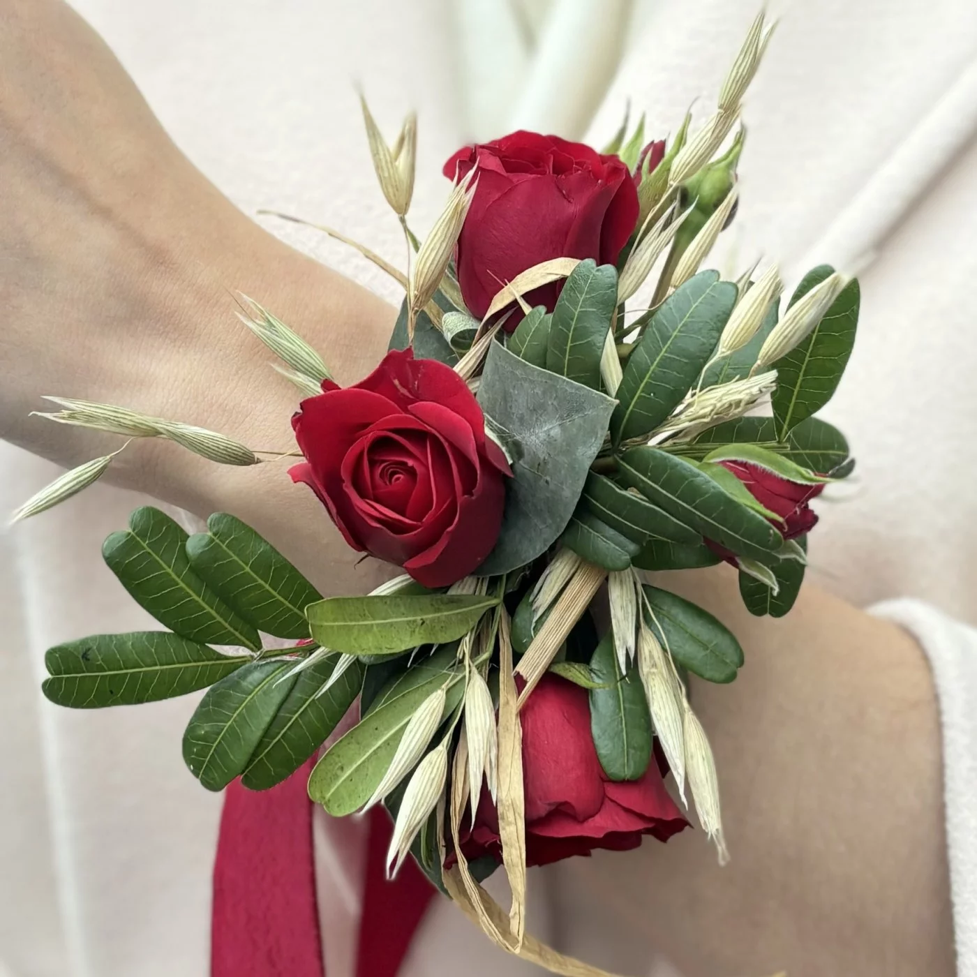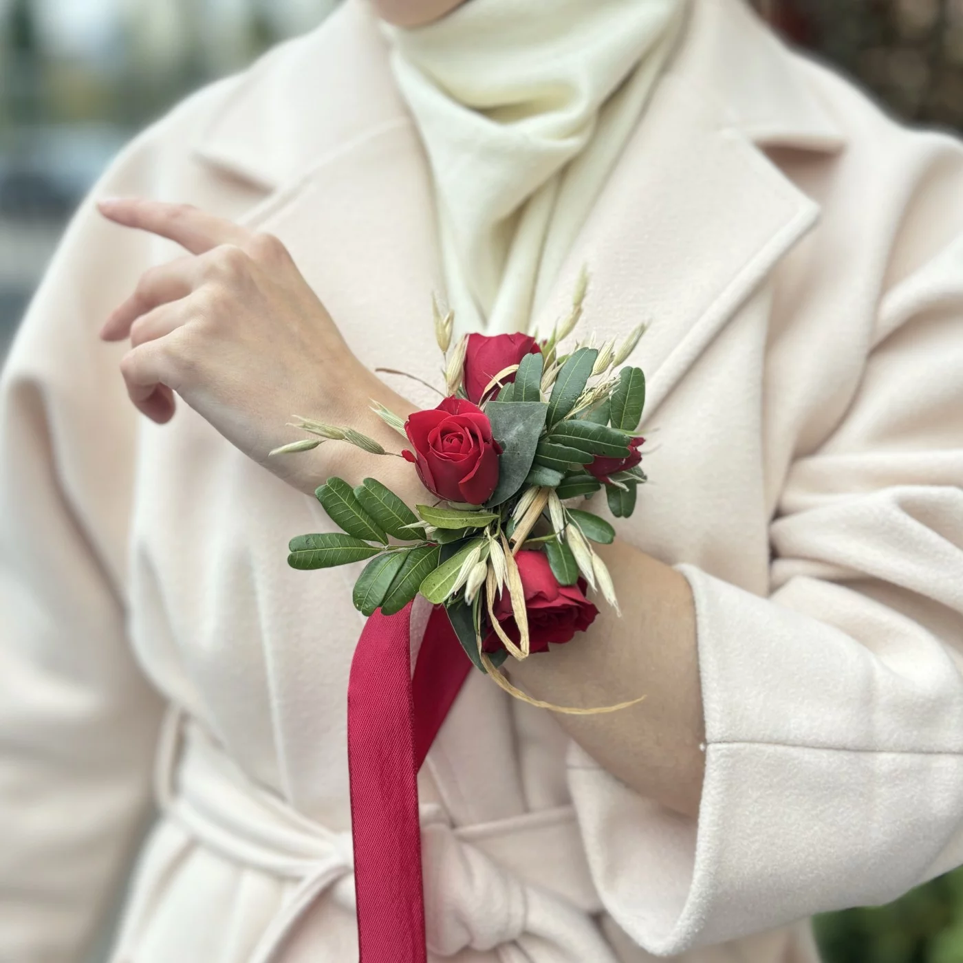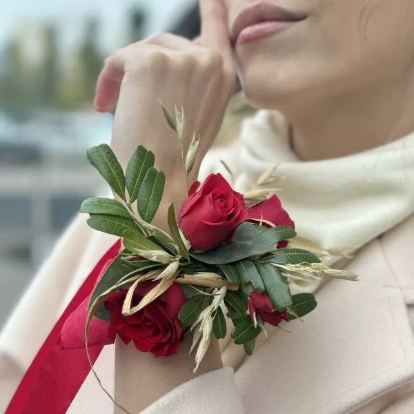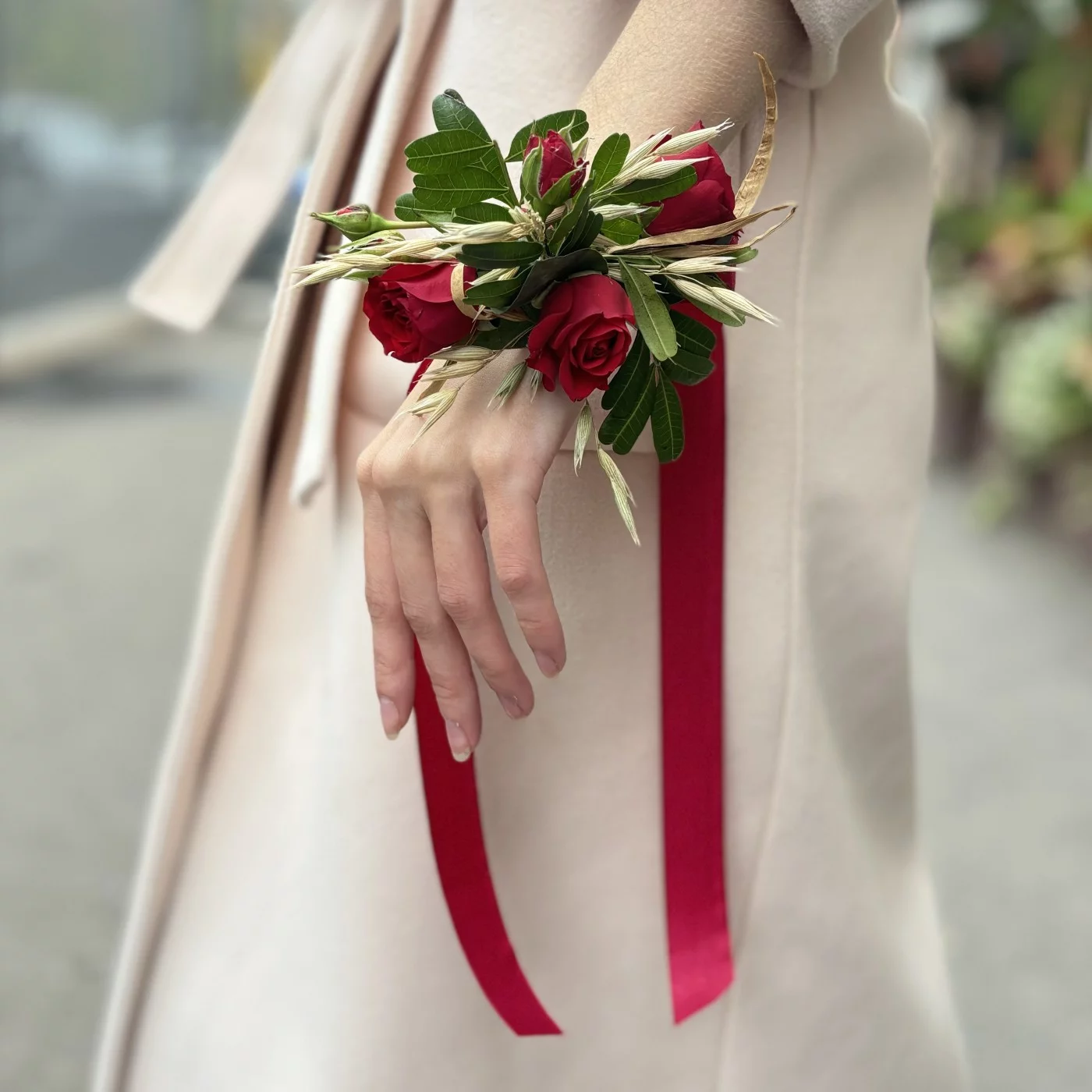 Браслет для подружки невесты с кустовой красной розы – это прекрасный и стильный акцент на свадебном торжестве.