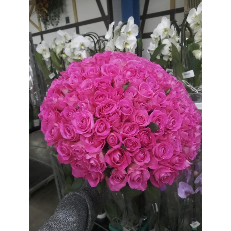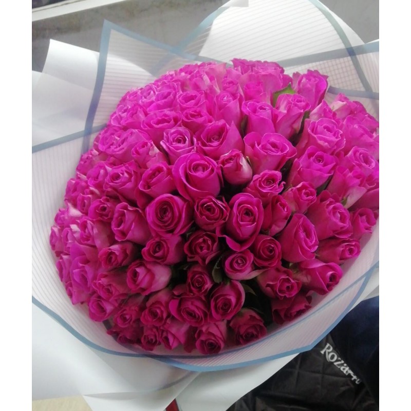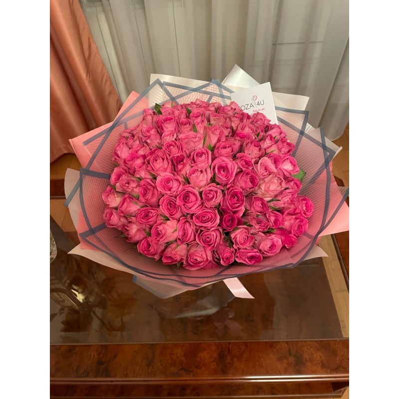 Купить недорого букет 101 розовая роза можно оформив заказ онлайн на сайте, где также можно указать дополнительные пожелания (например записку получателю), либо нажав на кнопку "Быстрый заказ".