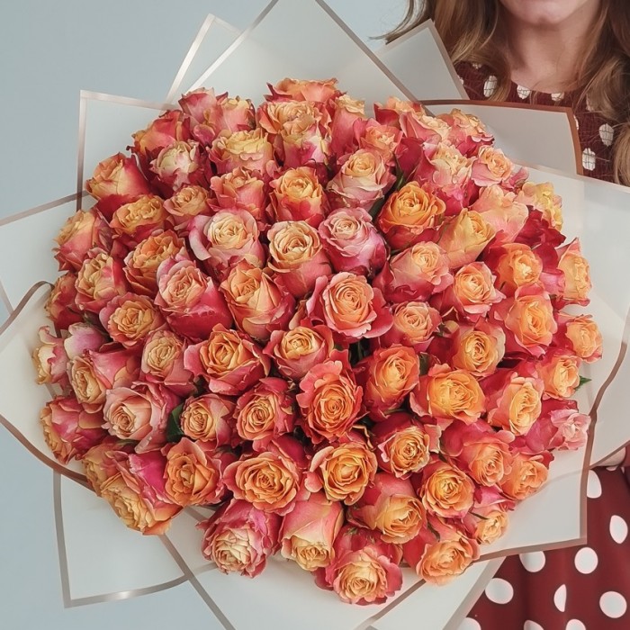 Пышный букет красно-оранжевых роз 3D украсит праздник, торжественную встречу или романтическое свидание. Такой шикарный подарок - знак особого расположения и самых добрых чувств.