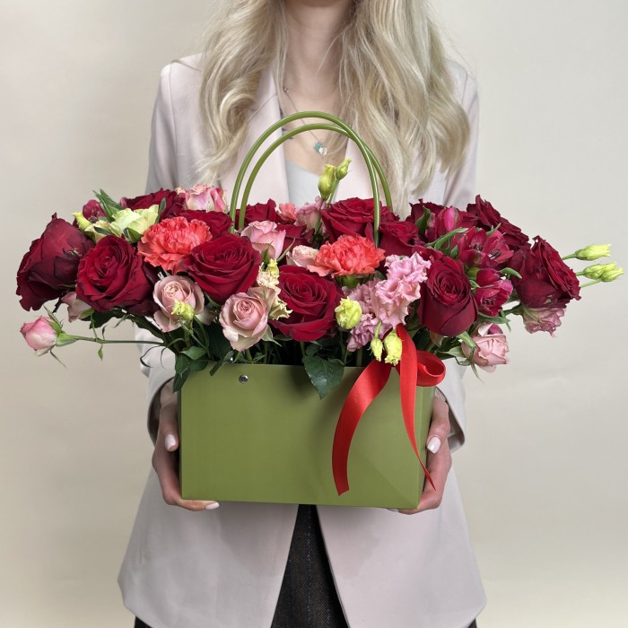 Букет дня в коробке с розами Яркое настроение