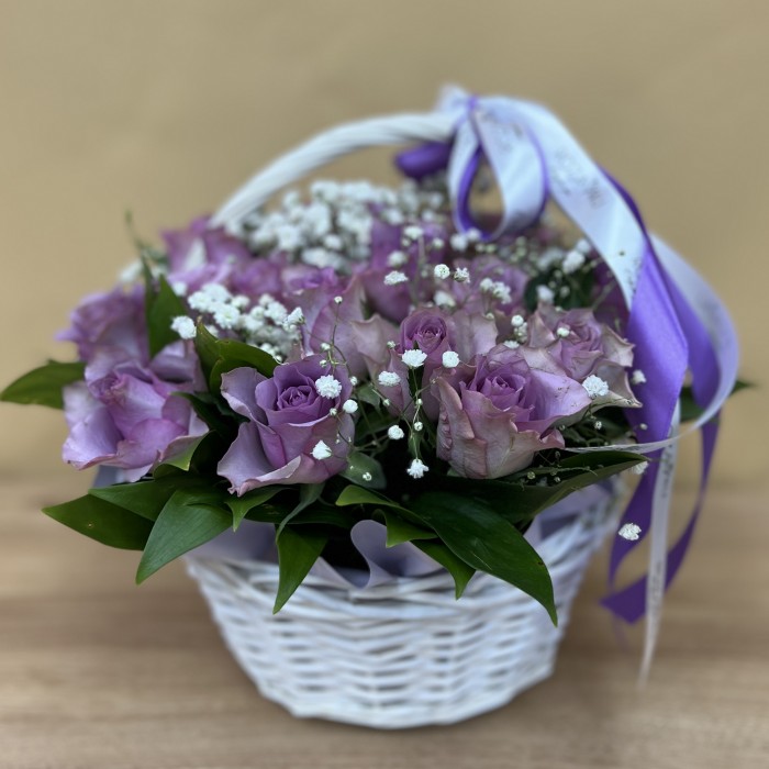 Состав: корзина, оазис. роза ог-25, гипсофила-2,. рускус-0,2