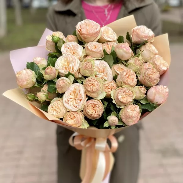 Букет персиковых пионовидных роз Джентл Трендсеттер