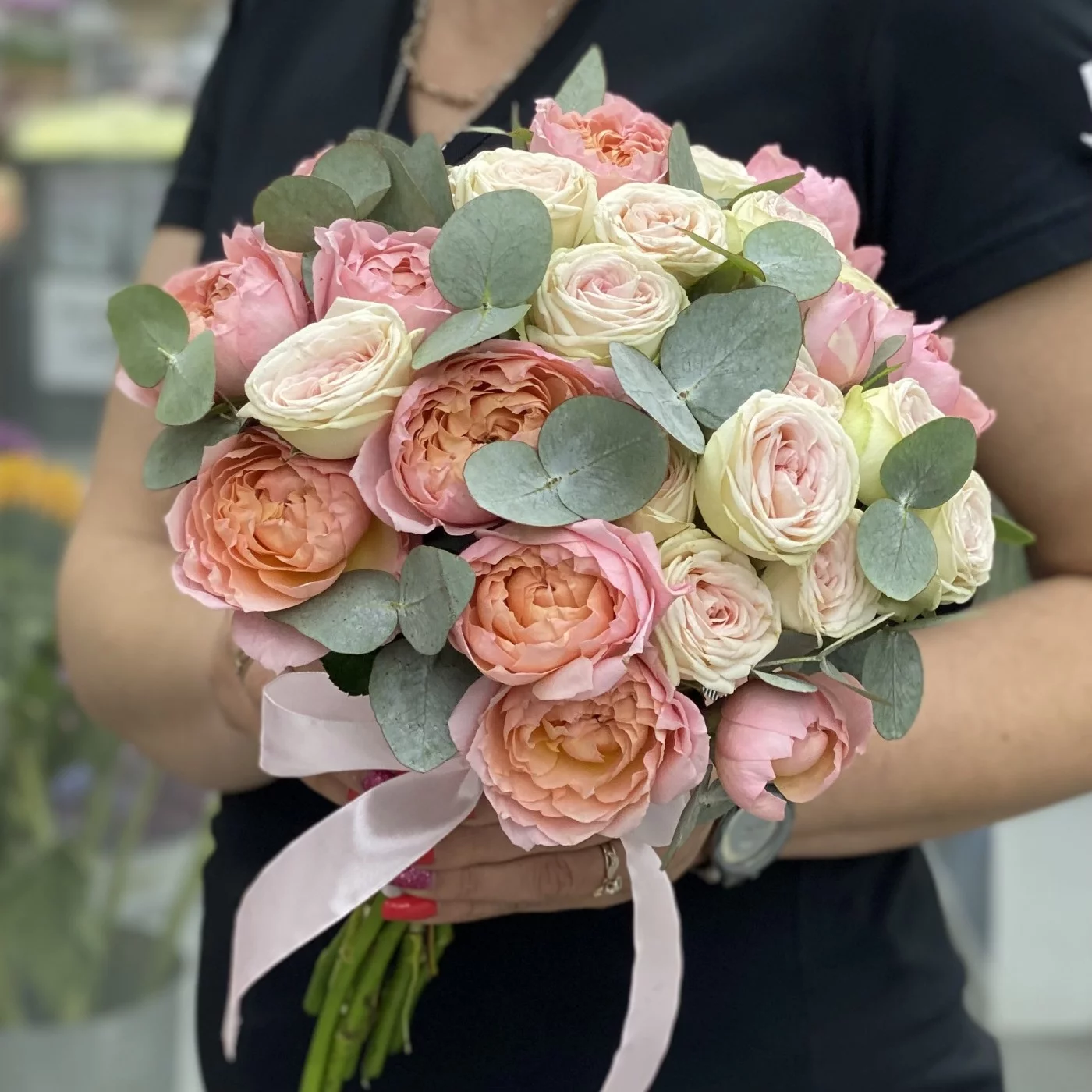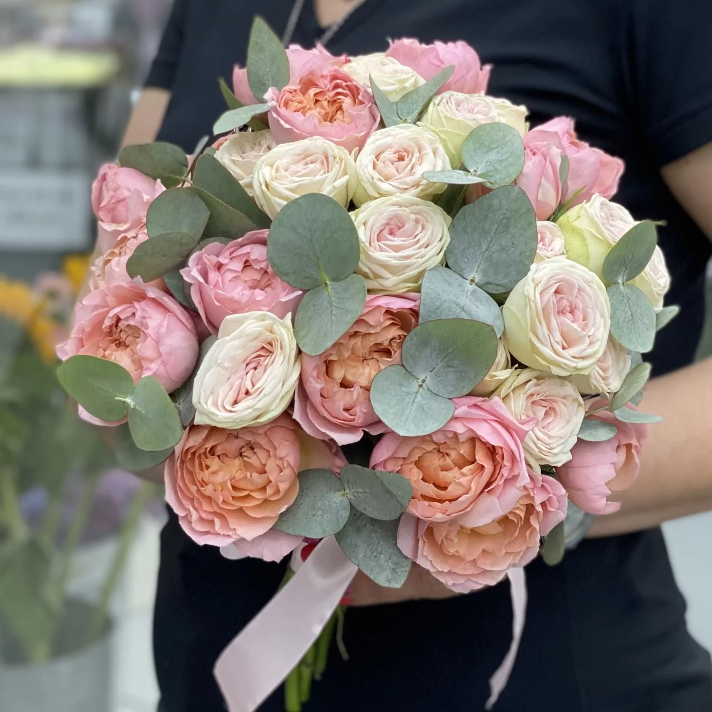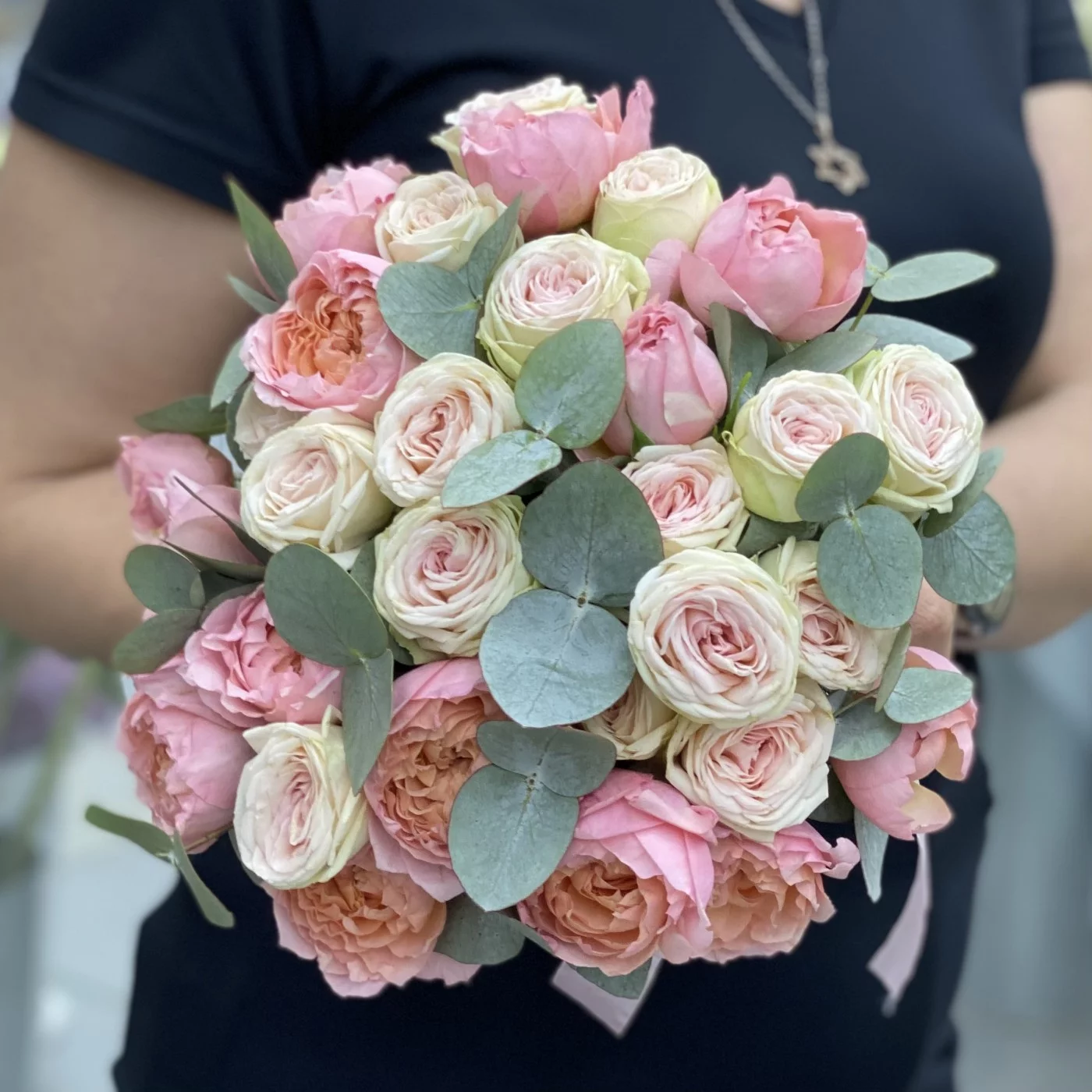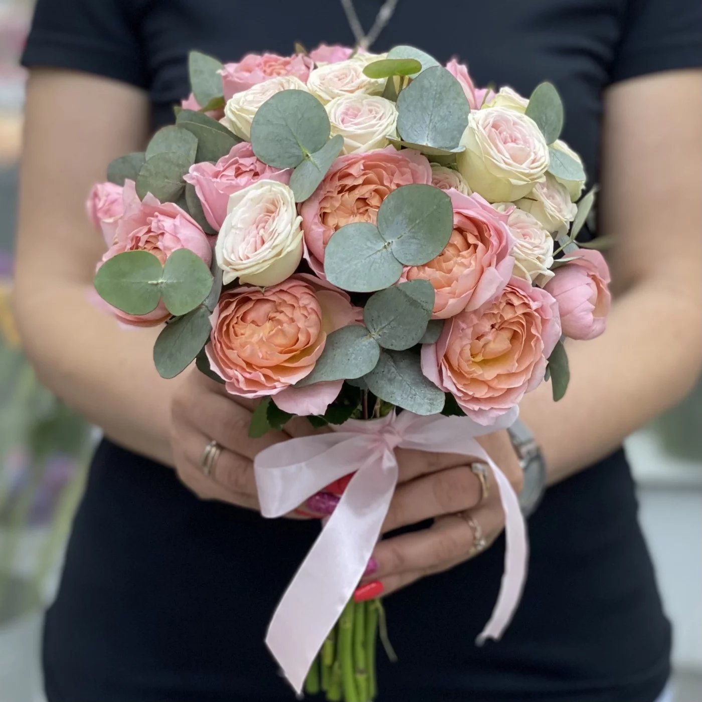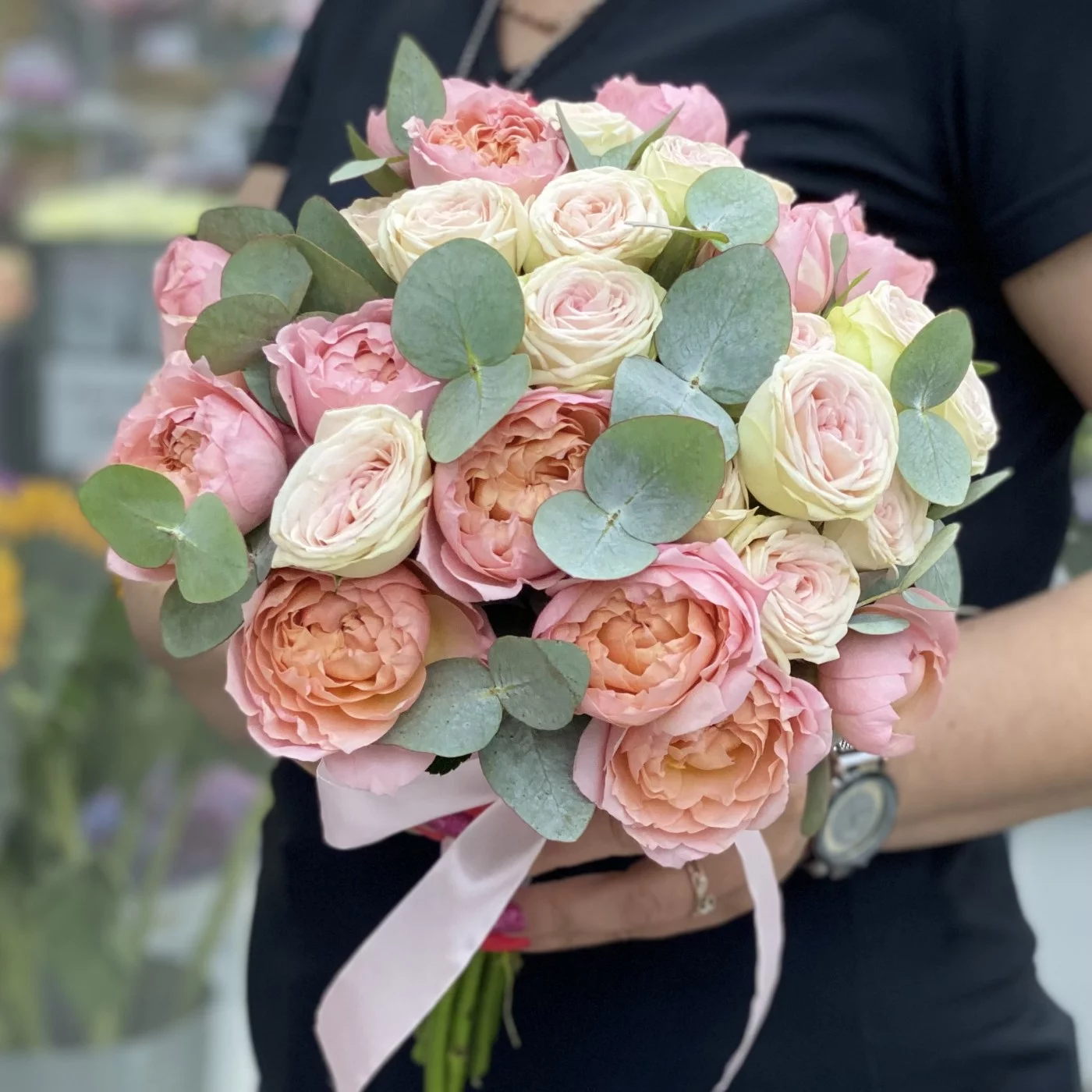 Букет невесты из кустовых пионовидных роз разного сорта. Такой букет будет изюминкой Вашего свадебного образа.