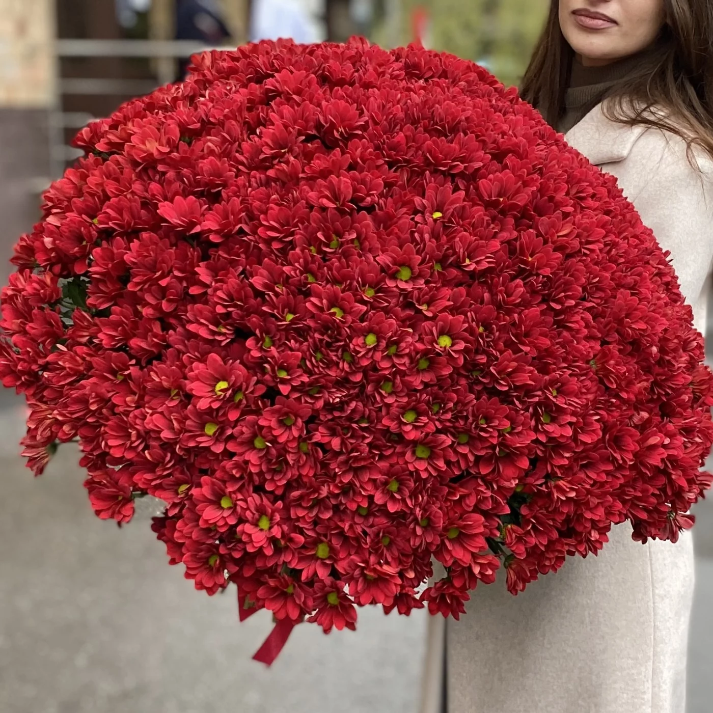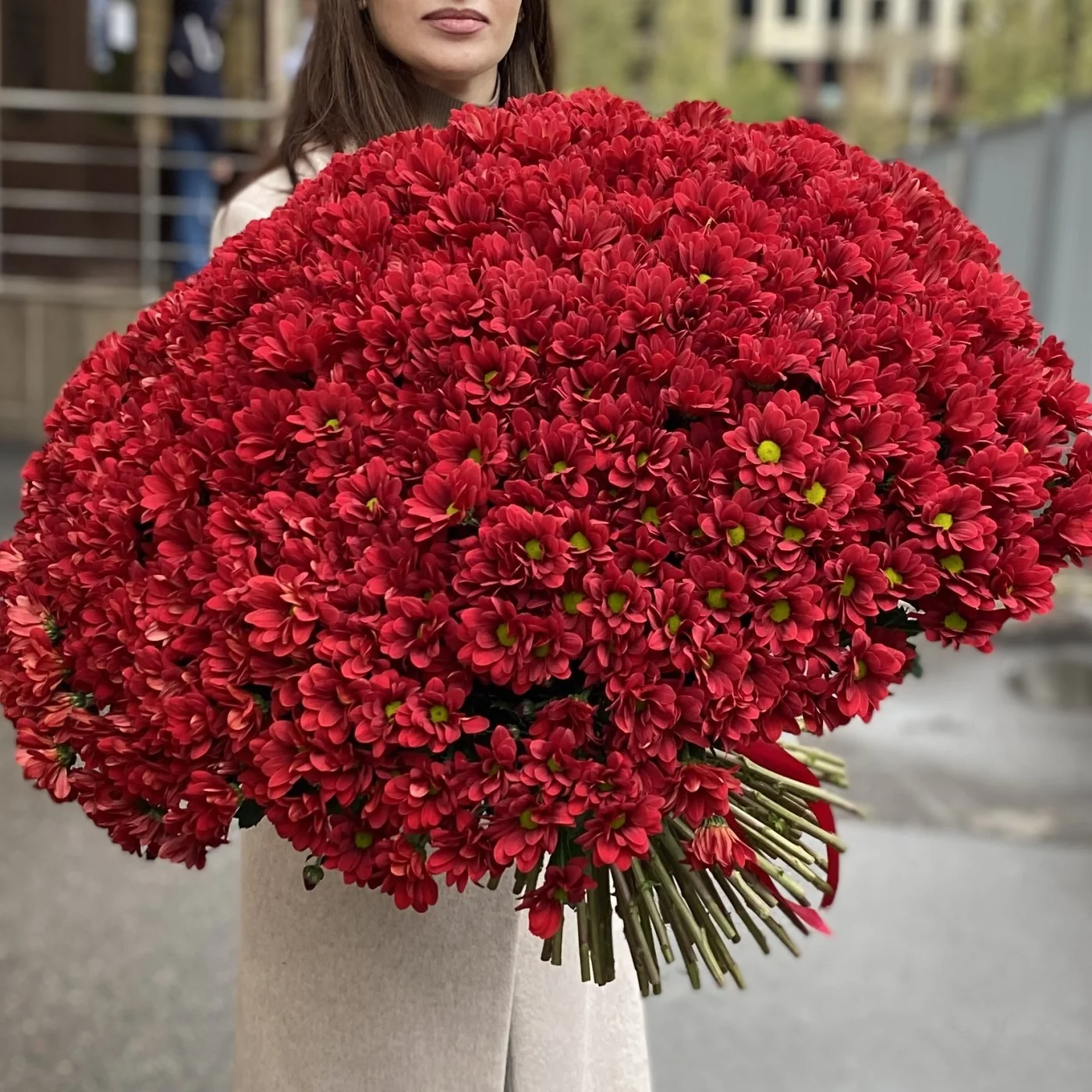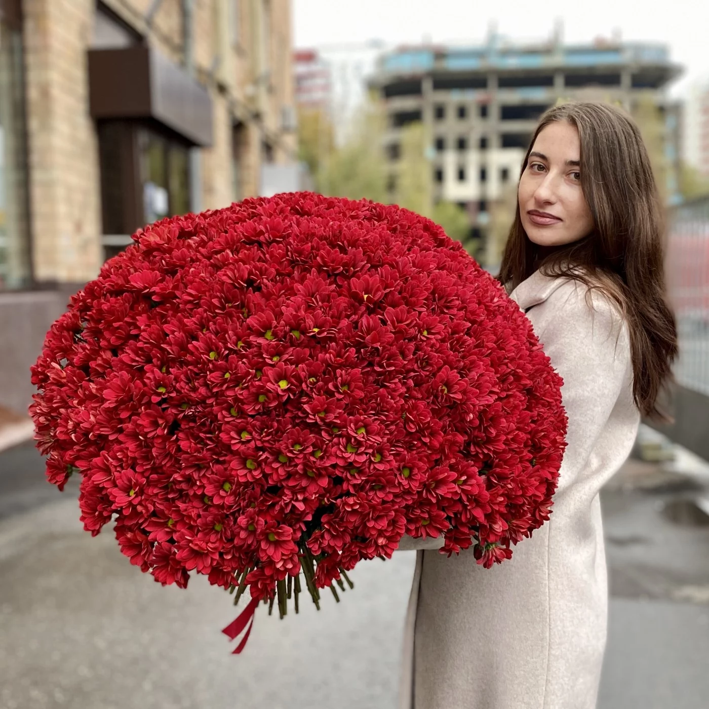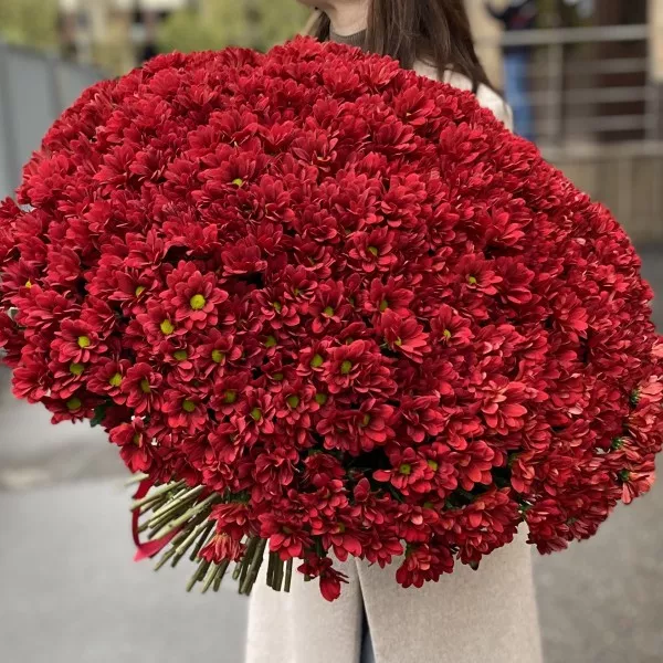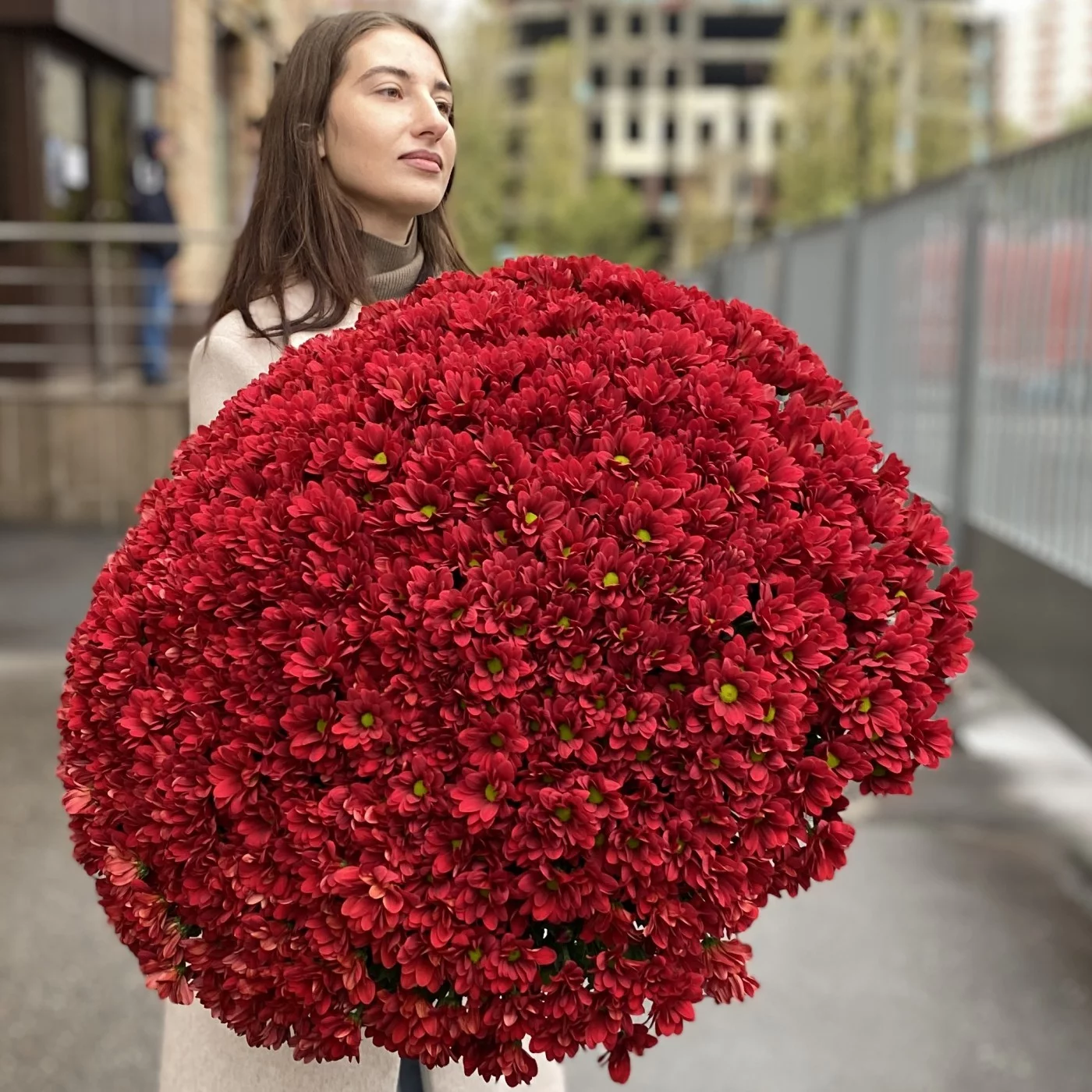 Яркий, большой букет из 101 хризантемы – это отличный вариант подарка девушке или женщине по любому поводу.