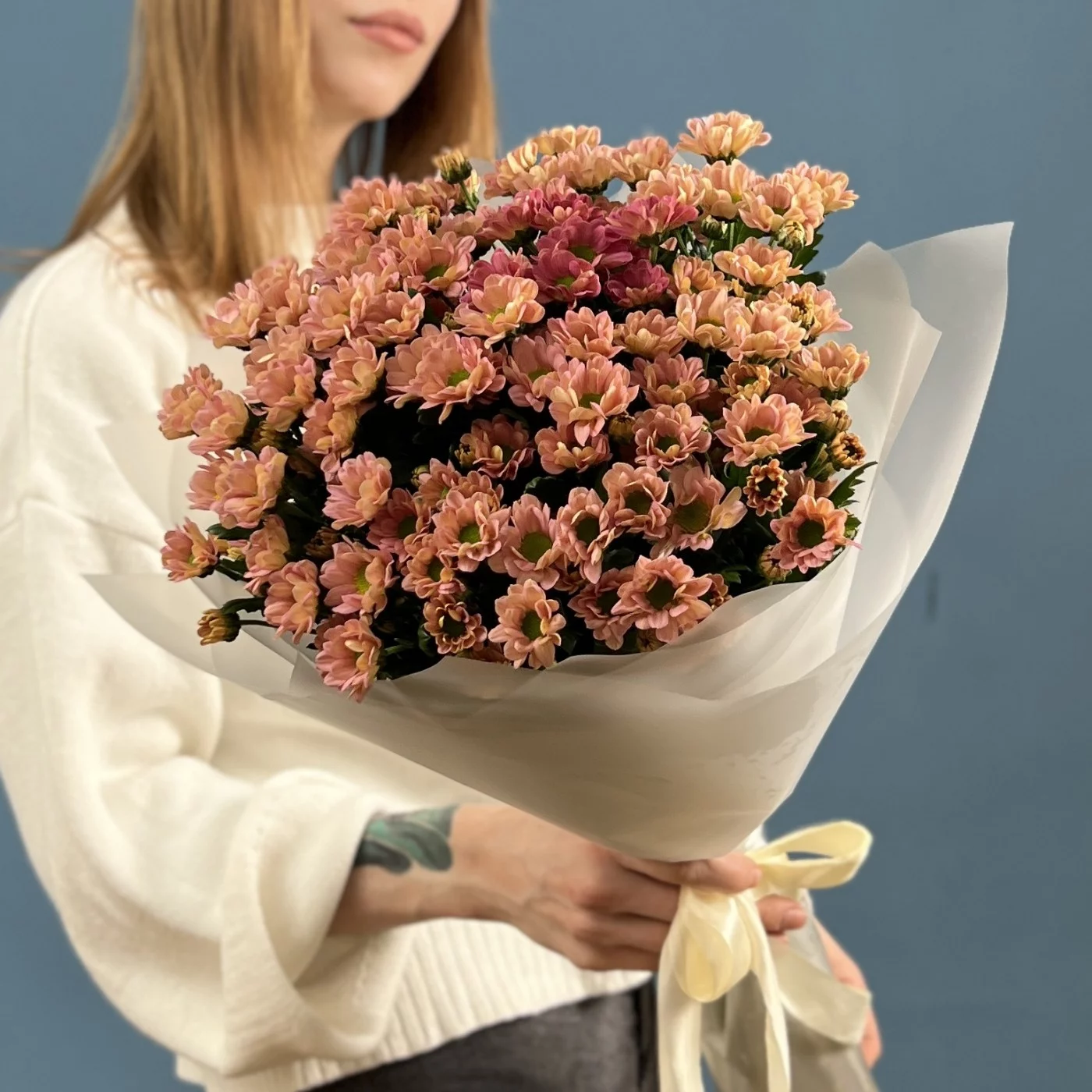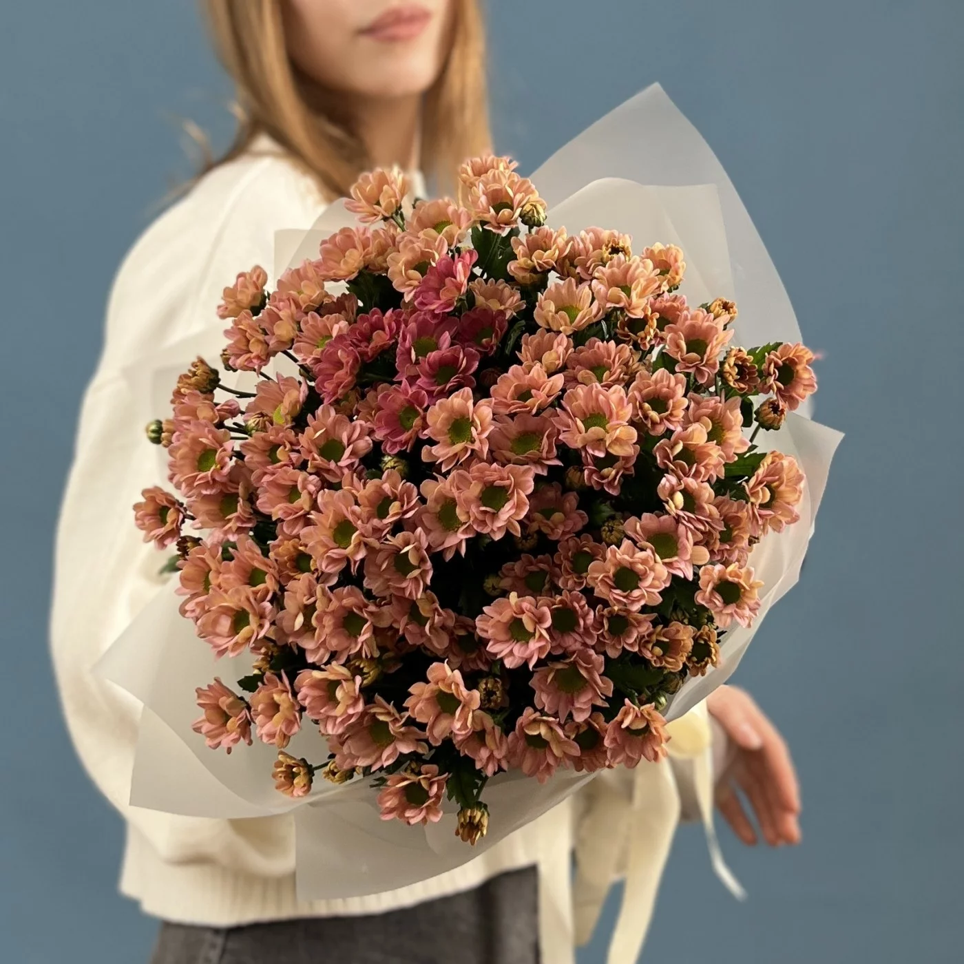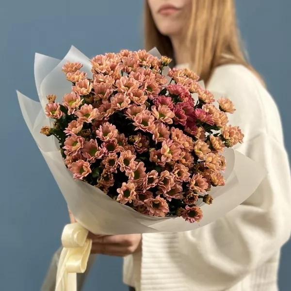 Букет из 11 лососевых хризантем Сантини — это элегантный и стильный подарок, который прекрасно подойдет для различных случаев.