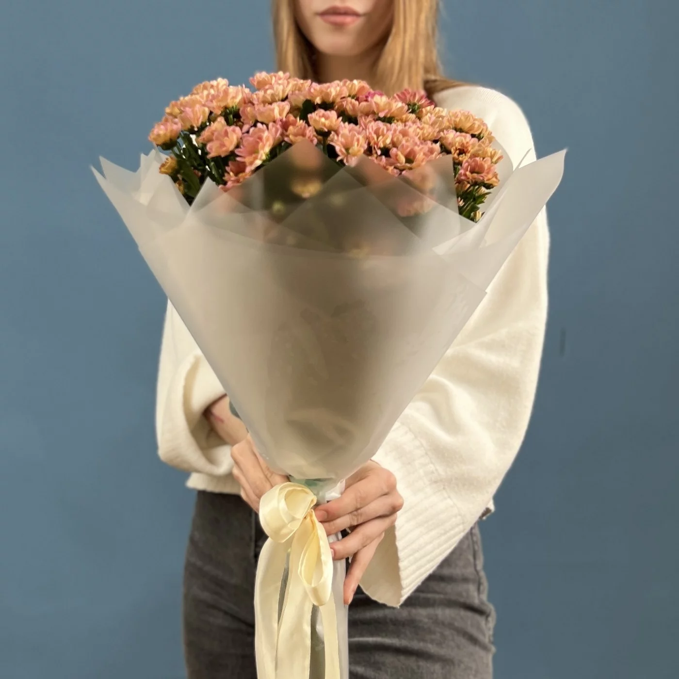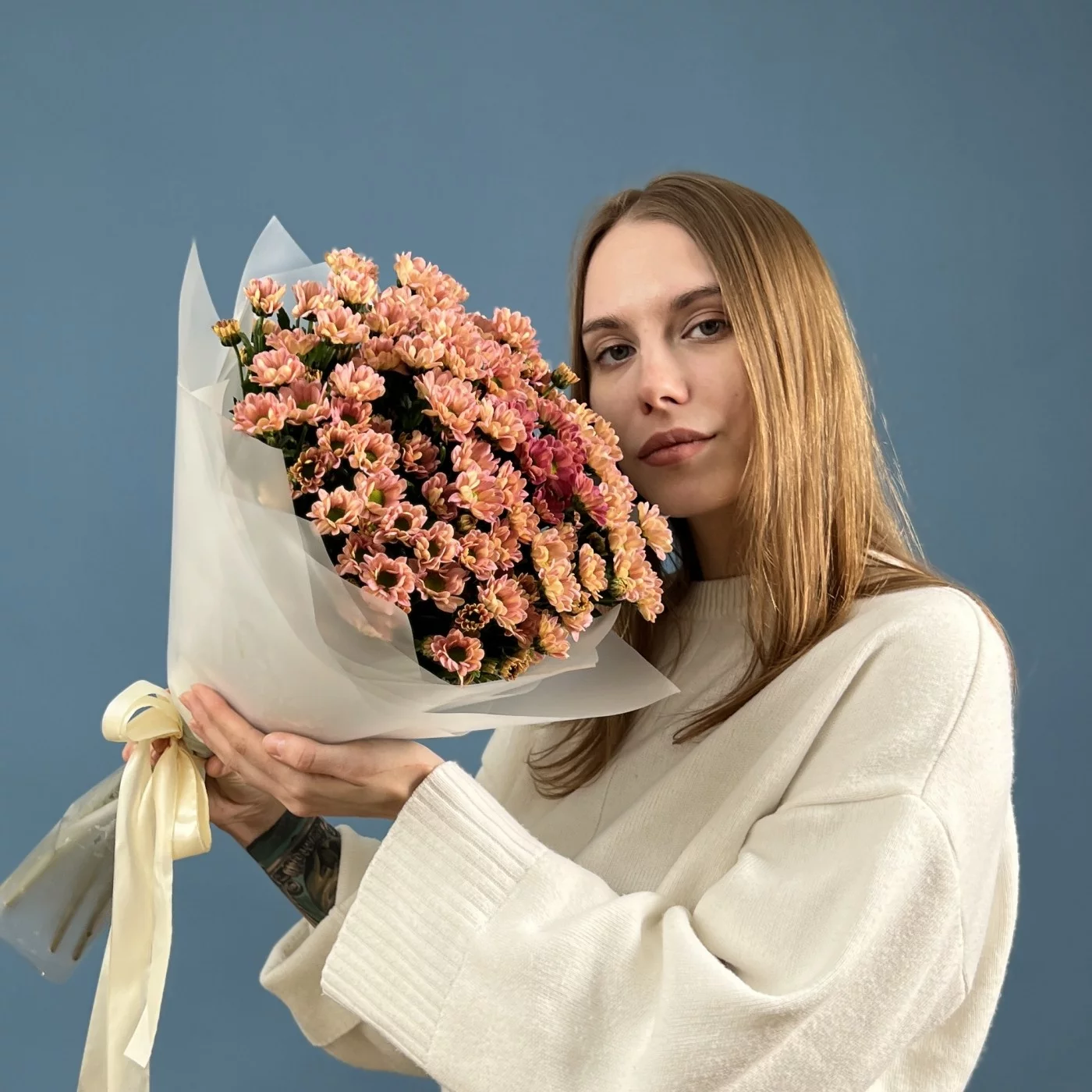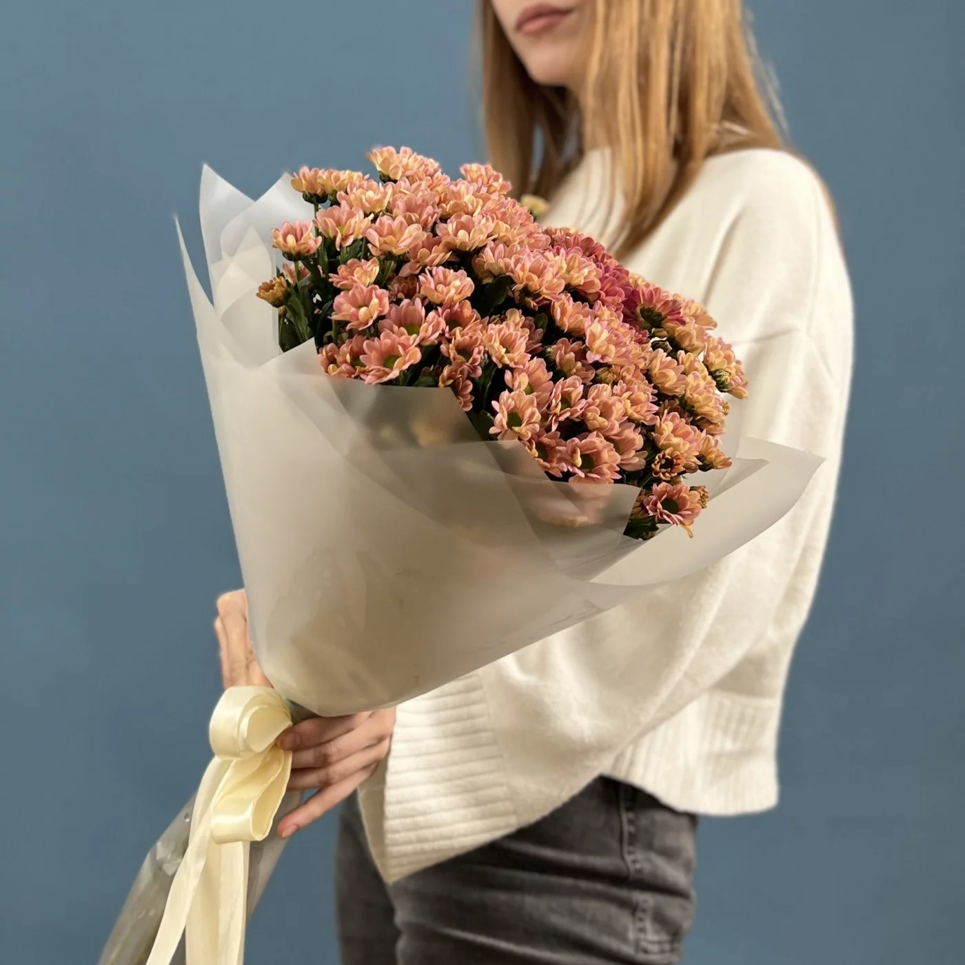 Букет из 11 лососевых хризантем Сантини — это элегантный и стильный подарок, который прекрасно подойдет для различных случаев.