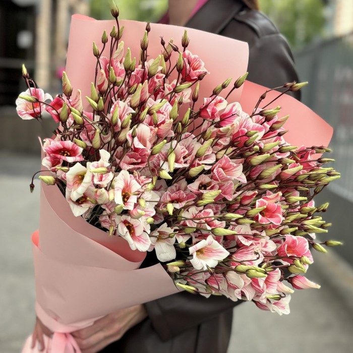 Букет из 15 бело-розовых крашеных эустом. Такой букет универсальный и отлично подойдет в качестве подарка для любимого человека.