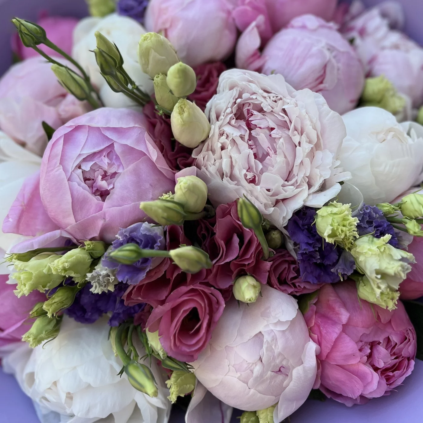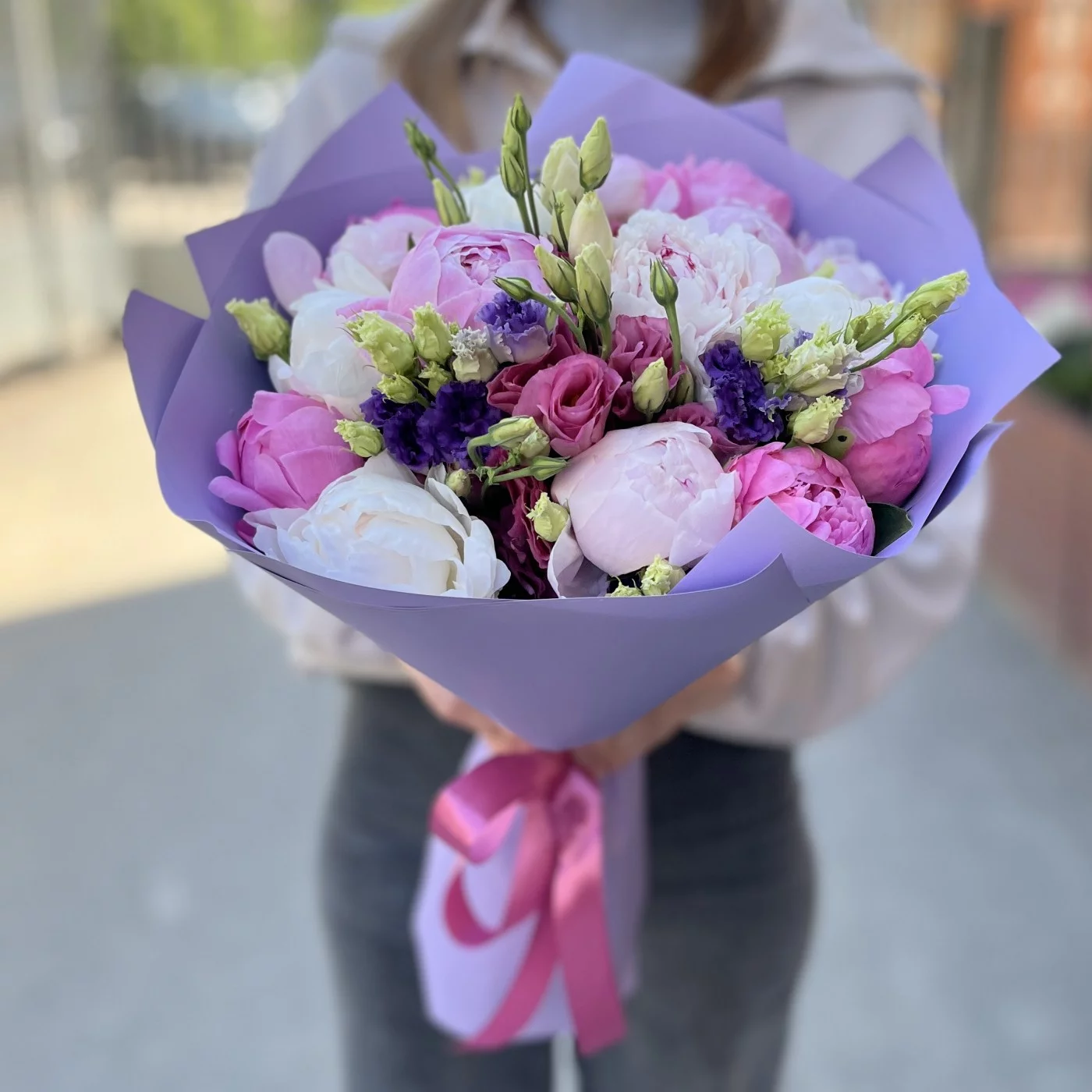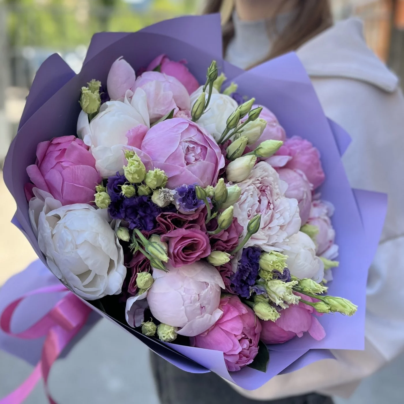 Букет из 15 нежных пионов и эустом MIX — это прекрасное сочетание, которое излучает элегантность и утонченность! Нежные пионы с их мягкими оттенками и пышными бутонами символизируют любовь и романтику, создавая атмосферу тепла и уюта. Их великолепные формы добавляют объема и шарма, делая букет поистине впечатляющим.