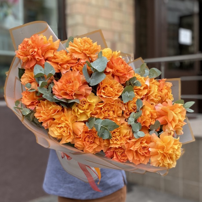 Наш интернет-магазин предлагает круглосуточную доставку по Москве и Московской области, гарантируя, что ваш подарок всегда будет доставлен вовремя и в идеальном состоянии. Мы всегда отправляем фото букета до доставки, чтобы вы могли убедиться в его качестве и красоте. По вашему желанию, букет может быть выполнен из любого количества роз, адаптируясь к вашим предпочтениям и бюджету. Подарите своим близким радость и яркие эмоции с этим великолепным букетом из роз Фри Спирит и эвкалипта!| Писташ | 15 |