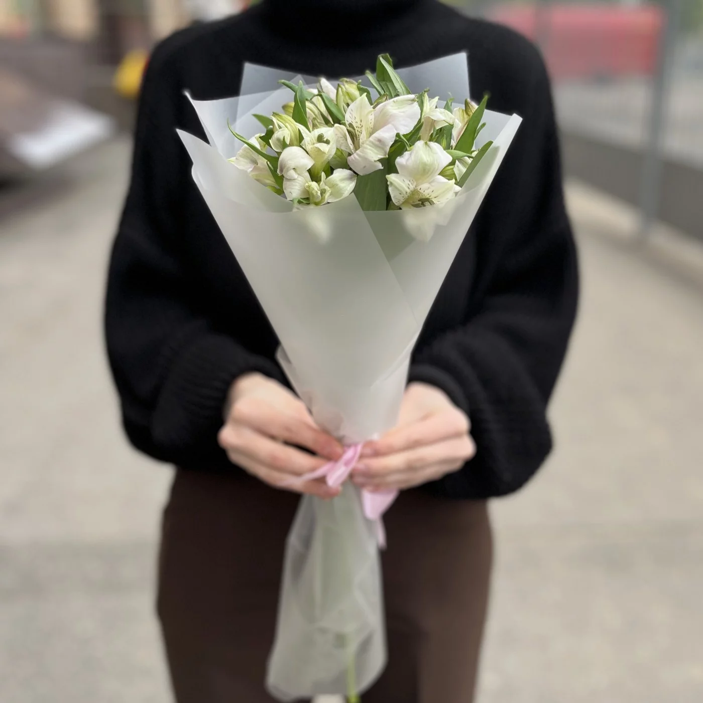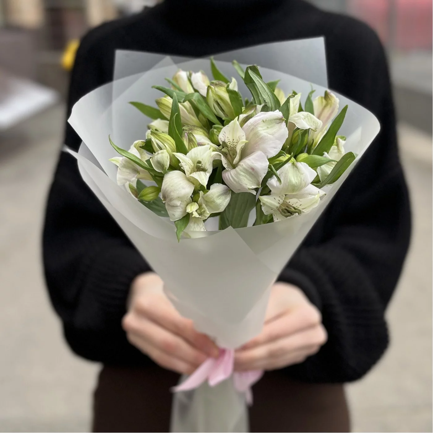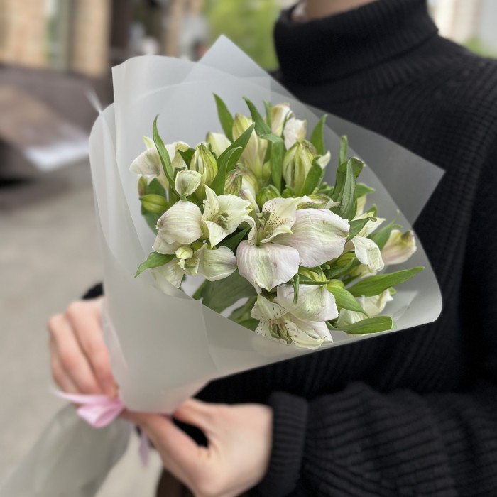 Этот изысканный букет из пяти бело-фиолетовых альстромерий станет идеальным подарком для любого случая. Нежные цветы символизируют дружбу и преданность, наполняя пространство гармонией и красотой. Подарите радость и свет своим близким с этим великолепным букетом!