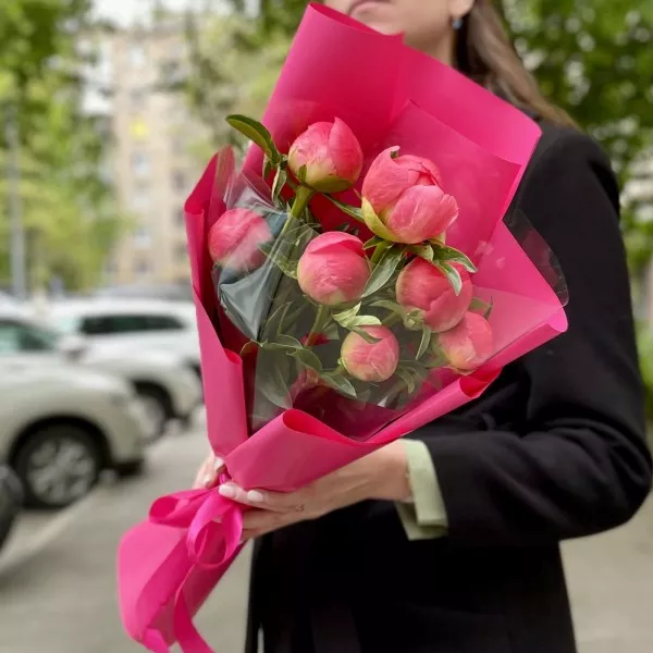 Яркие, необычные пионы кораллового цвета. Получить букет восхитительных пионов мечтает каждая девушка.