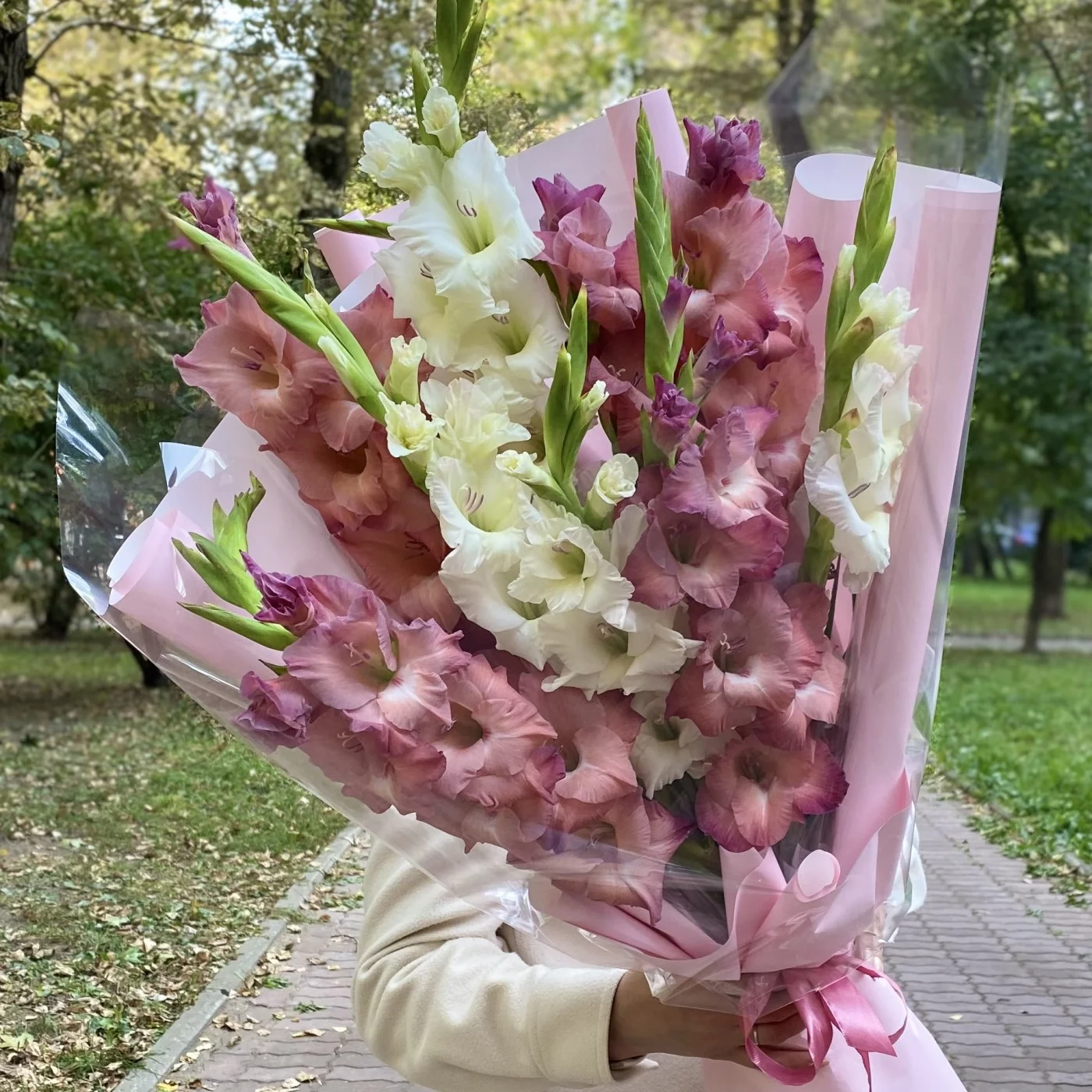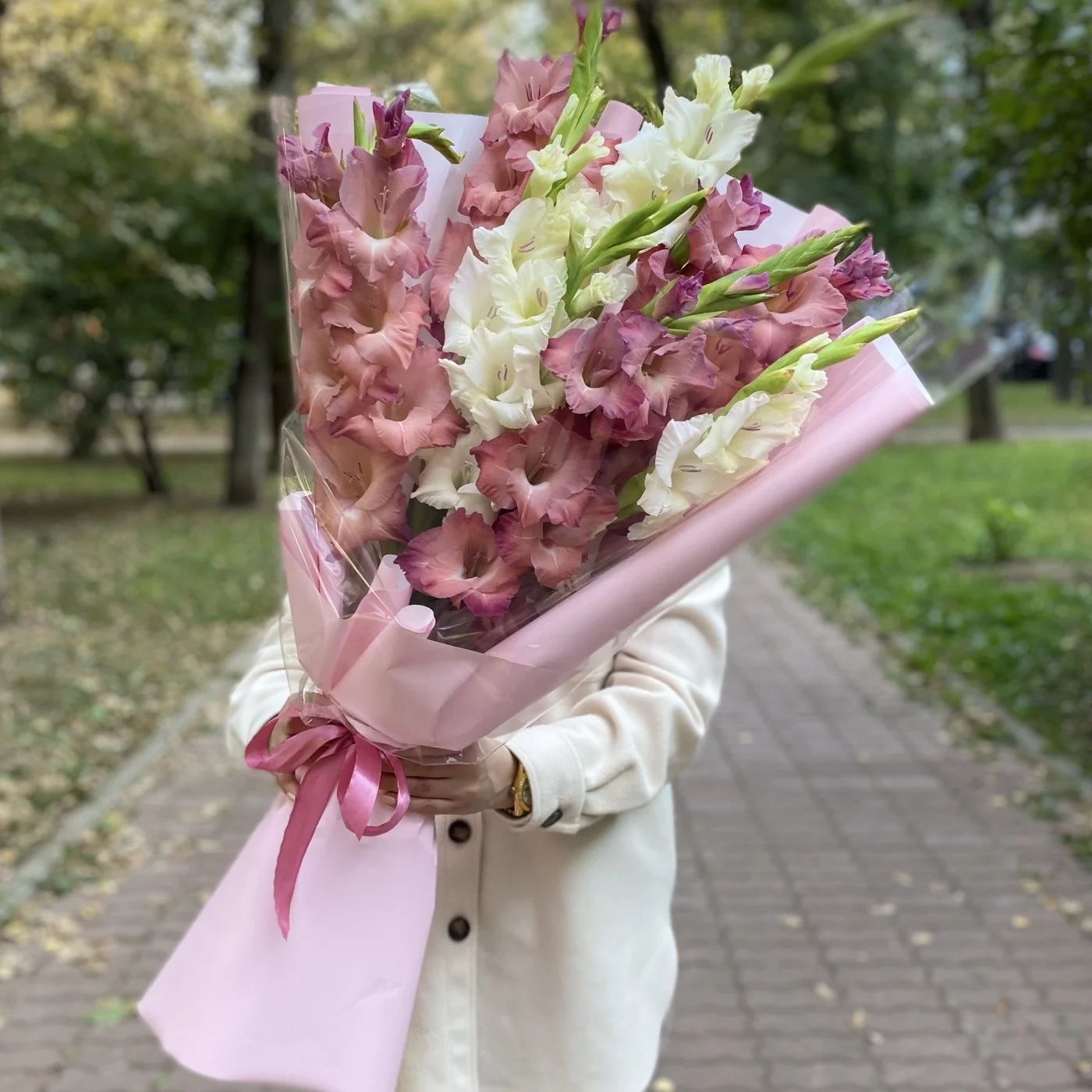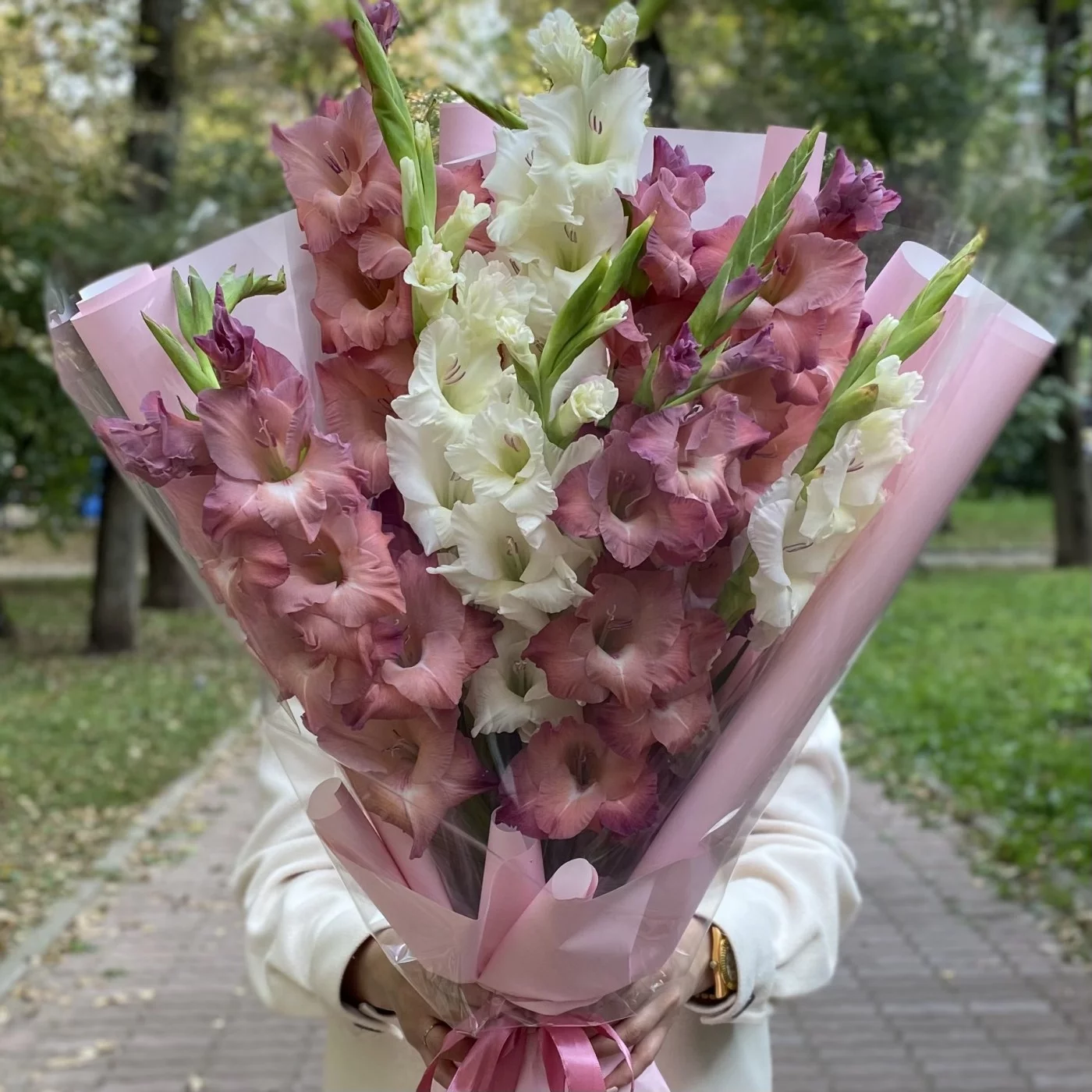 Букет с гладиолусами не оставит равнодушными ни кого. Гладиолусы уместно преподнести в качестве подарка уважаемому коллеге, партнеру по бизнесу.