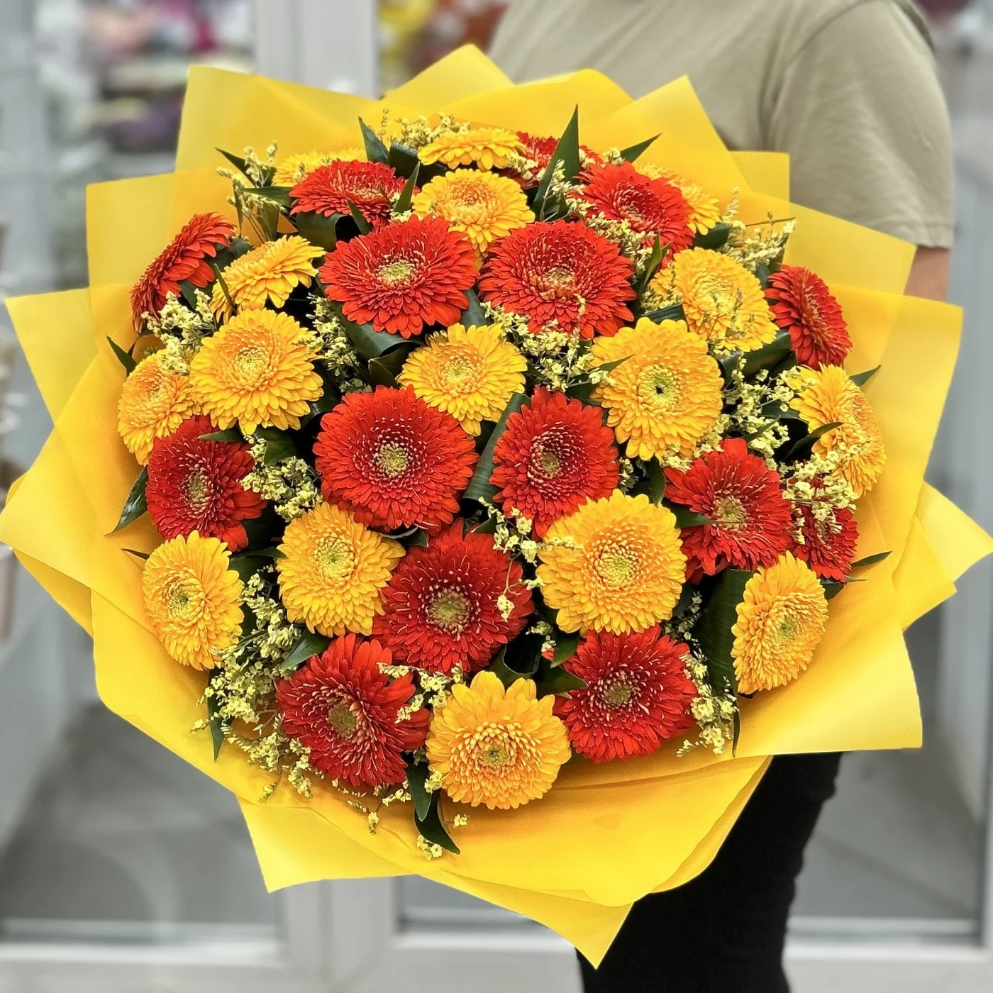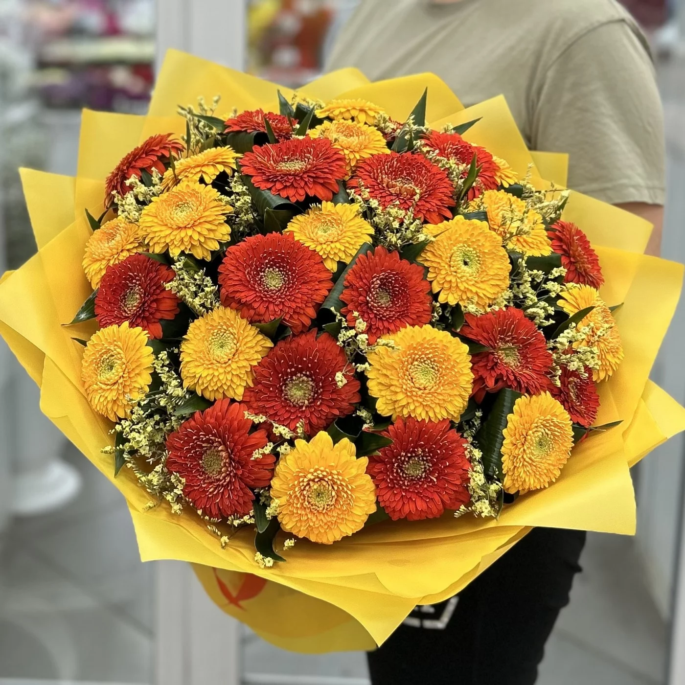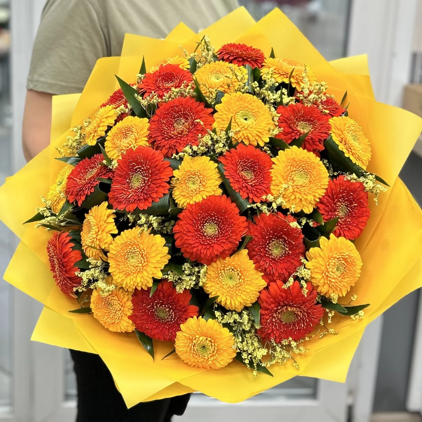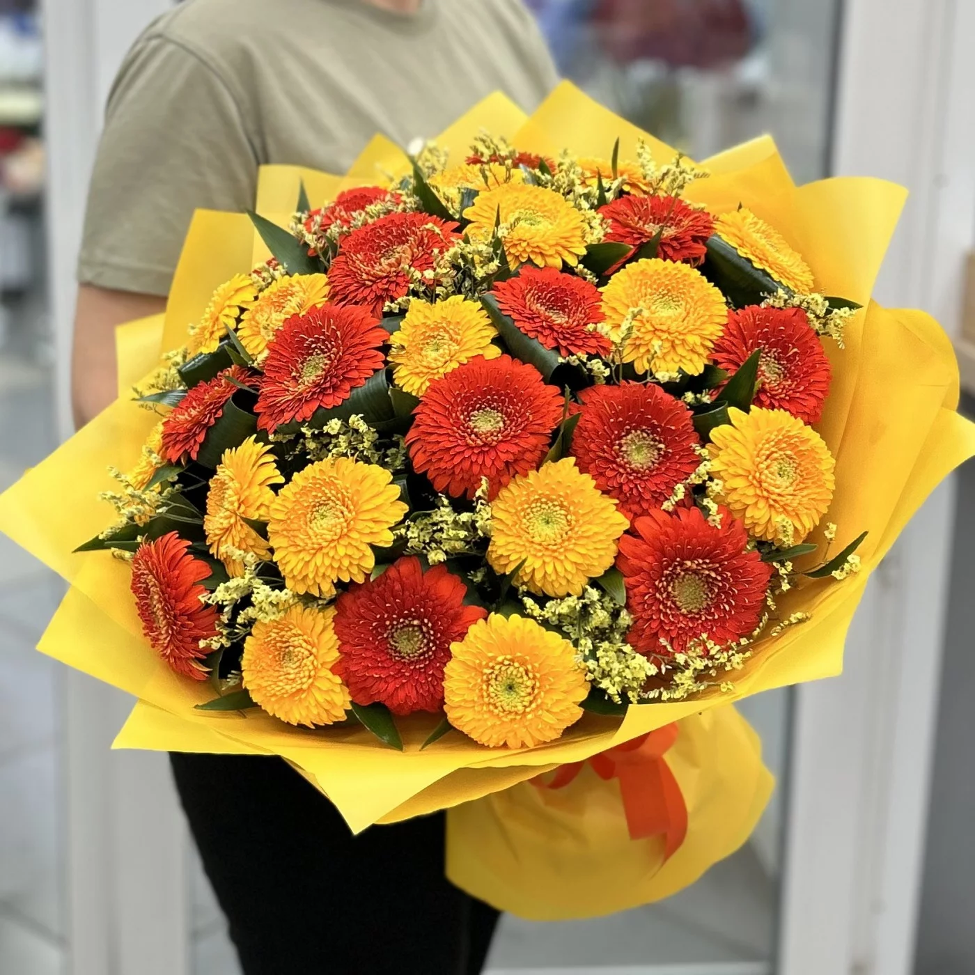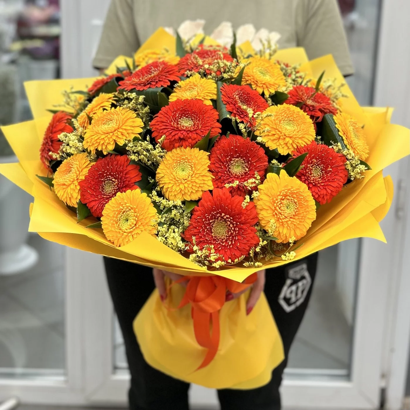 Букет из оранжевых и желтых гербер — это яркое и жизнерадостное сочетание, которое несёт в себе тепло и позитив! Эти цветы, с их насыщенными цветами, символизируют радость, оптимизм и дружбу, что делает их идеальными для любого повода.