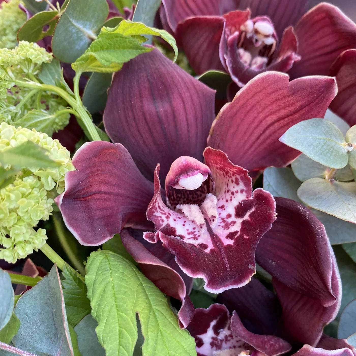 Букет из орхидей и вибурнума