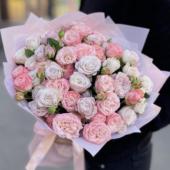Букет кустовых пионовидных роз Энджел Бомбастик и Мадам Бомбастик