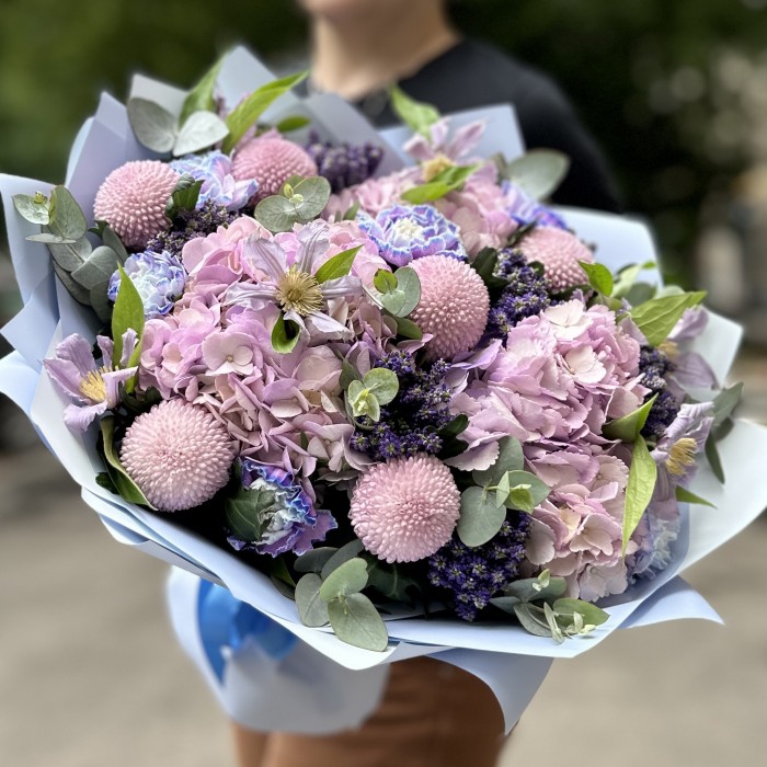 Сборный букет Лесная Нимфа в нежном, лавандовом оттенкке. Преподнесите такой букет в качестве презента своим дорогим и любимым людям.