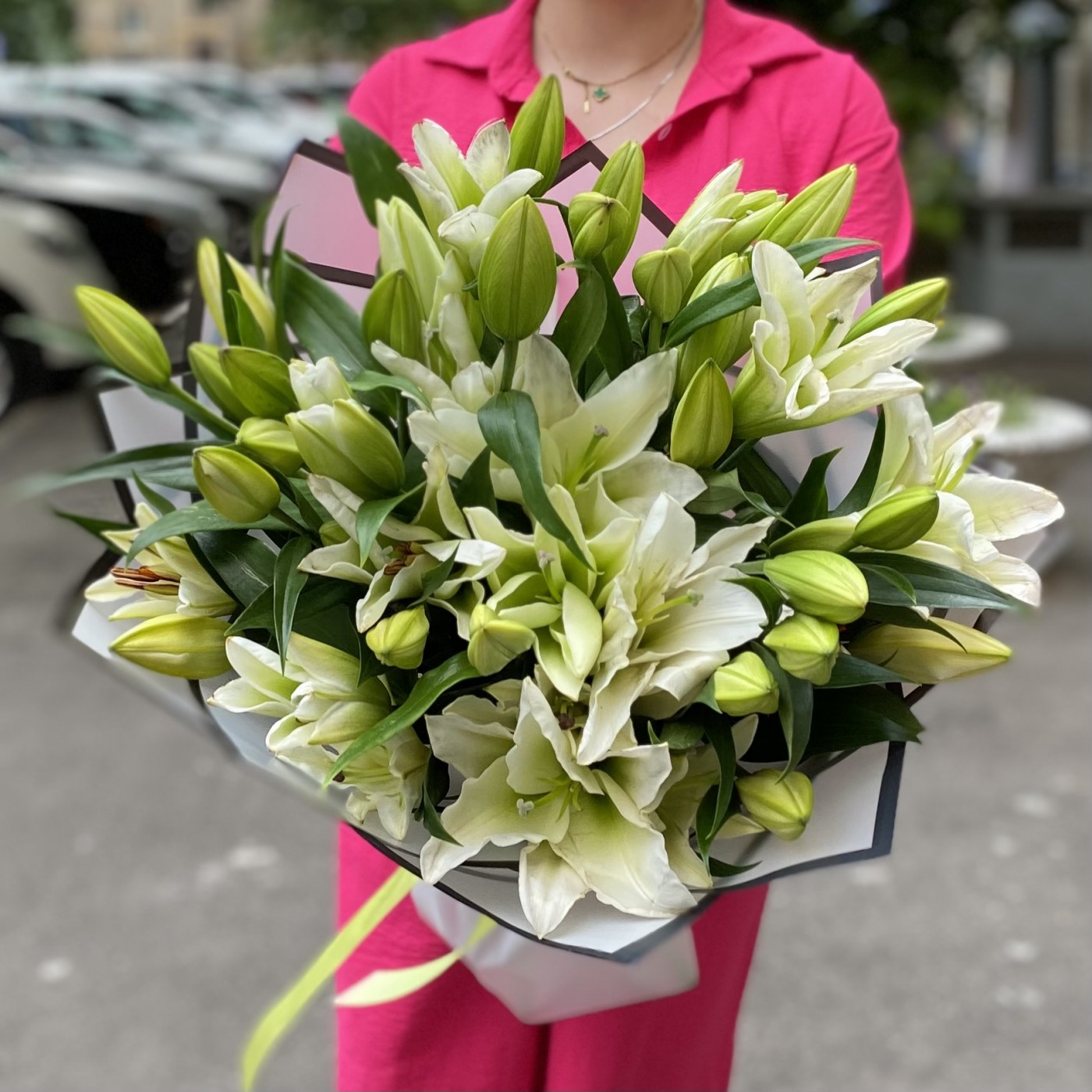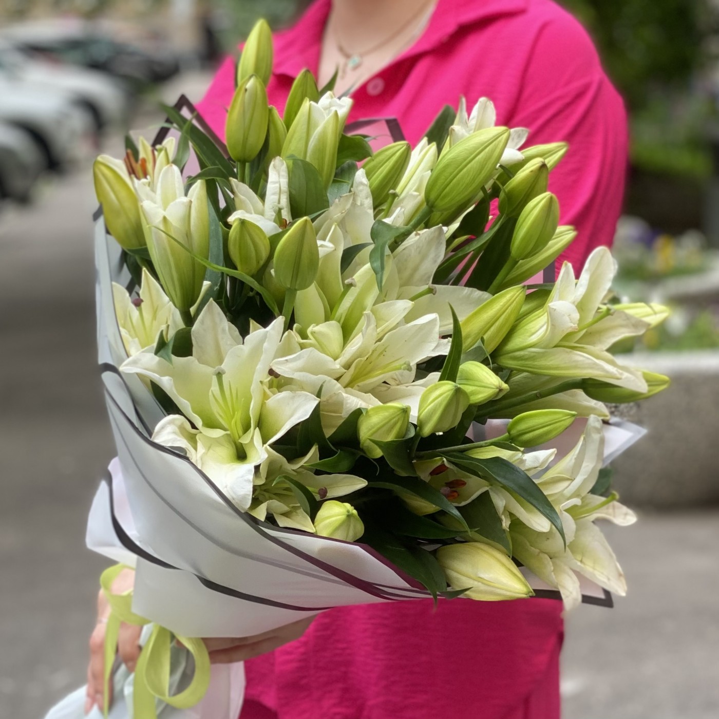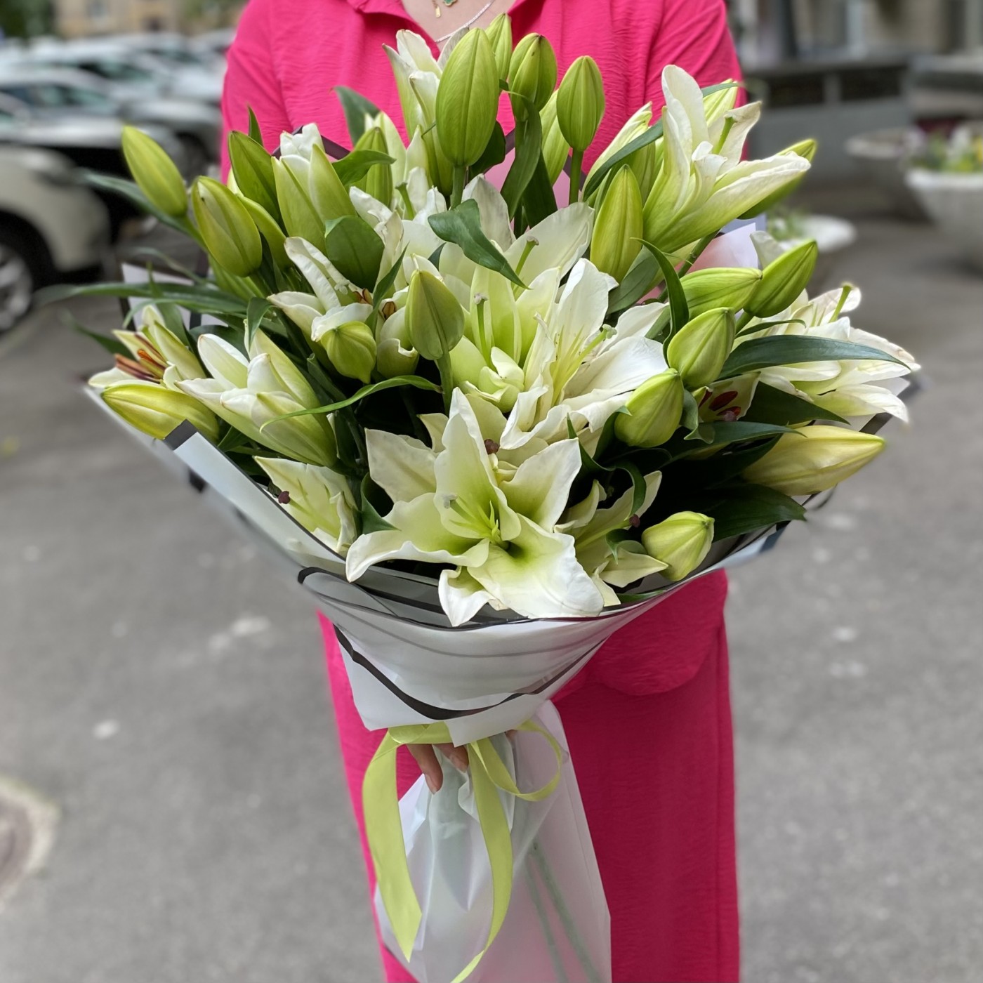 Заказала 2 букета, маме на юбилей. Букеты шикарные. Лилии крупные. Аромат потрясающий!!!