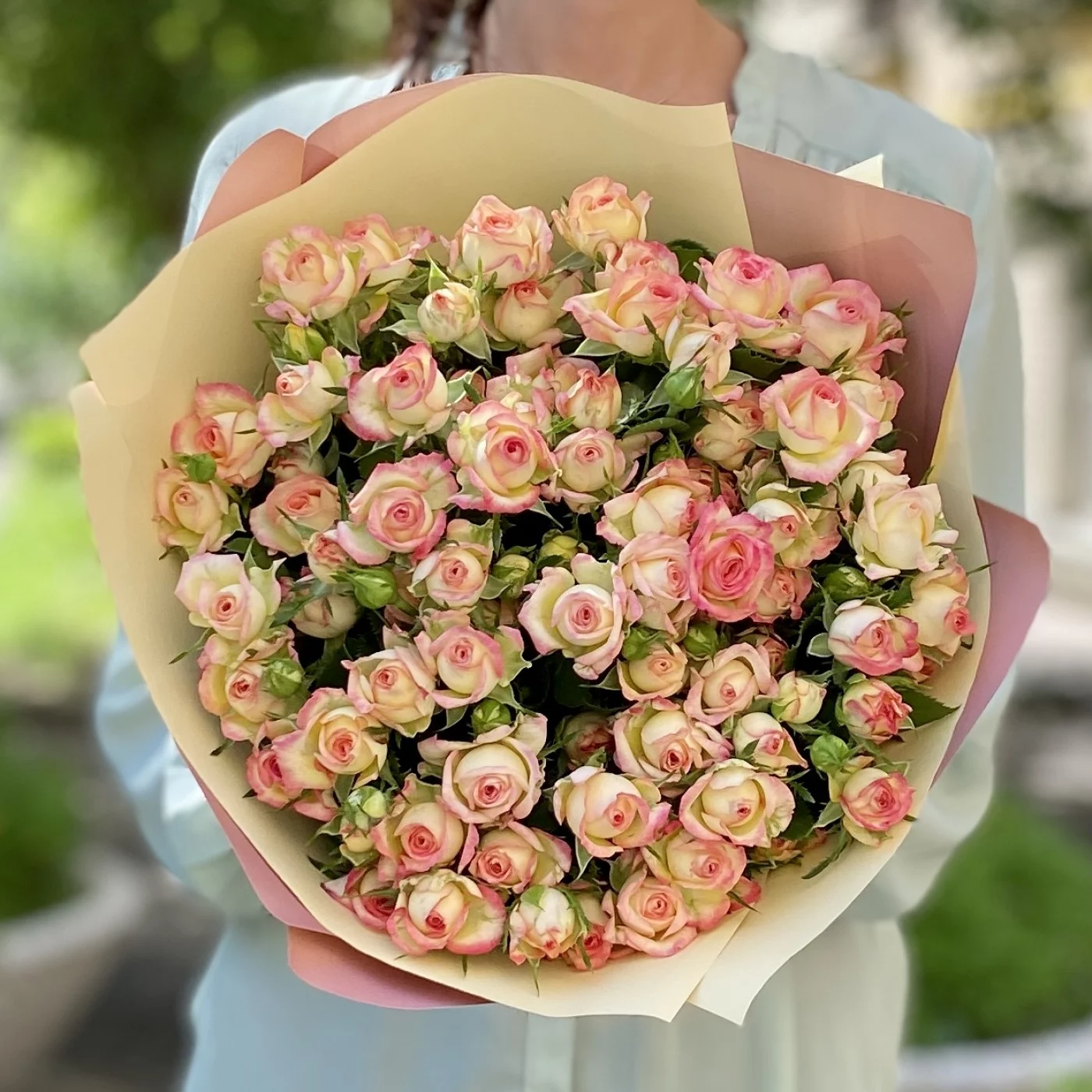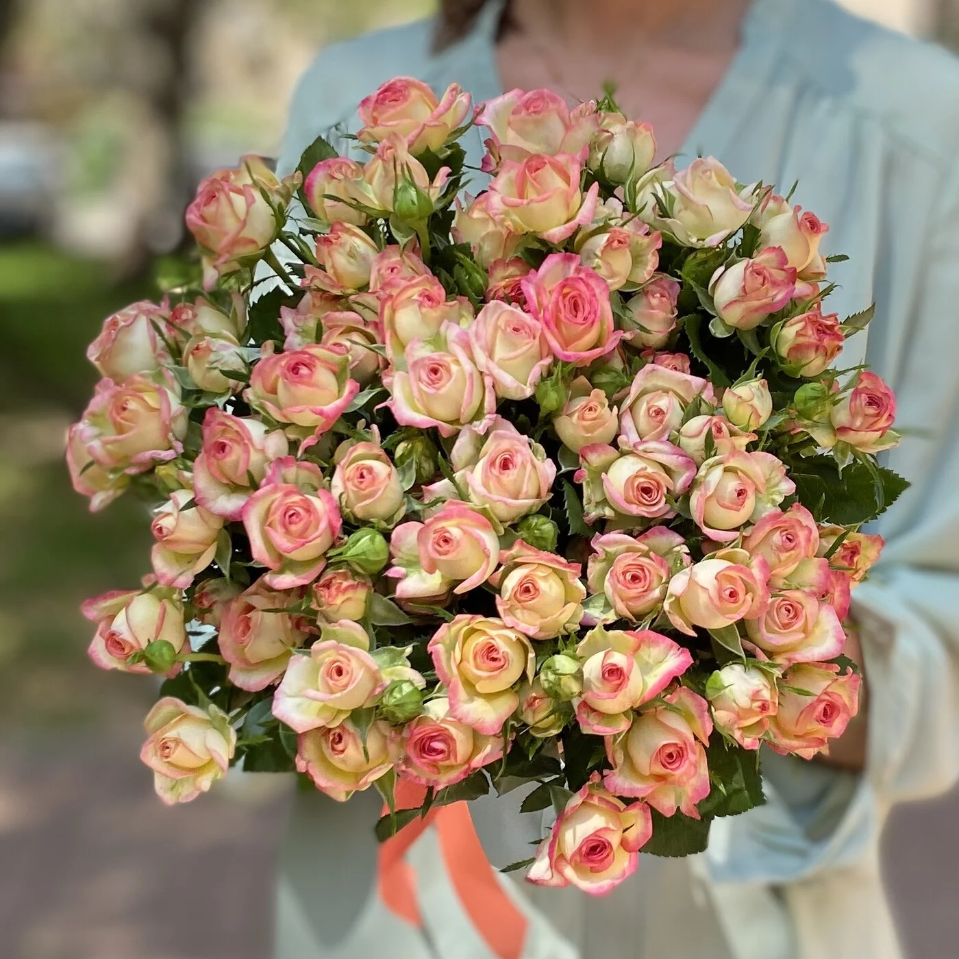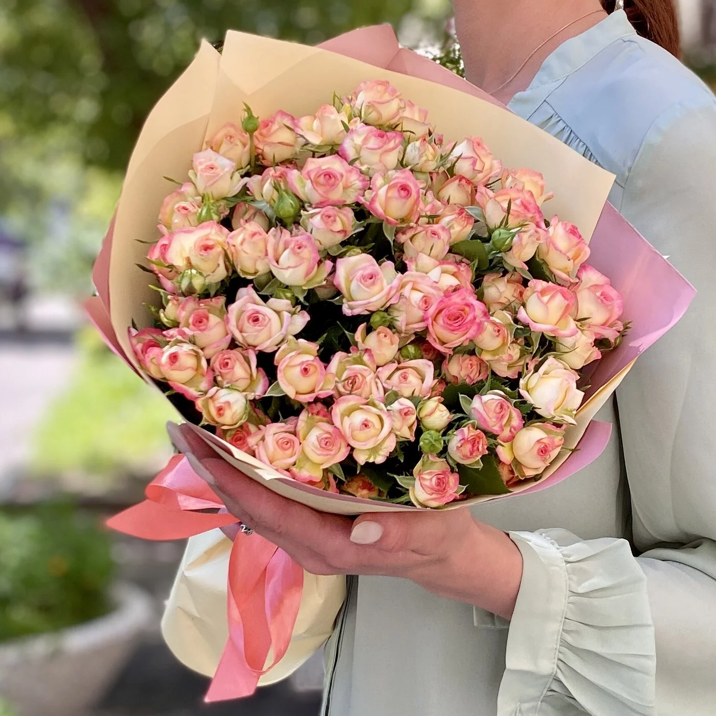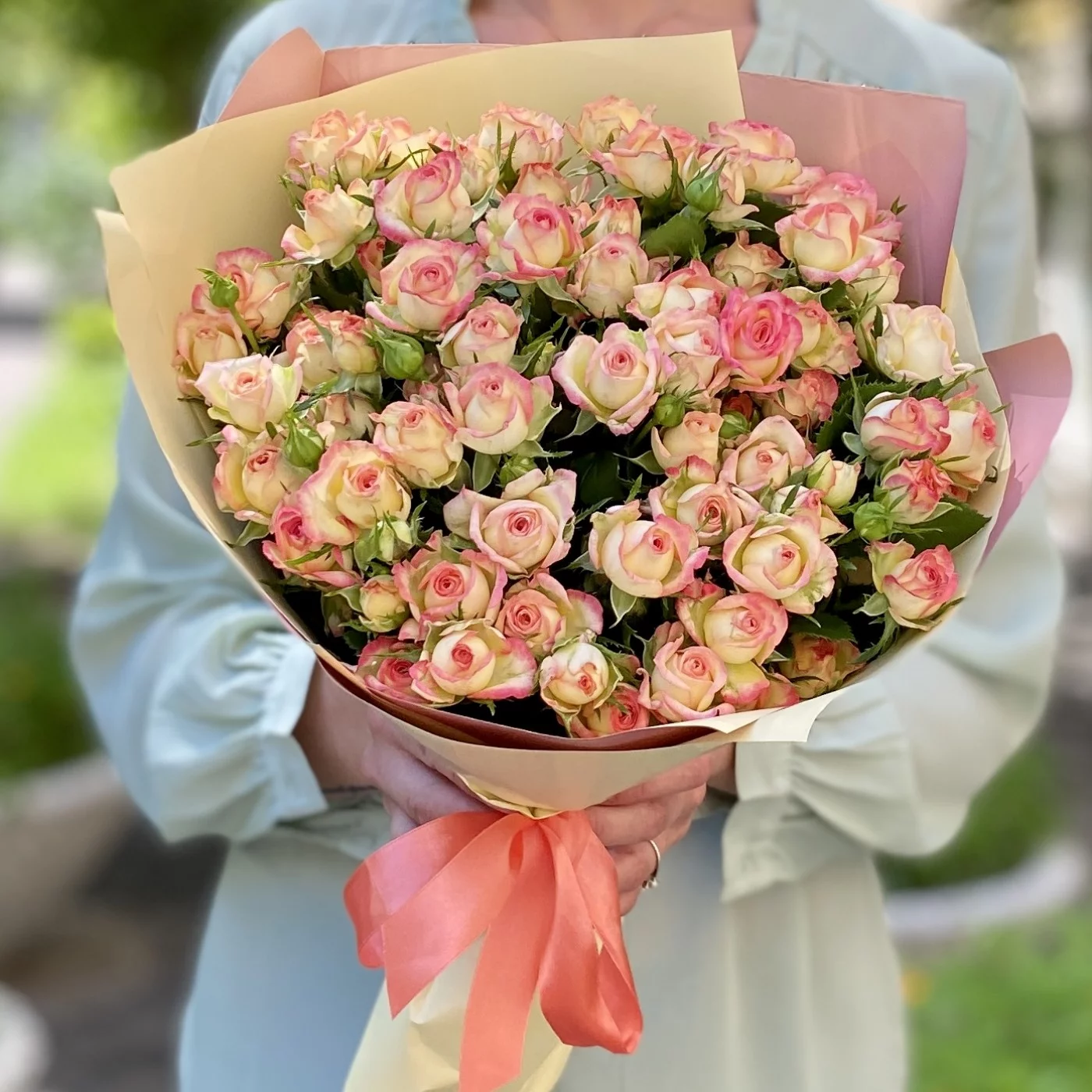 Необычная двухцветная кустовая роза порадует получателя свой оригинальностью и пышностью стеблей. Купить букет из кустовых роз можно в подарок самым родным и близким. Такой подарок принято дарить родителям, а также дорогим вашему сердцу людям, которых вы по-настоящему, цените и глубоко уважаете.
