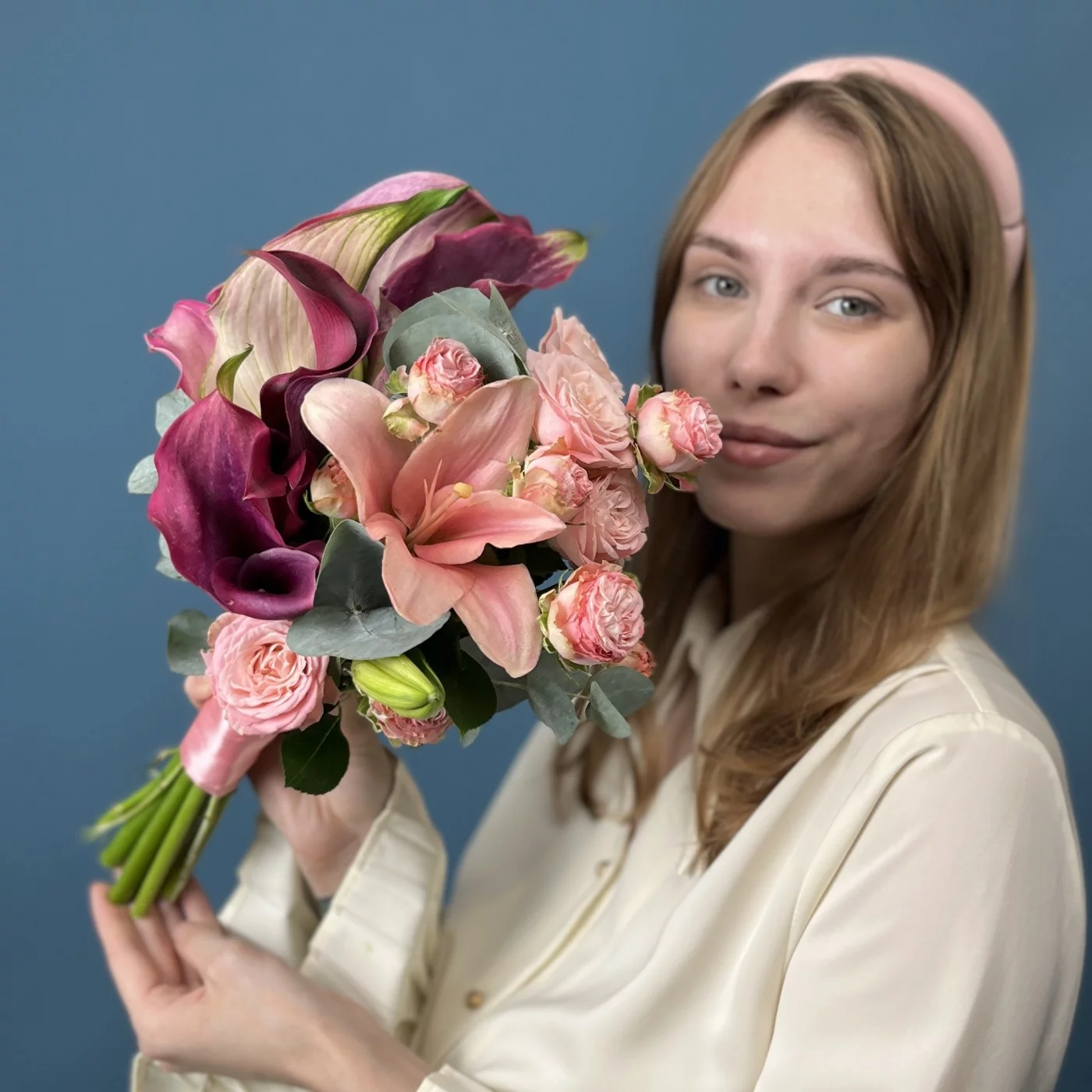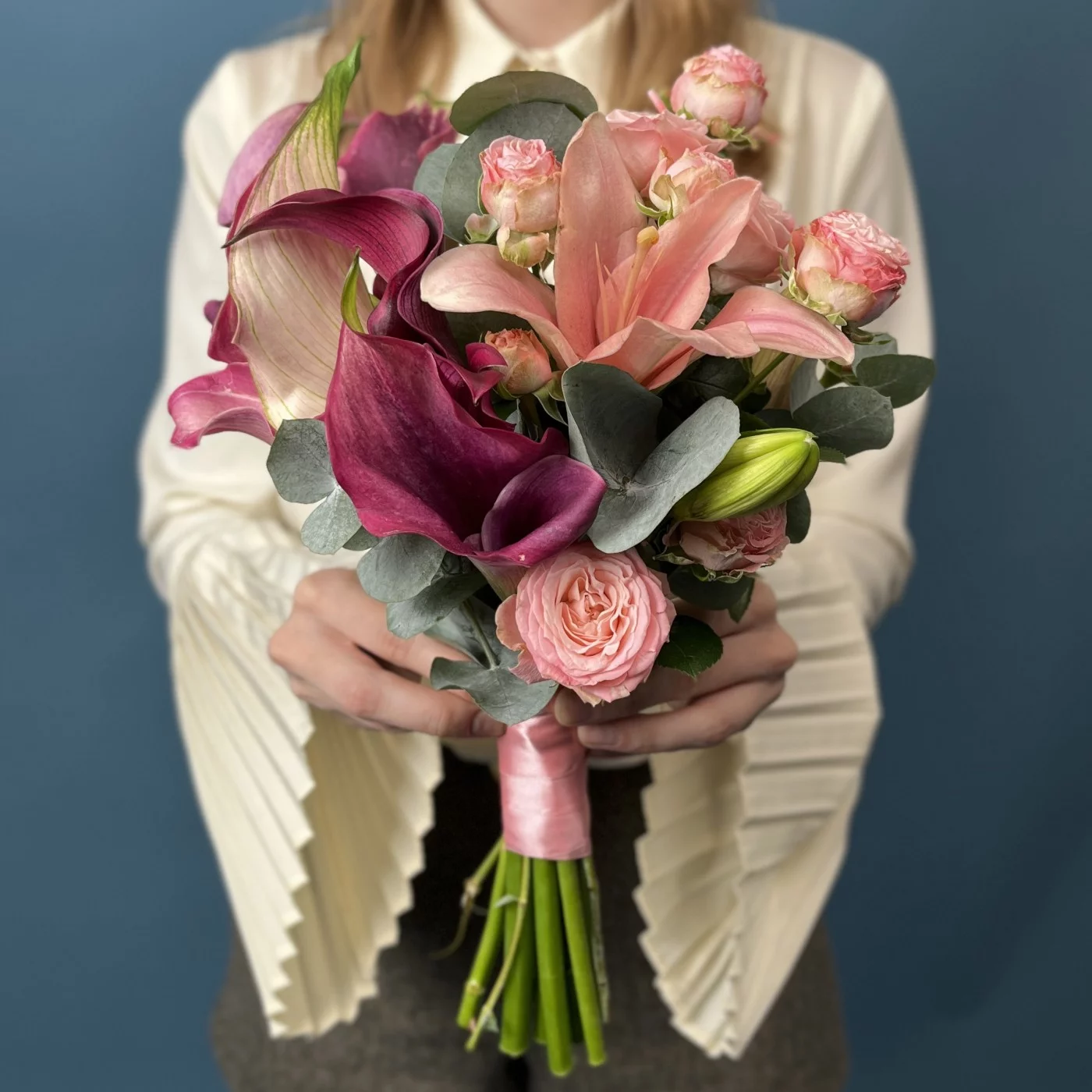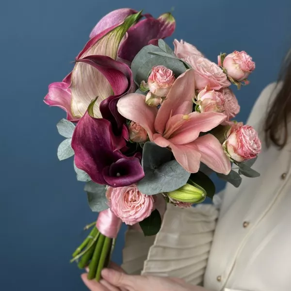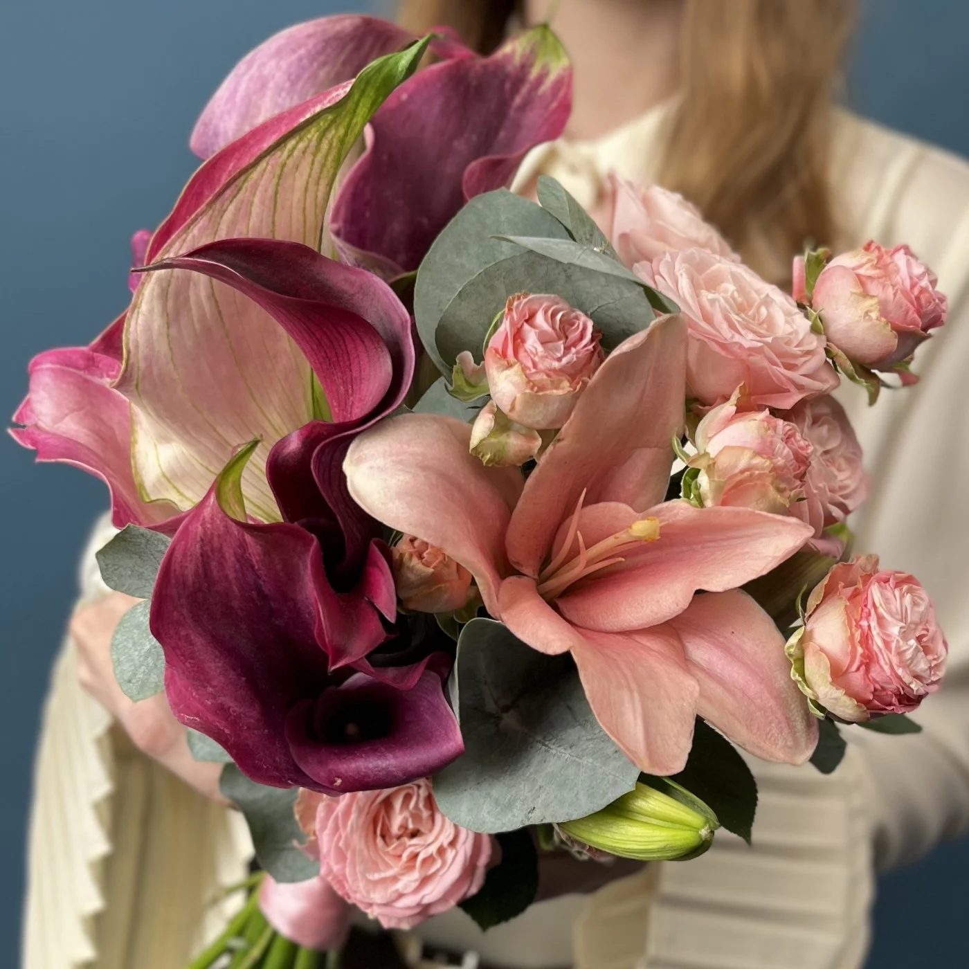 Букет невесты Гуччи — это элегантный и стильный букет, который подчеркнет изысканность и утонченность свадебного образа. Розовые лилии придают букету романтичность и нежность, кустовые розы добавляют пышности и мягкости, а каллы вносят нотки изящества и благородства. Такой букет станет ярким акцентом в вашем свадебном стиле, создаст атмосферу красоты и гармонии, а его насыщенные оттенки подчеркнут особенность этого важного дня.