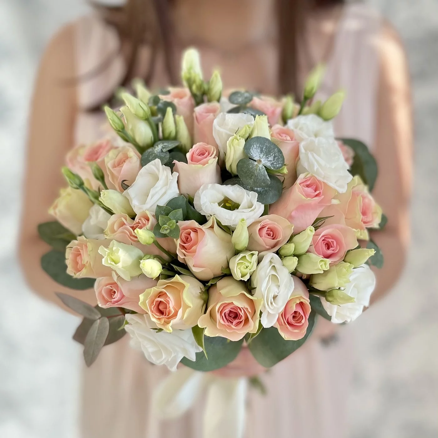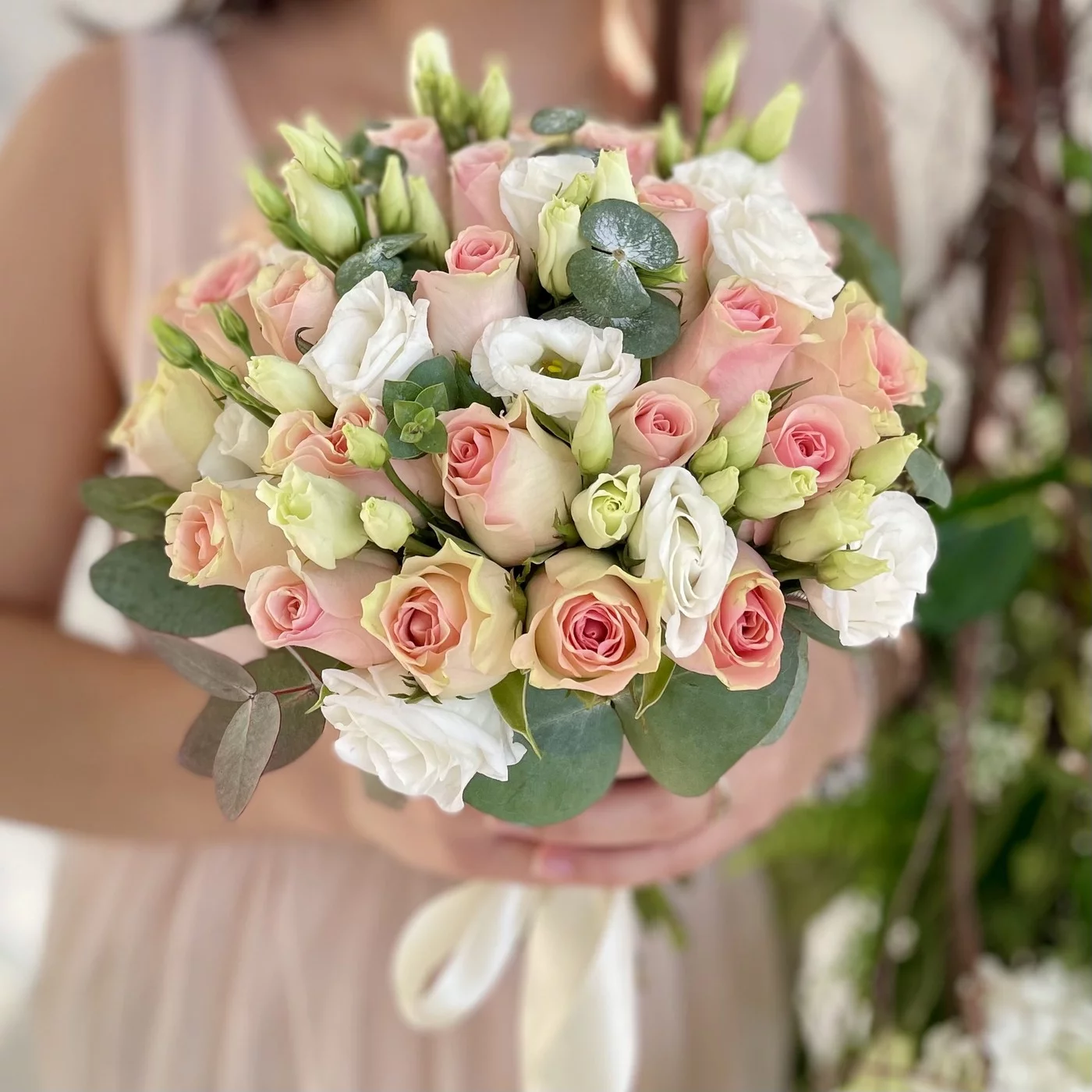 Букет невесты принцесса. Простой, но очень нежный букет который порадует вас и ваших гостей. Нежная цветовая гамма прекрасно подходит к образу невесты. Отдельно вы можете заказать бутоньерку для жениха в стиль букета.