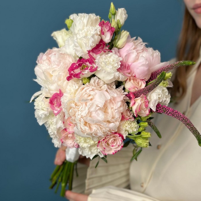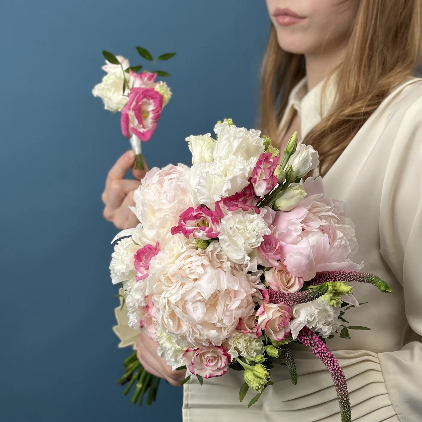Букет невесты Нежность с пионами — это изысканная и романтичная композиция, которая подчеркнет утонченность и женственность свадебного образа. Пионы в этом букете отличаются своей пышностью, мягкими оттенками и нежным ароматом, создавая атмосферу тепла и любви. Такой букет идеально подойдет для романтической свадьбы, придаст образу невесты особую элегантность и шарм.