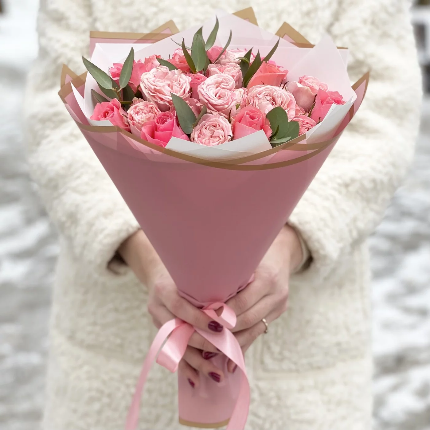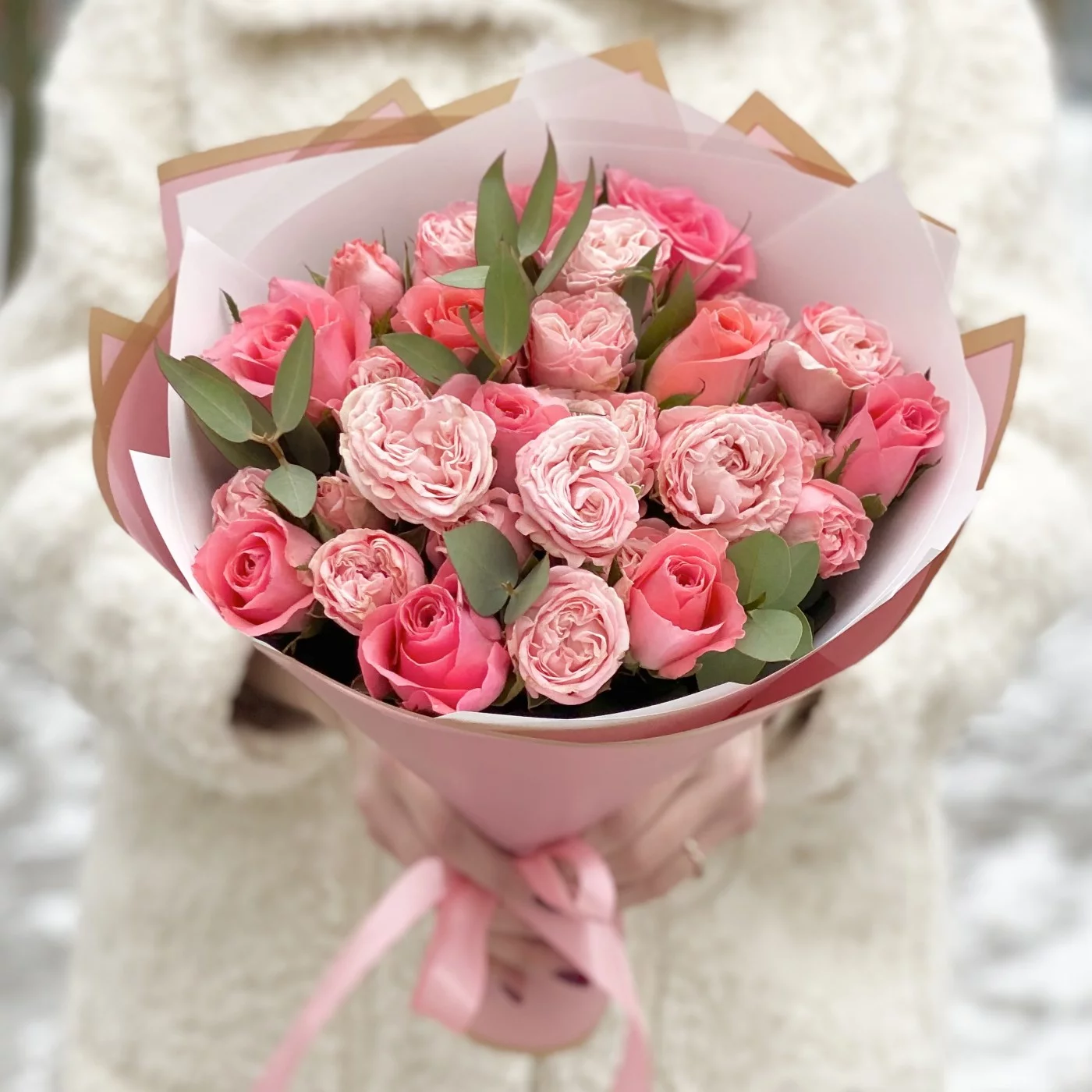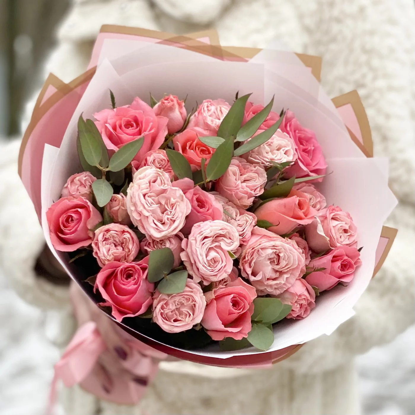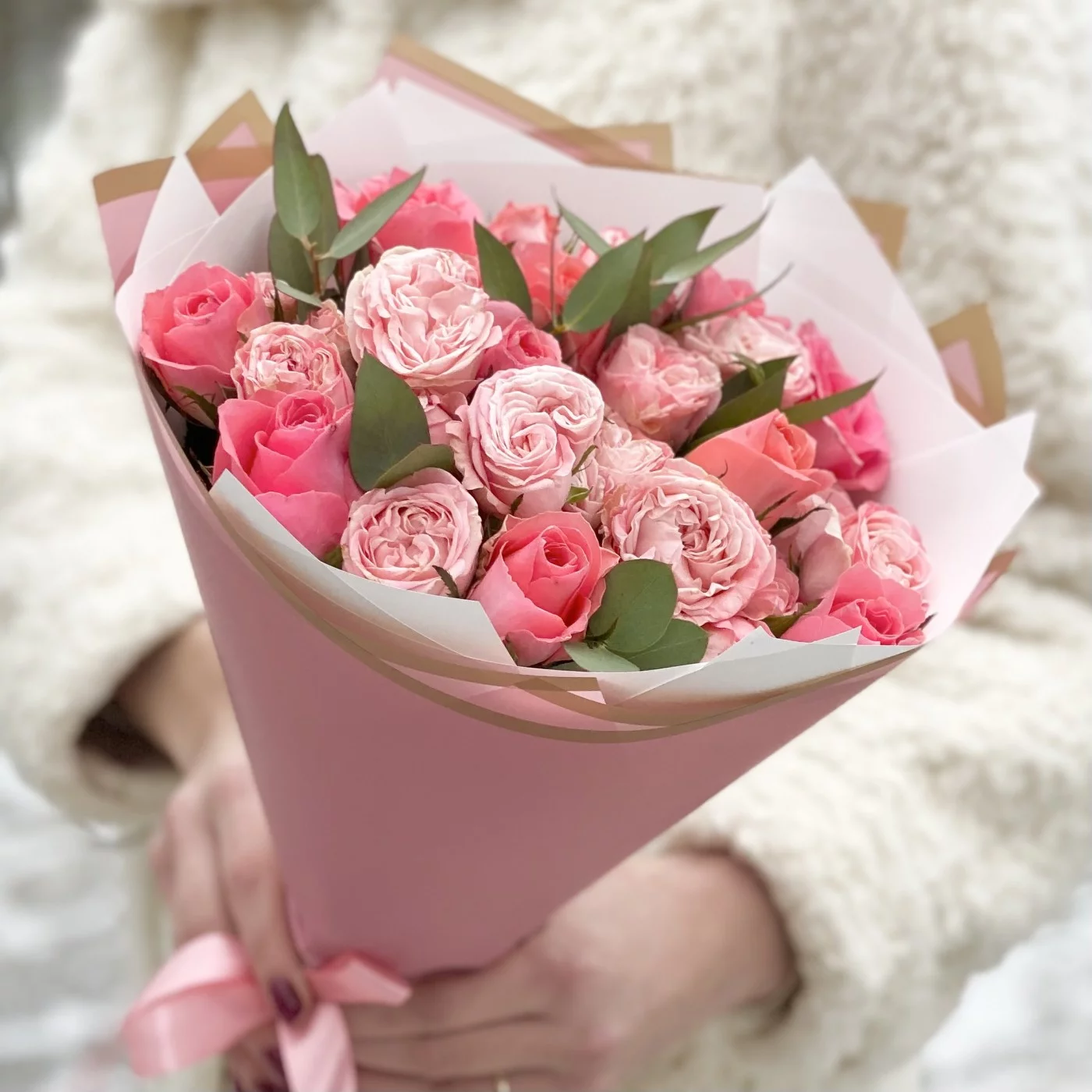 Букет пионовидных роз Мадам бомбастик и Эйс пинк
