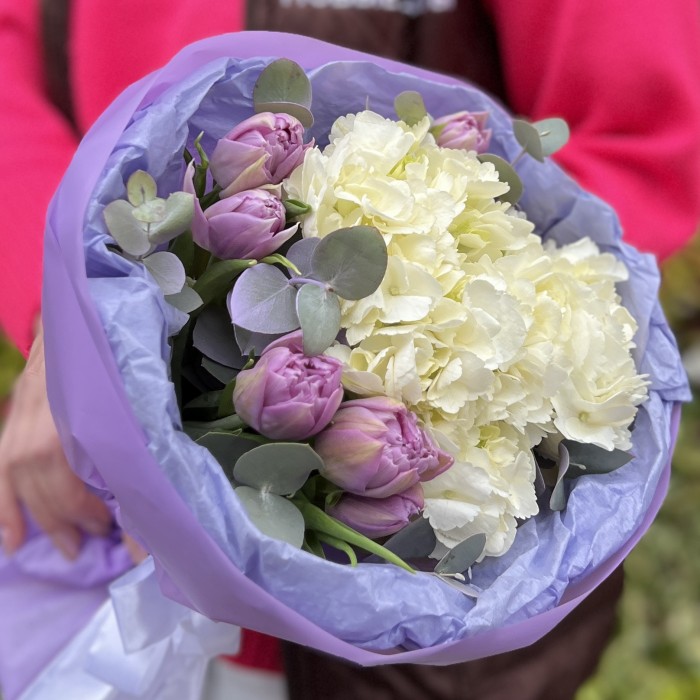 Этот букет воплощает свежесть и радость весны, символизируя пробуждение природы, нежность и обновление.